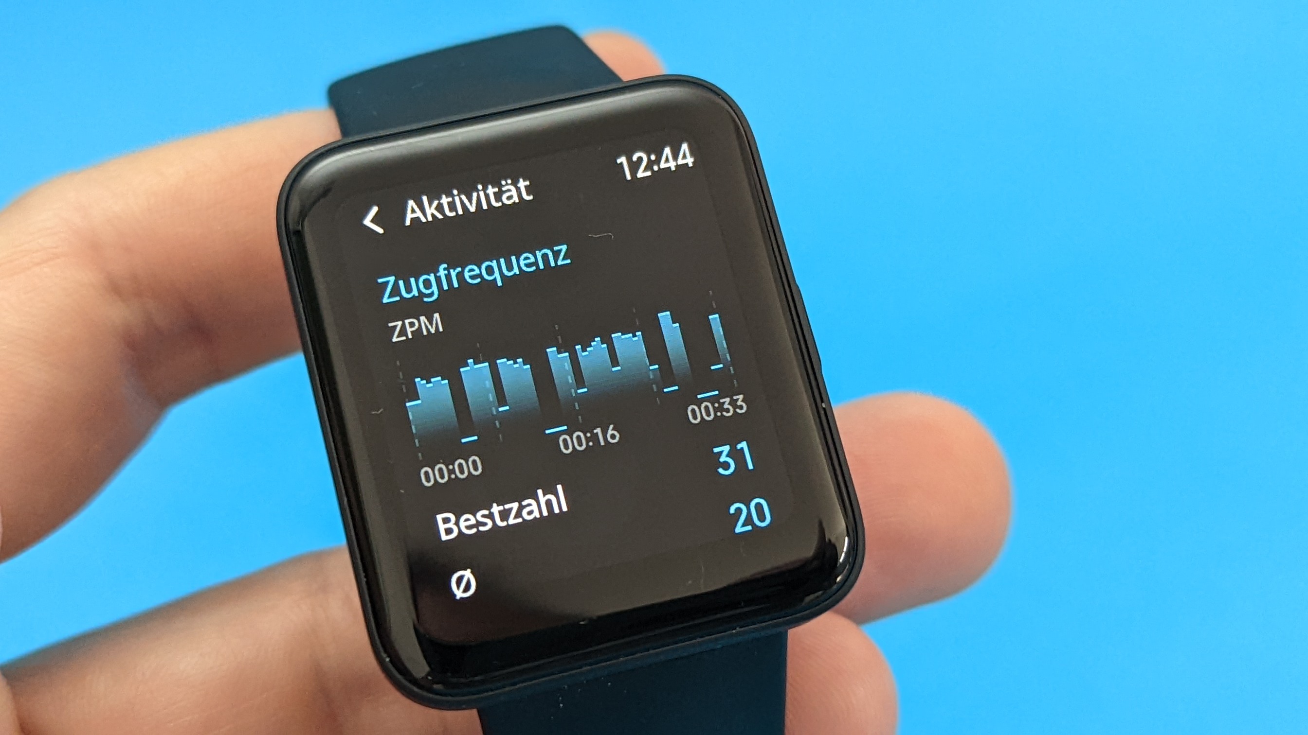 Als Fitness-Tracker macht sie eine gute Figur. Dabei beschränkt sie sich nicht auf ein paar wenige Sportarten, sondern bietet unfassbar viele, kategorisiert in den Übergruppen Laufen & Gehen, Radfahren, Schwimmen, Outdoor-Sport, Indoor-Sport, Tanzen, Kampfsport, Ballsport, Wassersport, Wintersport und mehr. Das Tracking funktioniert gut und auch die Auswertung über die App ist umfangreich. Allerdings stört uns, dass man nach wie vor manuell Start und Stopp drücken muss. So kam es im Test mehrfach vor, dass wir nach einem Workout vergaßen, die Aufzeichnung zu stoppen. Die Uhr kann außerdem den Schlaf tracken und unterscheidet dort zwischen Tief-, REM und Leichtschlaf.