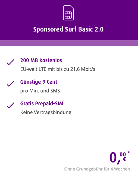 Wer keine Werbung will, muss Geld ausgeben. Richtig günstig ist der Tarif Clever XS von Discotel für 3 Euro alle vier Wochen. Der Tarif bietet 100 MByte (max. 21,6 Mbit/s), 100 Freiminuten oder SMS sowie 10 Euro Startguthaben und 20 Euro Wechselbonus. Der Bereitstellungspreis beträgt einmalig 10 Euro. Nutzer können den Vertrag jederzeit mit einer Restlaufzeit von vier Wochen kündigen.