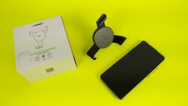 Sehr simpel funktioniert die Halterung für die Lüftung von Ugreen für 12 Euro bei Amazon. Hier kommt ein Gummi-Clip zum Einsatz, den man auf eine Lamelle aufsteckt. Die Halterung fixiert das Handy durch das eigene Gewicht, welches die seitlichen Arme nach innen zusammenzieht. Der Nachteil: Man kann das Handy nur hochkant platzieren und auch nicht ausrichten.