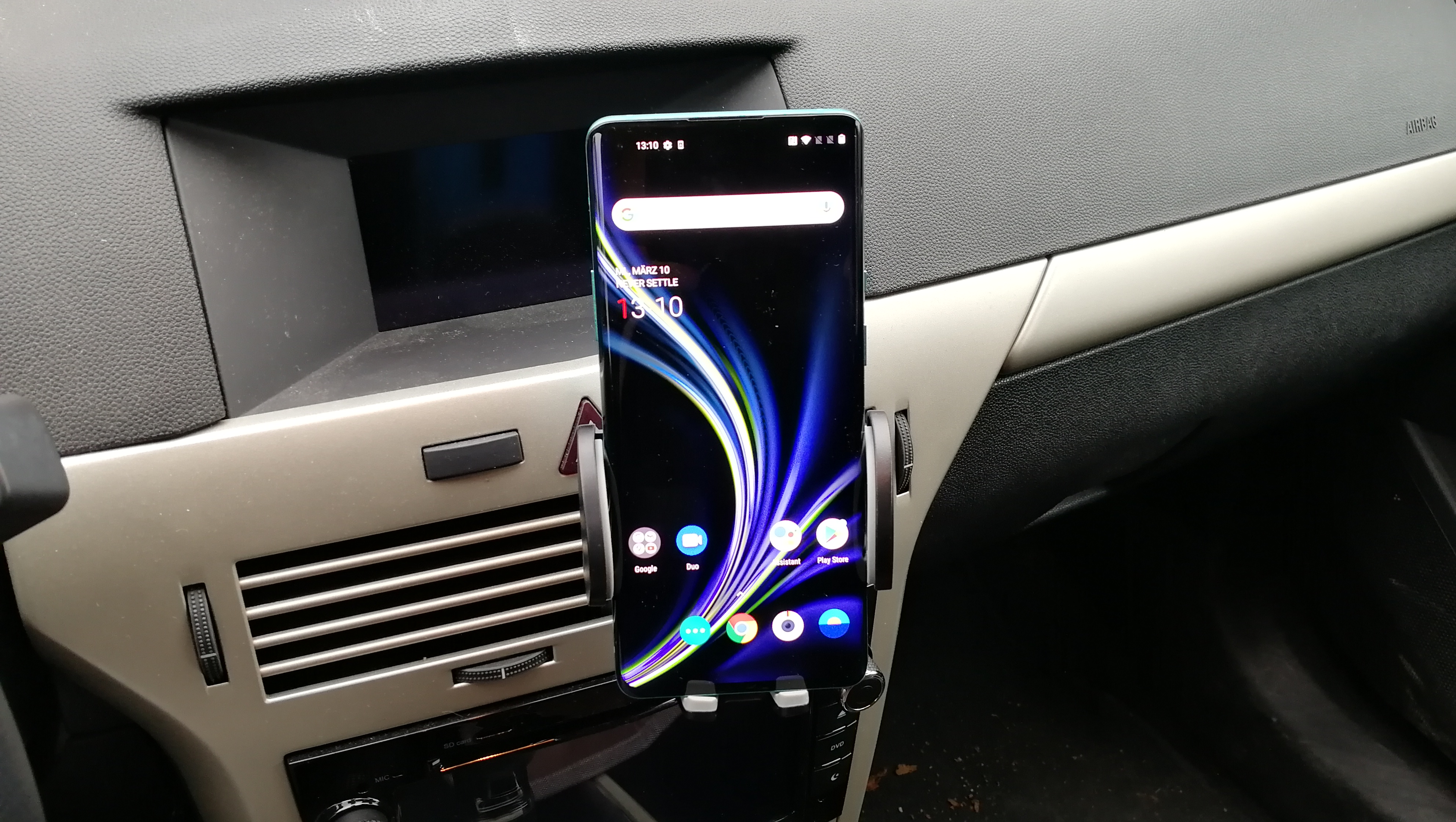 Ausgiebig getestet haben wir die Handyhalterung mit Saugnapf von Eono – einer Hausmarke von Amazon. Dort kostet sie aktuell 15 Euro. Ausprobiert haben wir das in einem Opel Adam. Befestigt haben wir diese auf dem Armaturenbrett, wo sie in diesem Fahrzeug sicher hält. Hier stört uns das Mobilgerät im Sichtfeld deutlich weniger als an der Windschutzscheibe. Zwei Arme an den Seiten fahren weit genug aus, um Smartphones verschiedener Größen mit einer Breite von 54 bis 104 mm aufzunehmen. Im Test haben wir dafür ein Samsung Galaxy S21 FE (Testbericht) genutzt. Die Verarbeitung ist beim Modell aus Kunststoff eher einfach, aber funktionell. Das Preis-Leistungs-Verhältnis überzeugt.