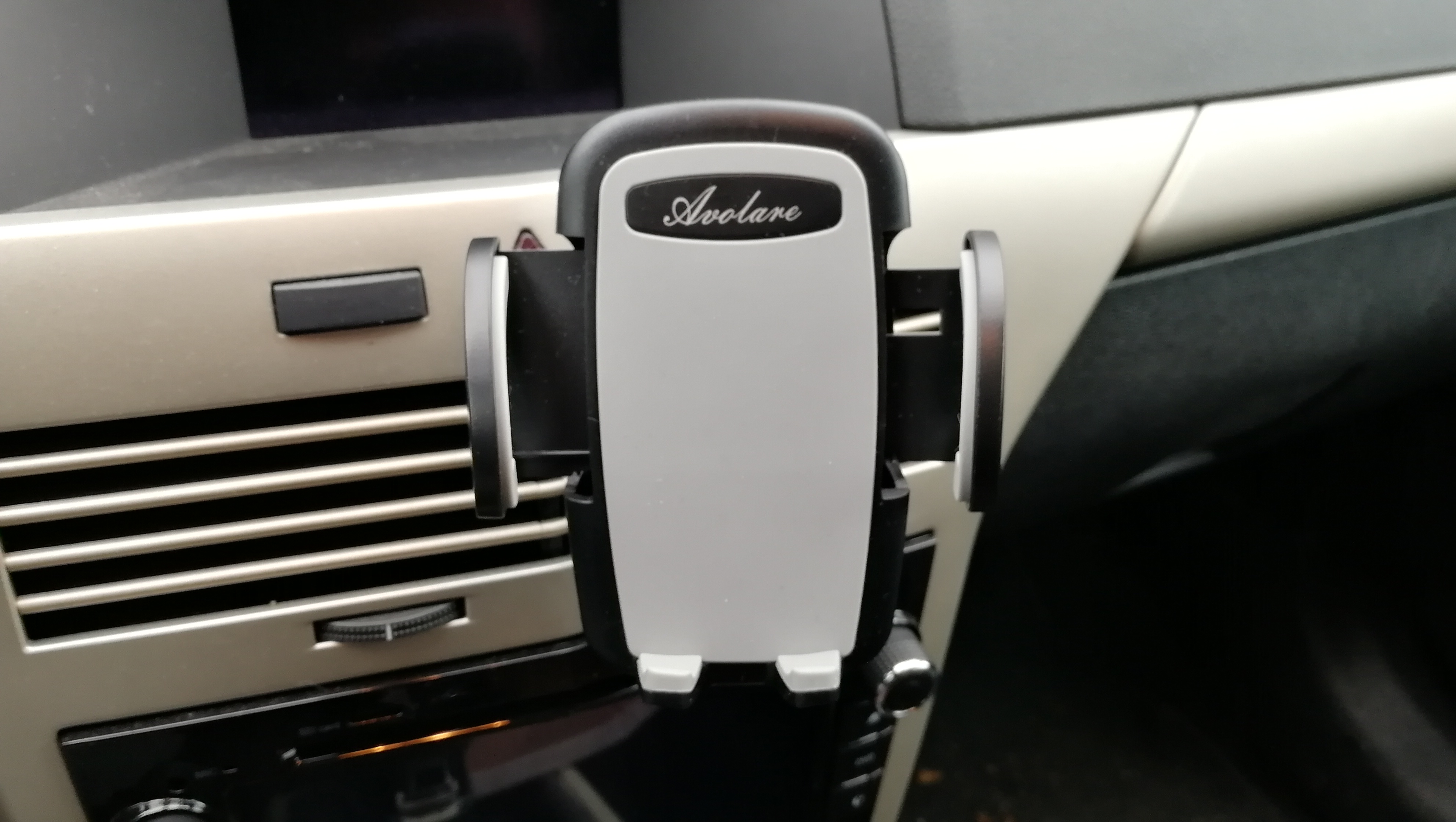 Mit der Handyhalterung von Avolare für 13 Euro bei Amazon kann man Geräte mit einer Diagonale von 4,7 bis 6,5 Zoll über das Kugelgelenk sowohl hochkant als auch quer nutzen. Damit kann man das Mobilgerät leicht zur gewünschten Blickrichtung hin ausrichten. Wir haben gute Erfahrungen mit dieser preiswerten Möglichkeit gemacht. Die Verarbeitung wirkt zwar billig, aber das Modell tut, was es soll. Die Klammer für die Lamellen der Auto-Lüftung schiebt man mit einem Riegel auseinander. So passt sie bei unterschiedlich dicken Gittern. Dafür ist bei der Montage ein wenig mehr Fingerspitzengefühl erforderlich.