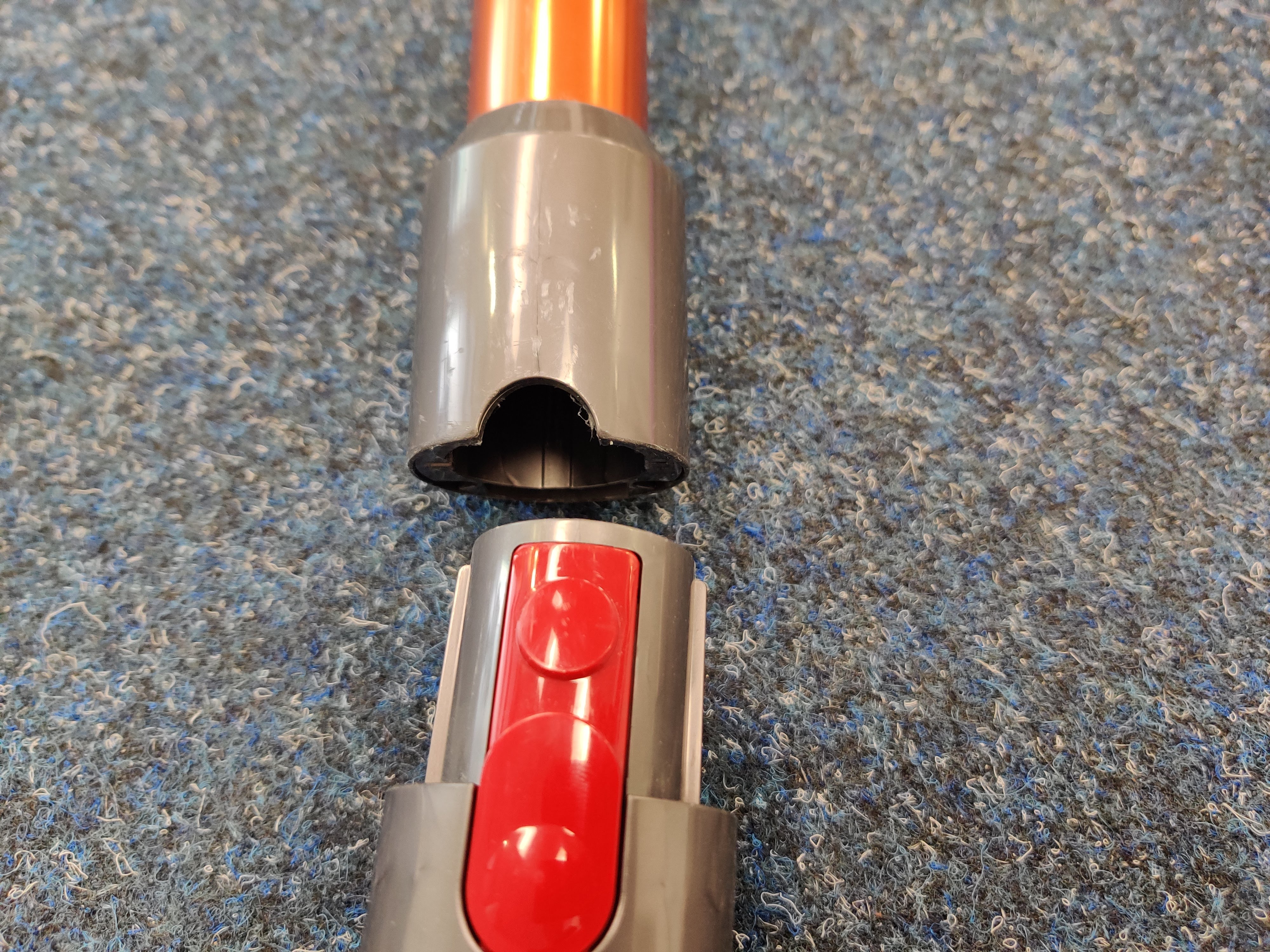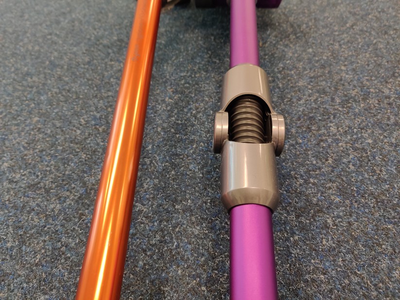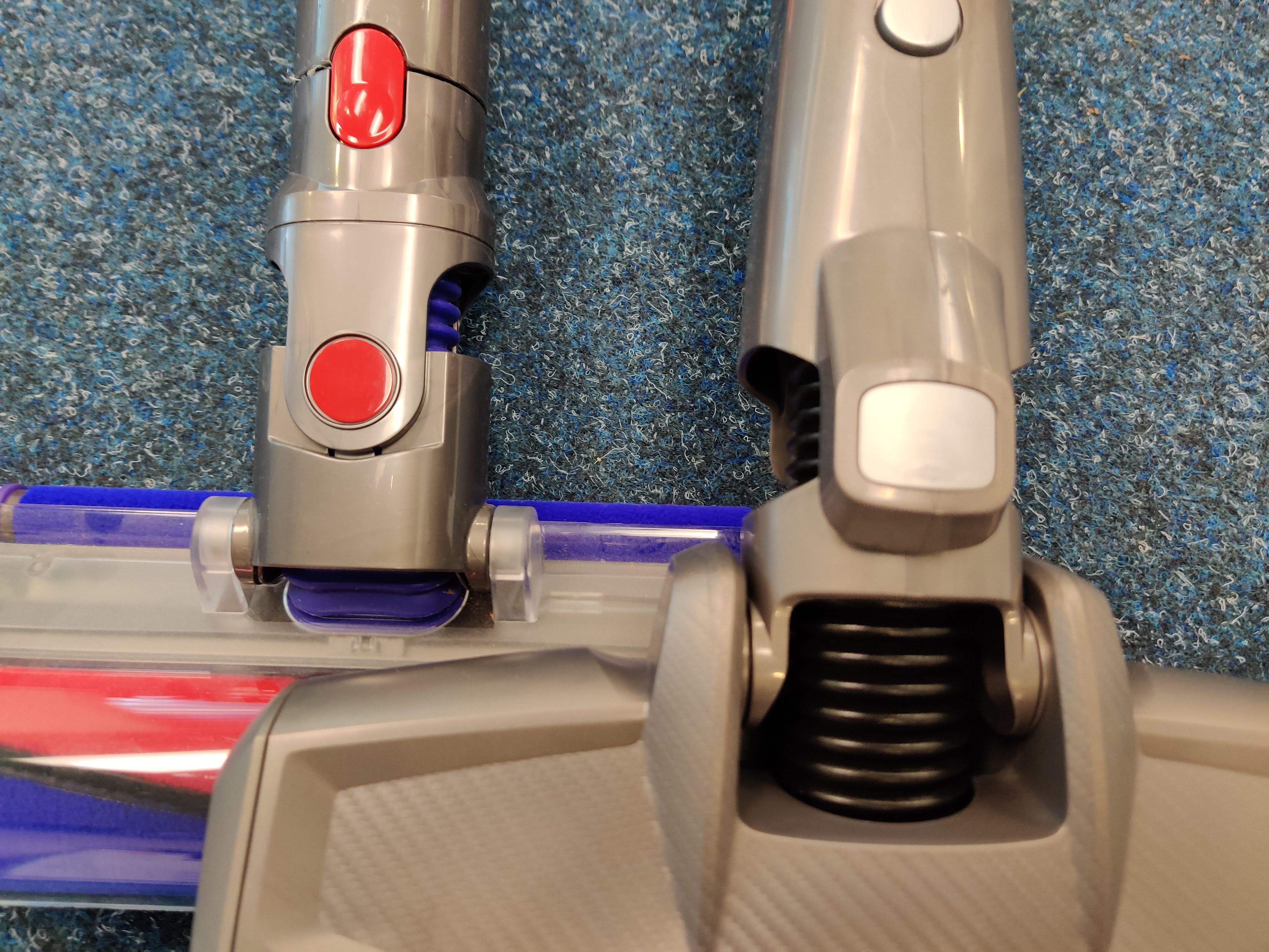 Das Saugrohr des Jimmy JV85 Pro knickt auf Wunsch um bis zu 90 Grad ab, um besser zum Beispiel unter die Couch zu kommen. Das funktioniert erstaunlich gut und zuverlässig. Dyson hat keine derartige Funktion.