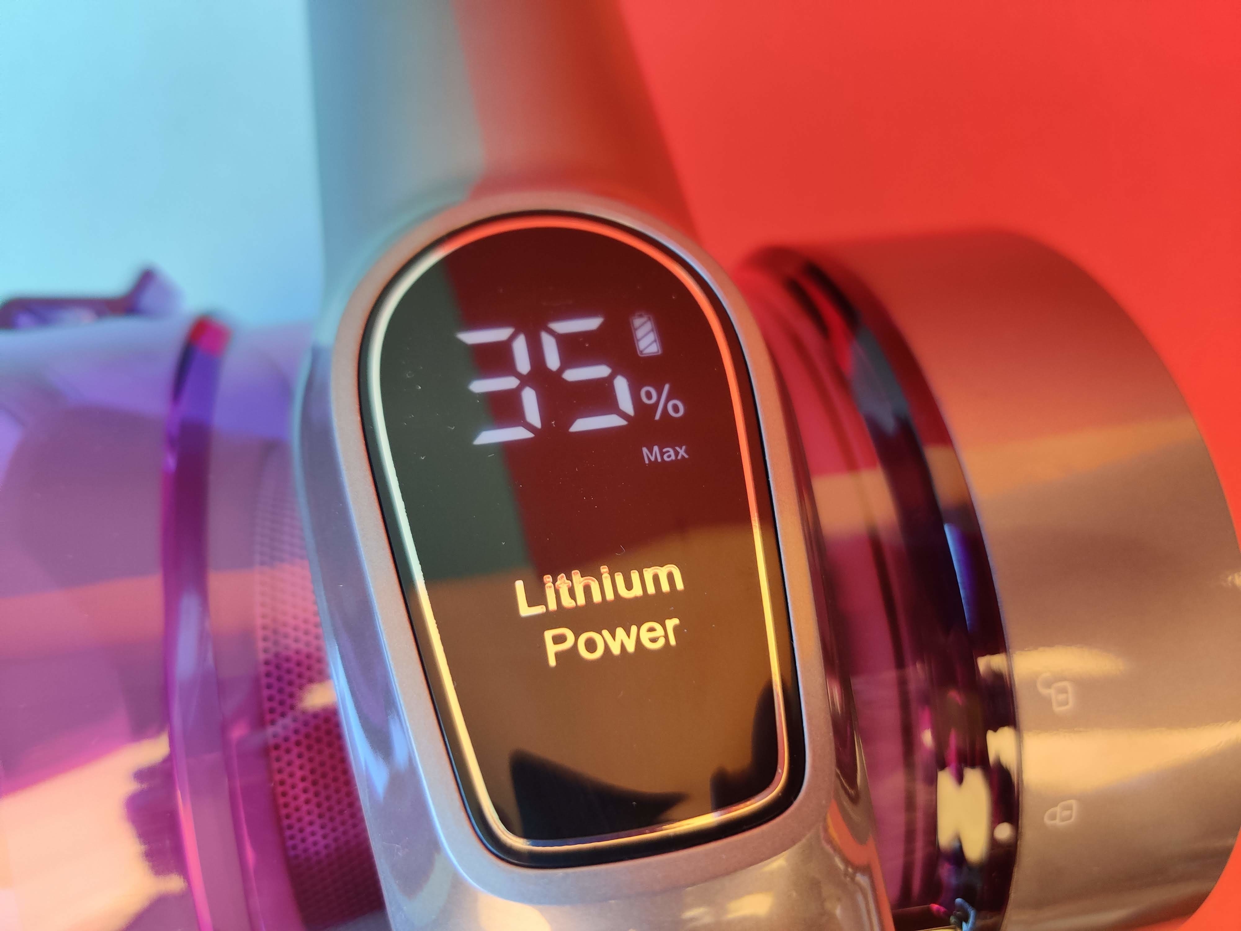 Der Jimmy bietet ein kleines Display mit einer Ladestandsanzeige in Prozent. Der Dyson V10 hat stattdessen lediglich drei LEDs am Akku. Dessen Nachfolger V11 dagegen hat wie der Jimmy ein Display.