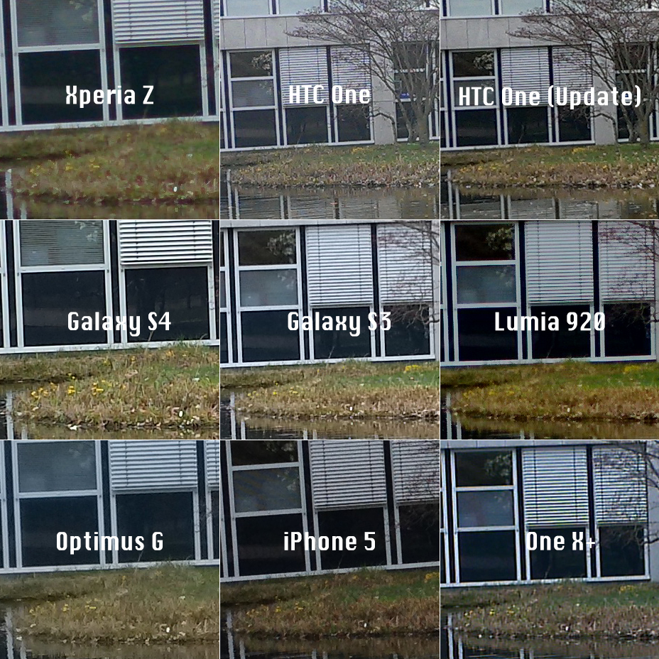 Allerdings decken sich die Beobachtungen aus diesem Foto ziemlich gut mit den Labor-Messwerten bezüglich Dynamikumfang: An der Spitze stehen hier die beiden Galaxy-Smartphones und das iPhone, das HTC One findet sich am Ende des Felds wieder.