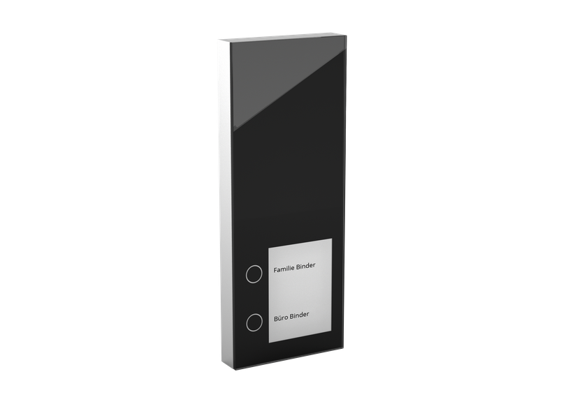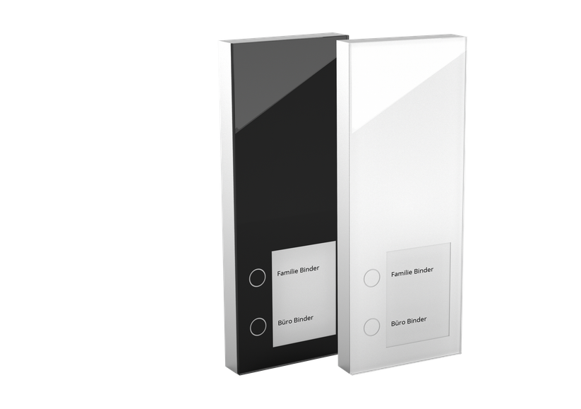 Die Oberfläche der DoorLine Slim DECT besteht aus einer durchgehenden Glasplatte, die leicht zu reinigen ist – und sich deutlich von den oft an Baumarktklingeln erinnernden WLAN-Produkten unterscheidet. Die Bedienung erfolgt über berührungsempfindliche Sensortasten. Damit ist das Gerät auch vor Regen bestens geschützt. Die Glasoberfläche dient gleichzeitig als Lautsprecher. Das System funktioniert, denn die Sprachqualität ist sehr gut. Die Hintergrundbeleuchtung stellt zudem sicher, dass die Klingeltasten und die Beschriftungsfelder auch bei Dunkelheit leicht zu erkennen sind.