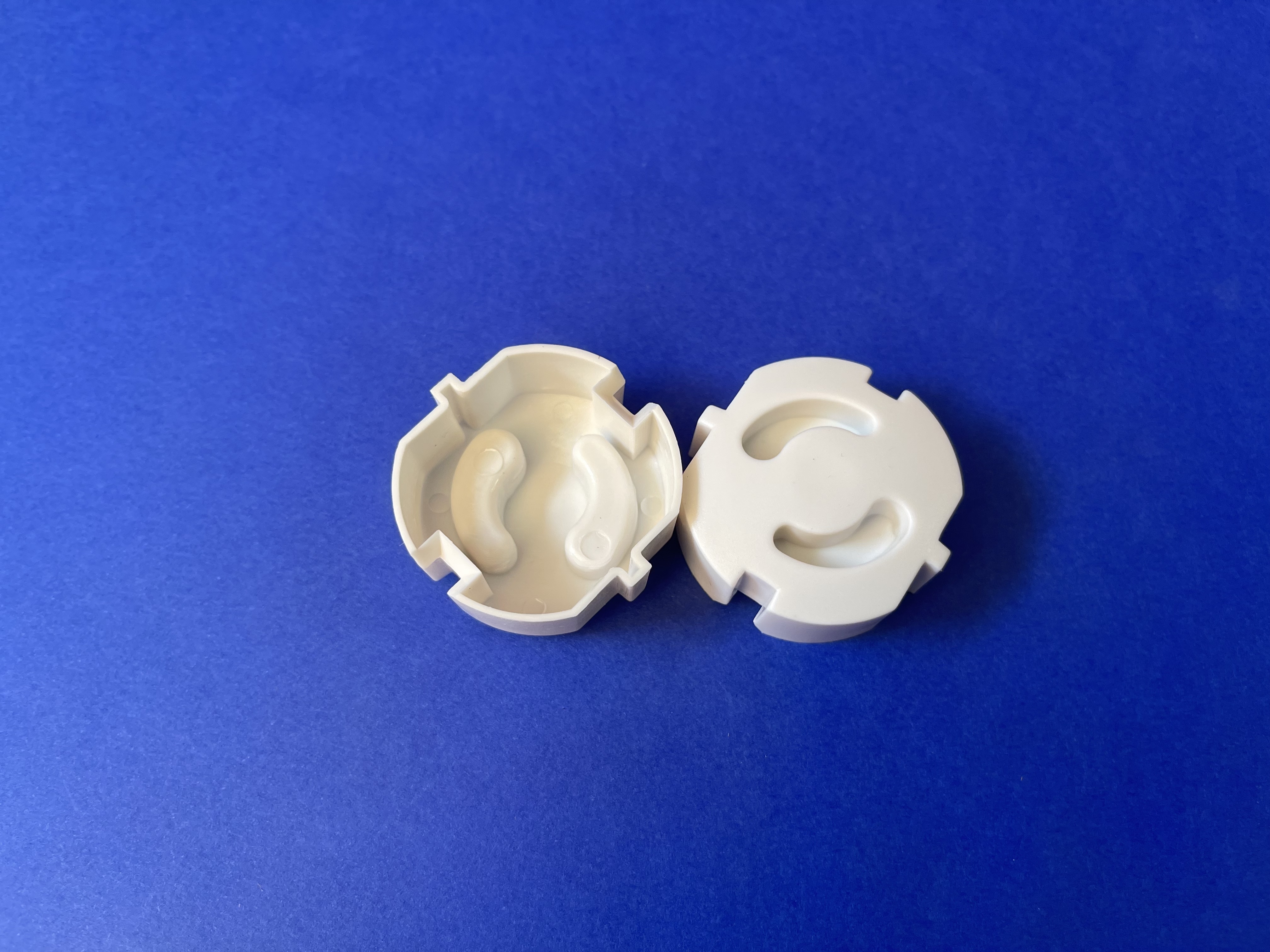 Die meisten von uns dürften aus ihrer eigenen Kindheit noch zwei Varianten von „erhöhtem Berühungsschutz“ kennen: Die dicken Plastikstöpsel, die man als Blockade in die Steckdose stopft und die man mühsam mit den Kontakten eines Steckers wieder herausfummeln muss, bevor man Handyladegerät, Rasierer oder Heißluftfritteuse anstecken kann. Und diese Dreh-Dinger, bei denen man den Stecker zunächst um 90° versetzt in die Steckdose drückt, mit den Kontakten kleine Aussparungen erreicht und diese dann mit einer Drehbewegung in die Horizontale bringt, bis der Stecker passt.