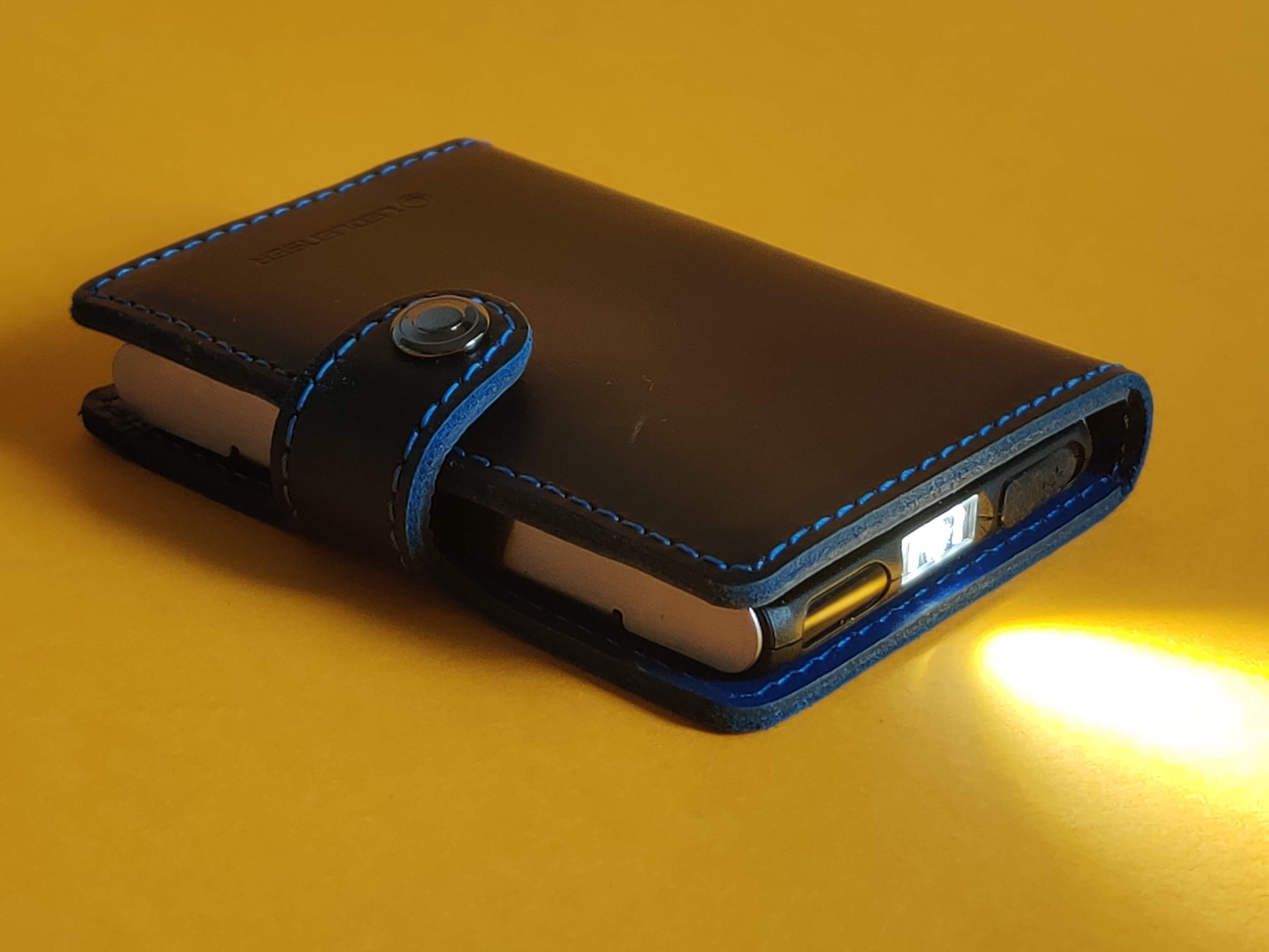 Leider hat das ab 27 Euro erhältliche Lite Wallet einen Nachteil, die es wohl für viele Nutzer disqualifiziert. Denn sie ist leer mit den Maßen von 9,6 × 7,0 × 1,6 cm vergleichsweise groß, dick und mit einem Gewicht von 115 g recht schwer. Dabei passen hier dennoch lediglich fünf Karten und ein paar Geldscheine hinein. Wer mehr reinquetscht, kann den Druckknopf nicht mehr richtig schließen. Ein Fach für Kleingeld gibt es nicht. Einen Anwendungszweck können wir uns gut vorstellen. So könnte die helle LED des Nächtens potenzielle Angreifer blenden und in die Flucht schlagen.