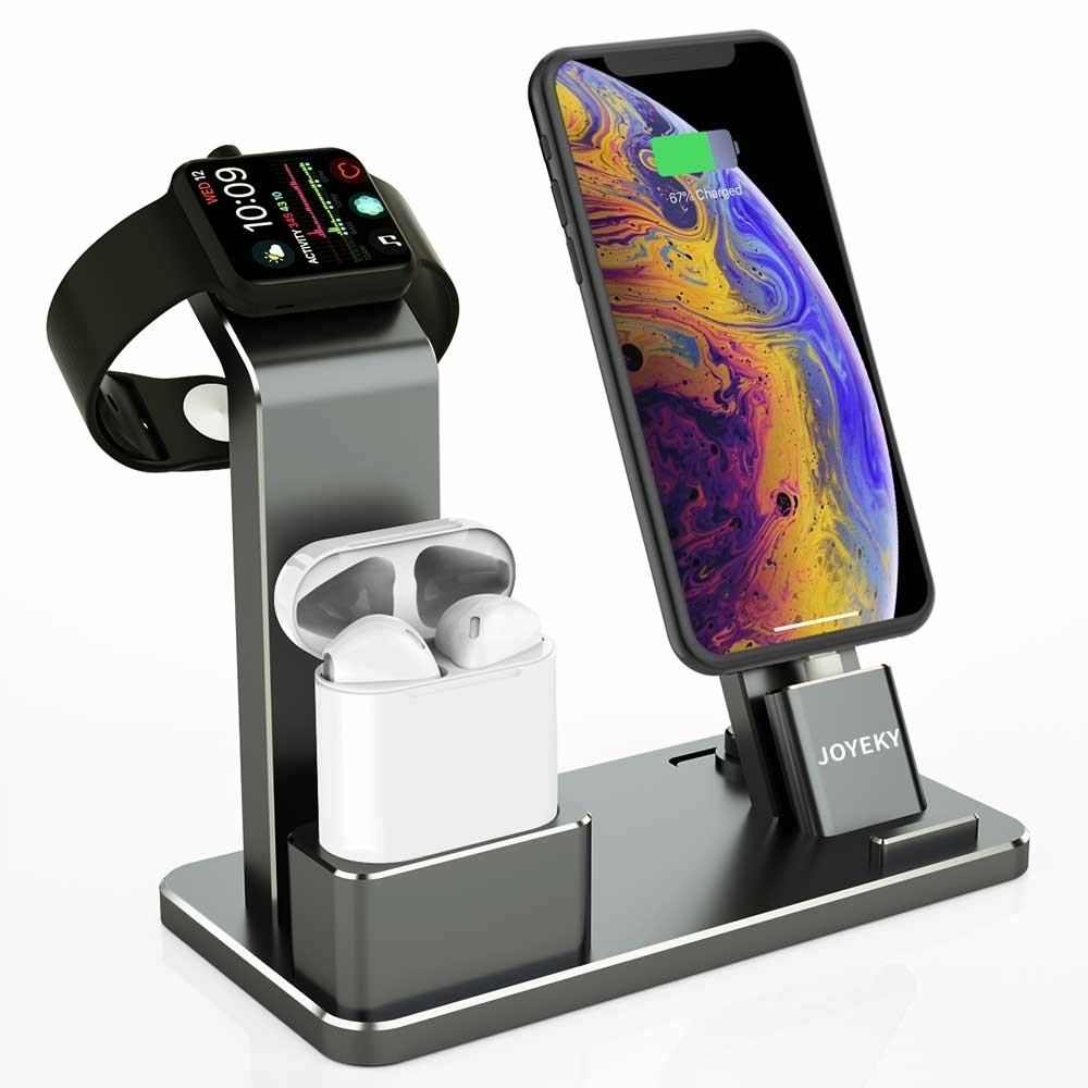 Wer will, bekommt die Halterungen auch für mehr als nur ein Endgerät. Das 3-in-1-Modell von Belkin dient etwa als kabelloser Lader und Halterung für Smartphone, Smartwatch und Kopfhörer. Der BoostCharge Pro ist mit 163 Euro allerdings nicht gerade günstig. Die nicht so hochwertig wirkende Dreifach-Ladestation von Ciyoyo gibt es schon für knapp 40 Euro. Die Variante für zwei Endgeräte von Belkin, die Powerhouse Ladestation für iPhone und Apple Watch, gibt es ab 80 Euro.
