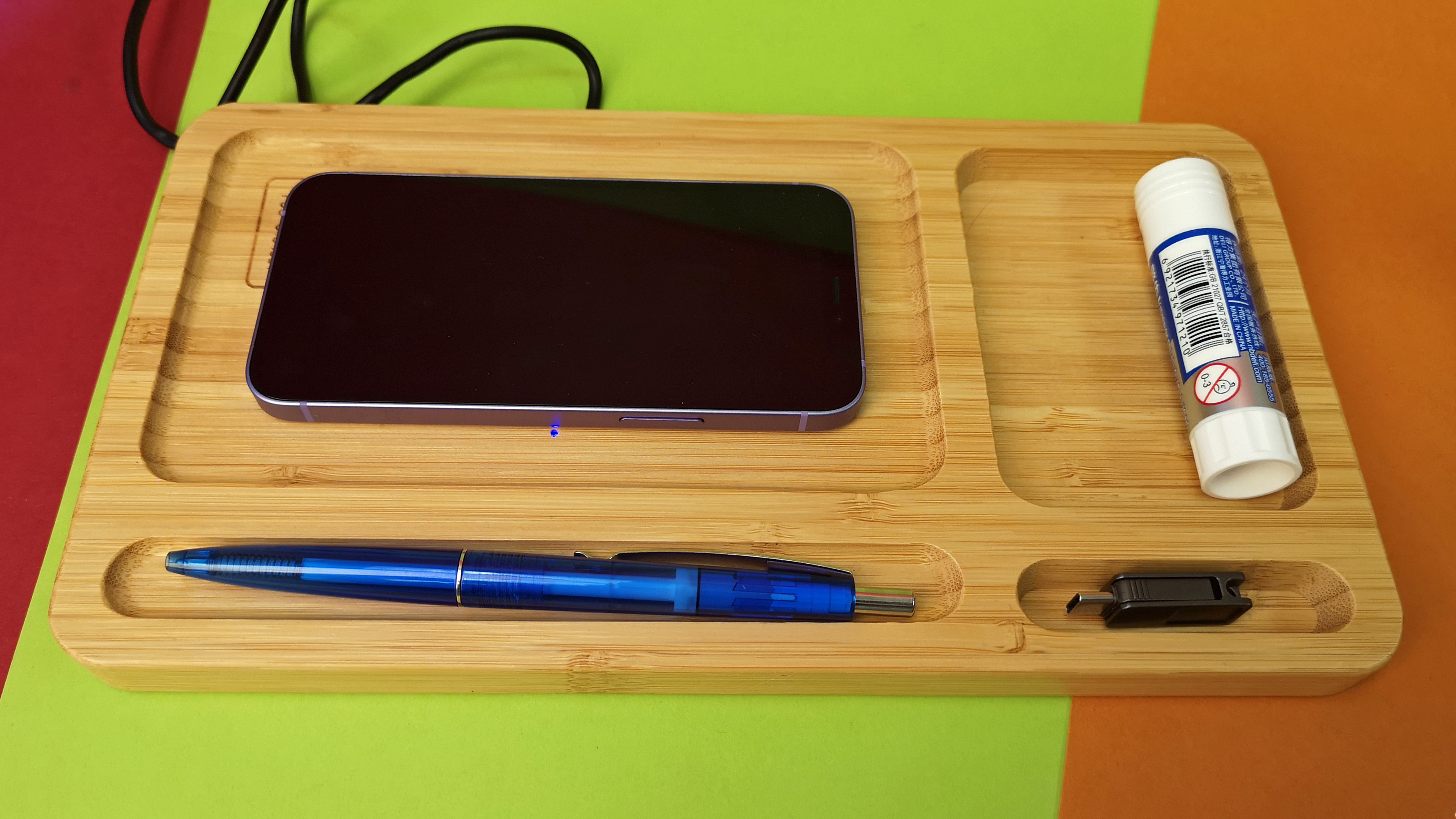 Alternativ bieten sich für Schreib- und Nachtisch auch Ablagen oder Organizer mit integriertem Ladegerät an. Das Modell EasyAcc ist so eine Kombination aus Stifthalter und Smartphone-Ständer mit Qi-Ladefunktion. Das schicke Assessor mit Kunstlederbezug ist ab 29 Euro erhältlich. Die Variante aus Bambus-Holz von Veelink gibt es zum gleichen Preis. Einfache hölzerne Ablageflächen für Stifte und Kleinzeug gibt es ebenfalls mit verstecktem Qi-Pad. Die Ablageschale vom Hersteller Mktosasa wechselt etwa ab 20 Euro den Besitzer.