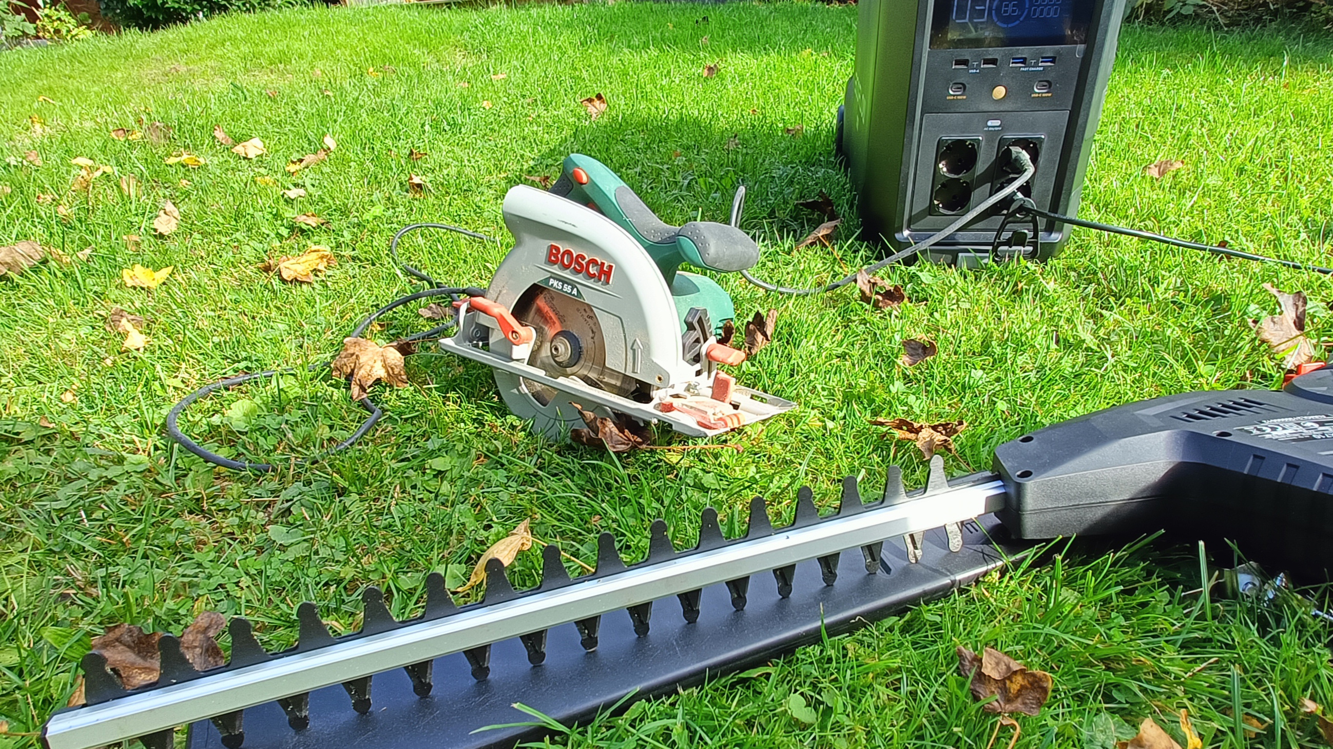 Im Garten gibt es ebenso sinnvolle und praktische Einsatzmöglichkeiten. Los geht es mit der Stromversorgung von Werkzeug und Gartengeräten. Statt dem Verlegen eines 20-Meter-Kabels haben wir dieses Jahr ausschließlich auf Strom aus der Powerstation gesetzt. In der Praxis haben wir etwa Säbelsäge, Rasentrimmer und elektrische Heckenschere erfolgreich eingesetzt.