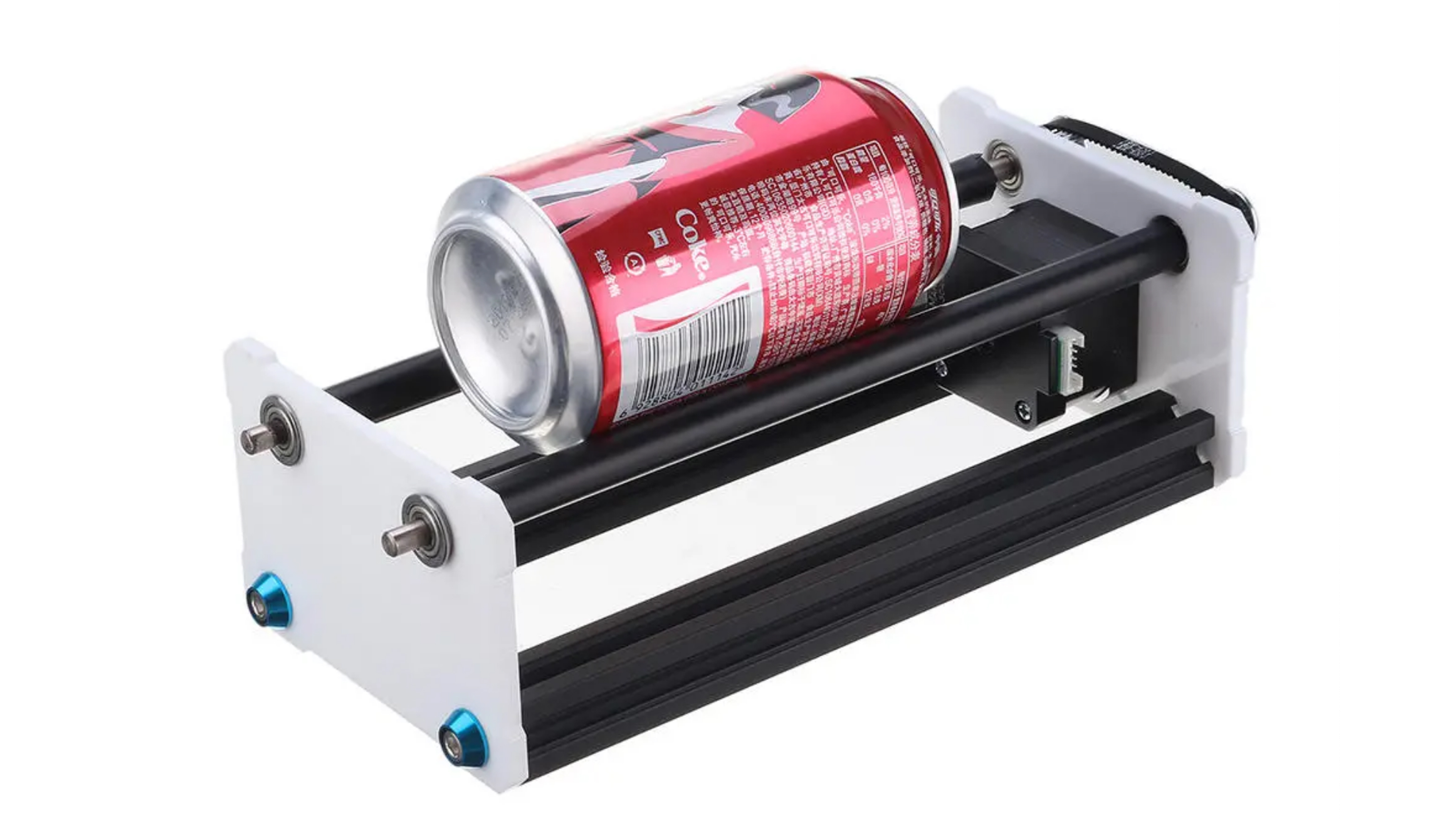 Wer plant, runde Gegenstände wie Gläser oder Dosen zu gravieren, braucht eine zusätzliche Rotationsachse. Diese ersetzt die Bewegungen der y-Achse und sorgt stattdessen für eine exakte Drehung des aufgelegten Werkstücks. Die motorisierte Rollenkonstruktion ermöglicht so die Bearbeitung von runden Oberflächen. Fertige Bausätze sind beispielsweise bei Banggood ab etwa 40 Euro erhältlich.