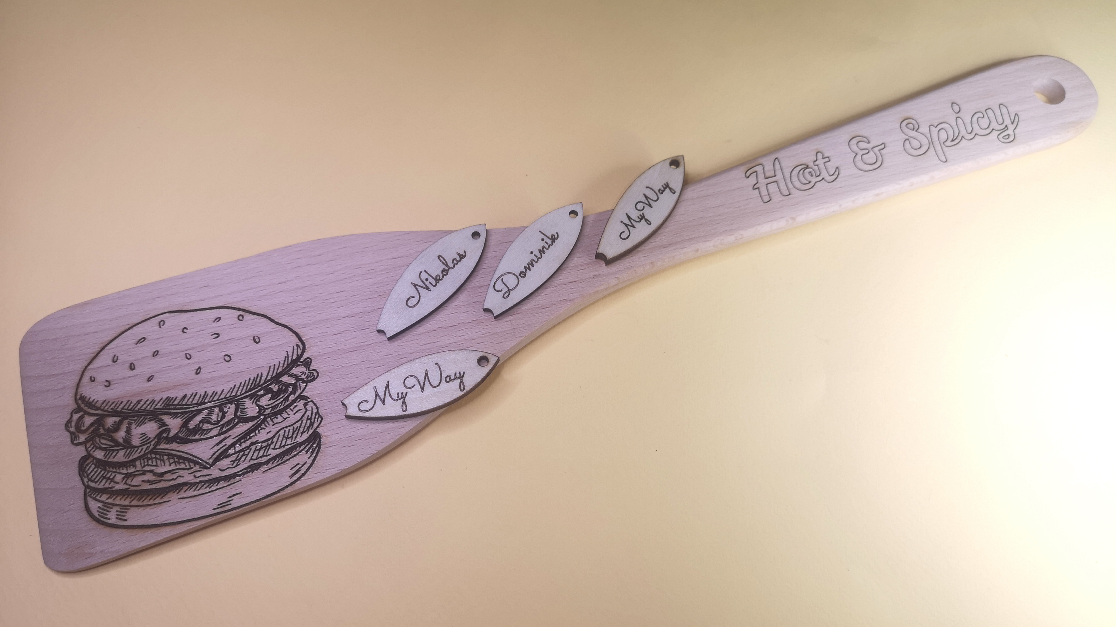 Doch es gibt weit mehr, was man mit Laser und wenig Aufwand individualisieren und verschönern kann. So kommen etwa Holzkisten, Weinboxen, USB-Sticks, Flaschenöffner, Ledergeldbeutel, Schieferuntersetzer, Skateboards, Schneidebretter, Alu-Visitenkarten, Dog-Tags oder Messergriffe für die Bearbeitung infrage. Mit all den Produkten haben wir bereits gearbeitet und gute Erfahrungen gemacht. Auch Leder (echtes Leder!), Baumscheiben, Kartonpapier oder Spiegelrückseiten sind zur Verarbeitung geeignet.