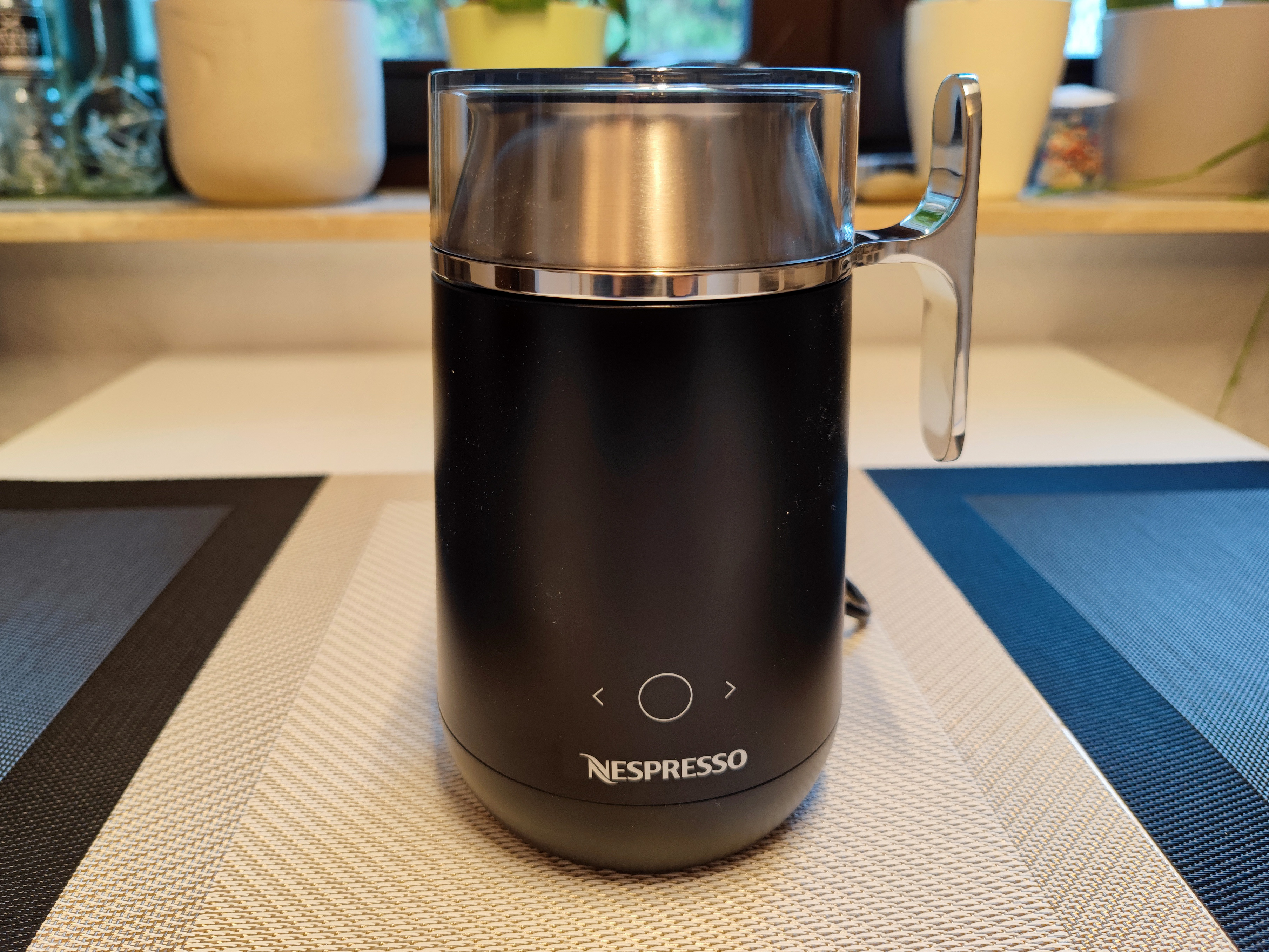 Der Milchaufschäumer Nespresso Barista arbeitet per Induktion und somit leise und sehr schnell. Das Design des Modells ist modern und geschmackvoll. Der Milchbehälter besteht aus reinem Edelstahl und scheint aus einem Stück gefräst. Im schwarzen Sockel ist ein Touchscreen integriert, über den man die einzelnen Programme auswählt und startet. Vorher muss unbedingt der Quirl und der mitgelieferte durchsichtige Deckel mit eingesetzter Gummidichtung ein- und aufgesetzt werden. Denn die Programme lassen sich auch ohne Deckel starten – allerdings wird so der komplette Inhalt des Bechers in der Küche verteilt. Hier wäre ein Schutzmechanismus sinnvoll gewesen, der derartige Unglücke verhindert. Besonders beim Entfernen des Milchkännchens aus der Basis muss man zudem darauf achten, nicht aus Versehen auf die Start Taste (Touch!) zu drücken, denn das Entfernen gestaltet sich anfangs etwas fummelig.