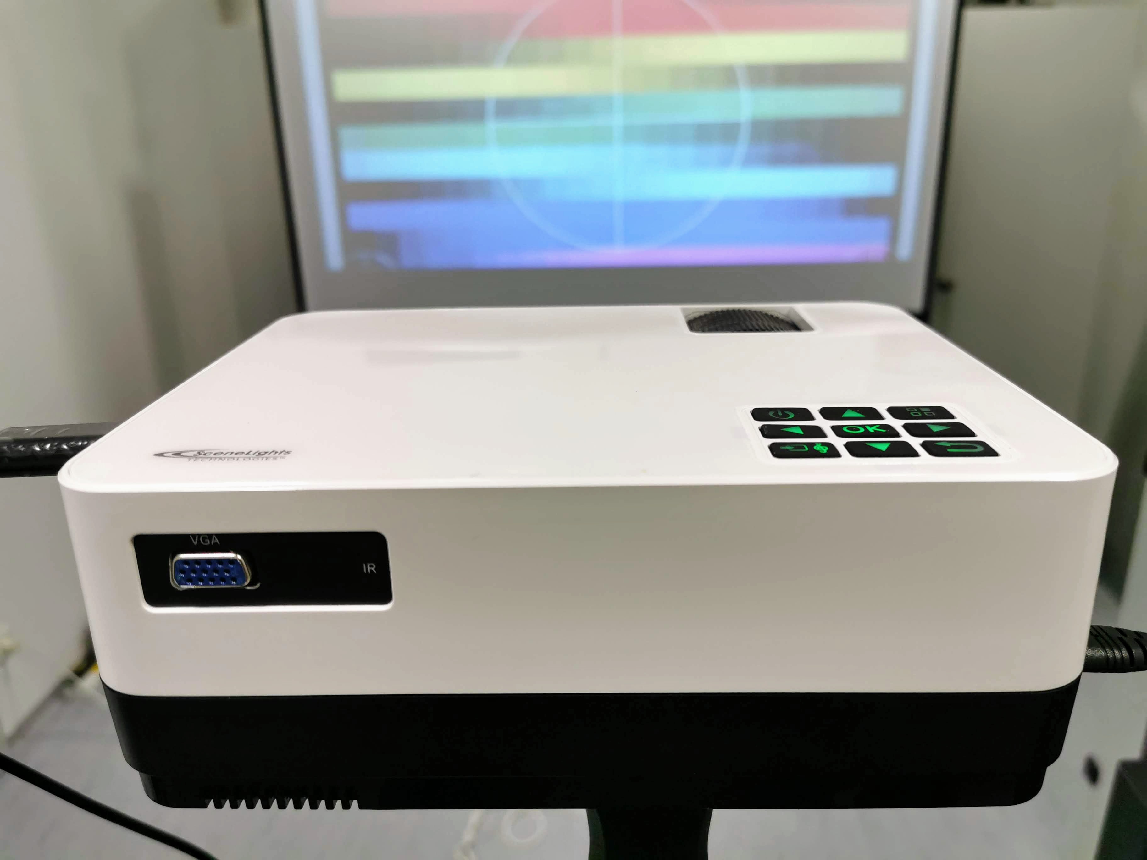 An Schnittstellen bietet er zwei HDMI, VGA sowie 3,5-mm-AV-in und 3,5-mm-Audio-out. Die zum Billig-Beamer YG300 quasi baugleiche Fernbedienung funktioniert anstandslos. Schärfe und optische Trapezkorrektur kann man über große Ringe fein justieren. Allerdings ist ein deutliches Schärfegefälle sichtbar. Dieses lässt sich minimieren, wenn man auf die optische Trapezkorrektur verzichtet.