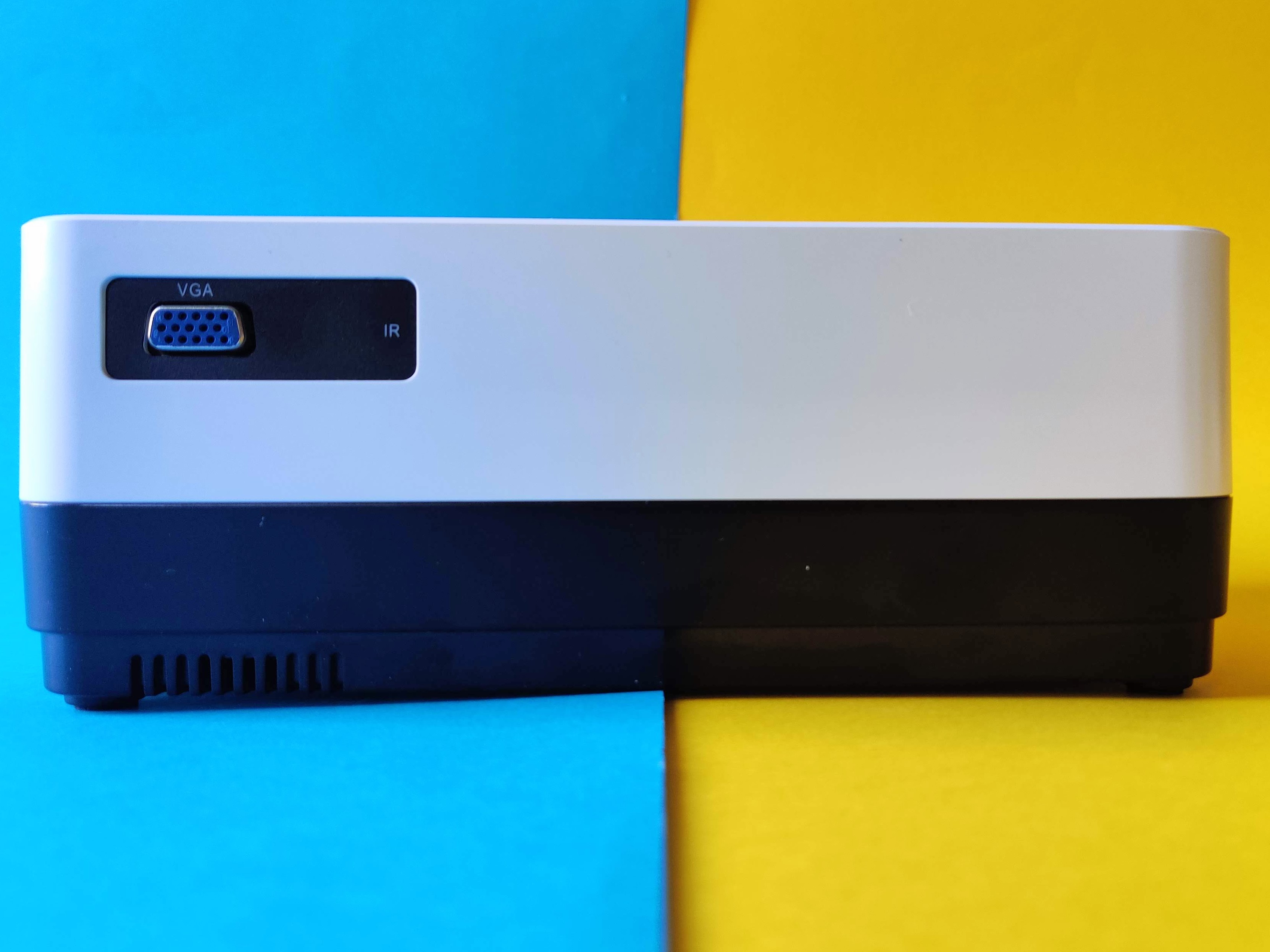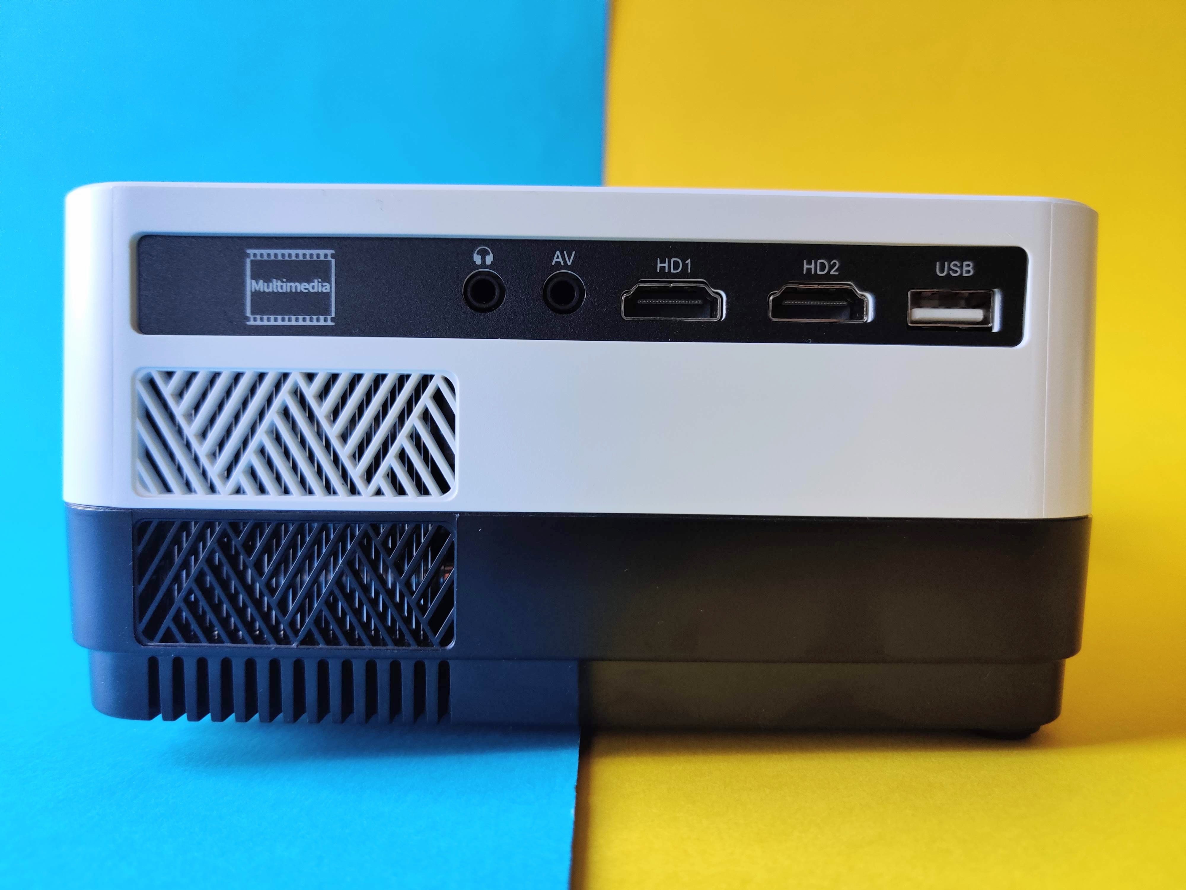 Entsprechend bietet er eine magere Auflösung von 320 × 240 Pixel und projiziert im 4:3-Verhältnis das Bild auf die Wand. Er bietet einen HDMI-, einen 3,5-mm-AV-, einen USB-A-Port und einen Micro-SD-Kartensteckplatz. Außerdem können Nutzer Audio über 3,5-mm-Klinkenstecker abgreifen. Eine gute Idee, denn der Klang des YG300 ist schlechter als der Sound vieler Smartphones, zum Beispiel des Einsteiger-Phones Xiaomi Redmi Note 8T (Testbericht) für gerade einmal 150 Euro.