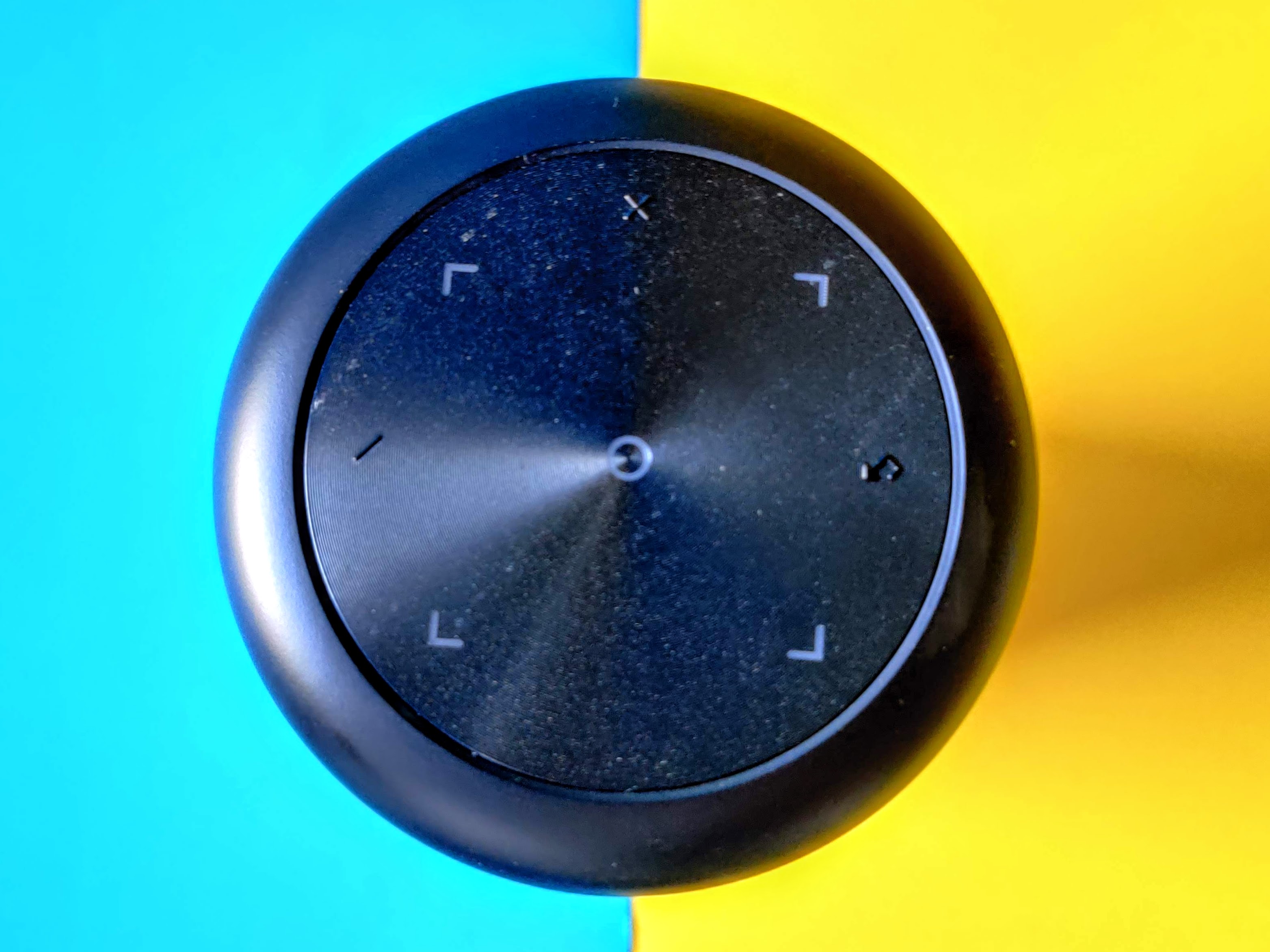 Auf der Oberseite des Capsule Max befinden sich acht kapazitive Bedienelemente, mit denen sich der Beamer vollumfänglich bedienen lässt und die die Fernbedienung auf Wunsch komplett ersetzen. Dafür bietet Nebula auch eine Smartphone-App an. Dann nutzt man das Smartphone als Mauspad und steuert einen kleinen Mauszeiger. Dank Android 8.1 lassen sich zu Steuerung aber auch Maus und Tastatur über den USB-A-Port anschließen. Weiter bietet der Capsule Max einen HDMI-Port und einen 3,5-mm-Klinkenstecker für Audio-Out. Über den Rundhohlstecker bezieht das Gerät seinen Strom.