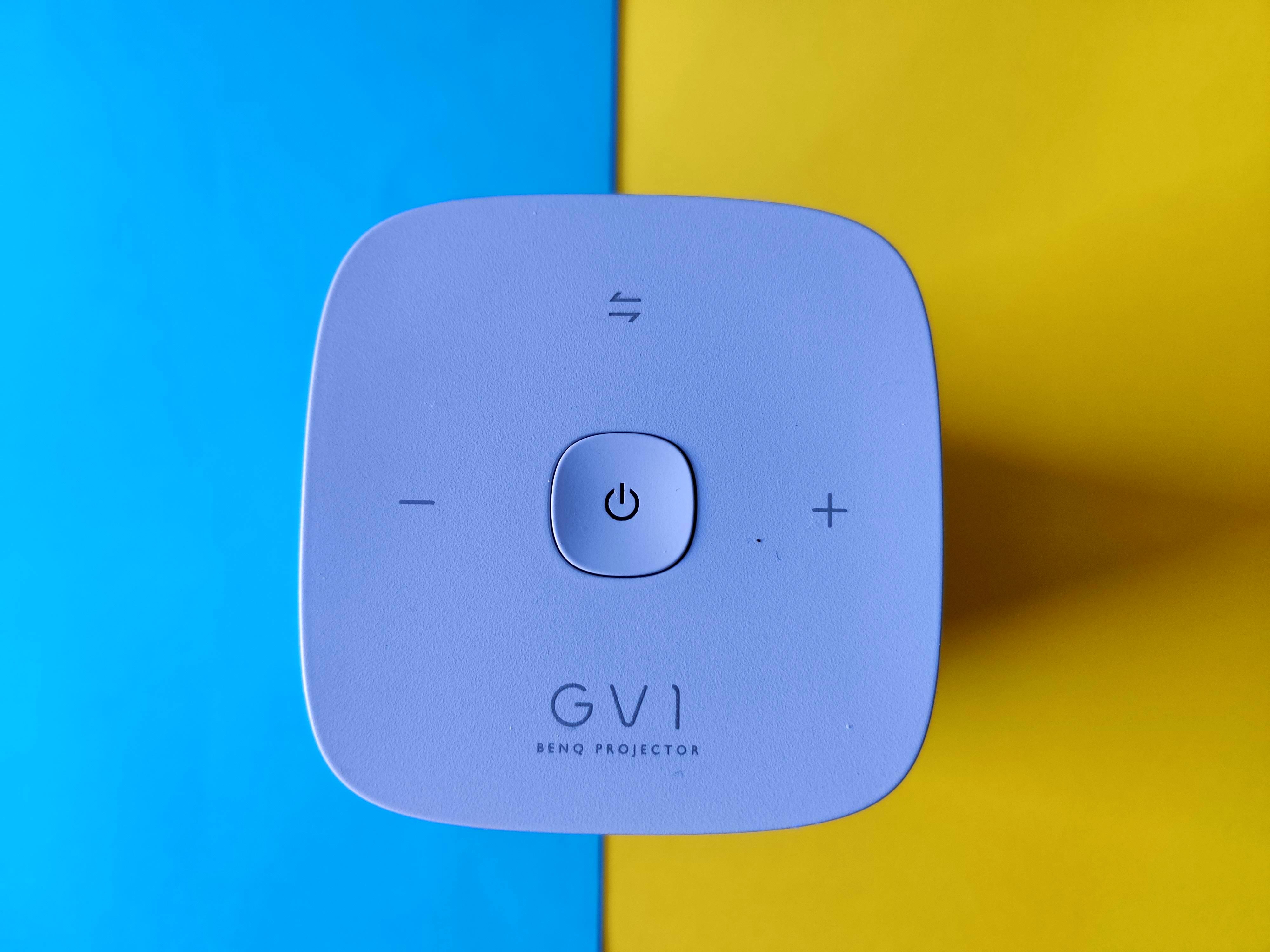 An seiner Oberseite befinden sich ein physischer Ein-/Austaster sowie drei berührungsempfindliche Knöpfe für die Lautstärkeregelung und zum Verbinden mit einer Bluetooth-Quelle. Der Benq GV1 kann nämlich auch als 5-Watt-BT-Box genutzt werden. Trotzdem schade, dass es nicht mehr Knöpfe gibt. So ist man für die Nutzung immer auf die Fernbedienung angewiesen. Wer die mal nicht findet, hat ein Problem.