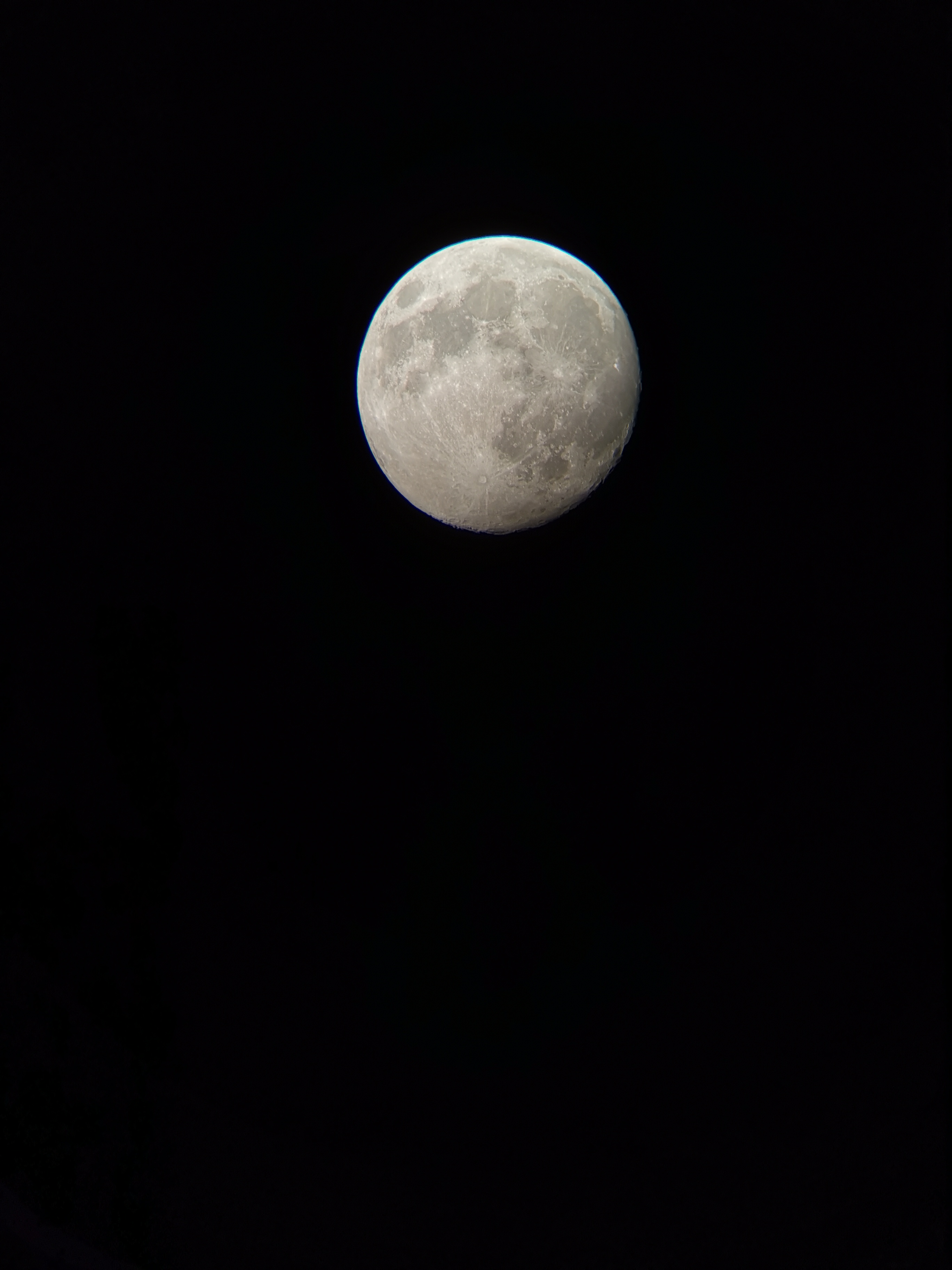 Um den Mond gut abzulichten, sollte man ISO-Wert auf 50 oder 100, Blende auf f/1.8 und Belichtungszeit auf 1/1000 einstellen. Auch im Pro-Modus kann der Autofokus gut funktionieren – im Zweifelsfall stellt man aber auf manuellen Fokus und die weiteste mögliche Entfernung (unendlich). Bei einigen Smartphones hilft zudem die künstliche Intelligenz etwas nach. Sobald die Kamera den Mond erkennt, schaltet sie in einen Mondmodus für detailliertere Aufnahmen. Für einen freihändigen Schnappschuss lässt sich das Ergebnis bei 30-fachem Zoom sehen. Mit Stativ wäre das Bild noch schärfer.