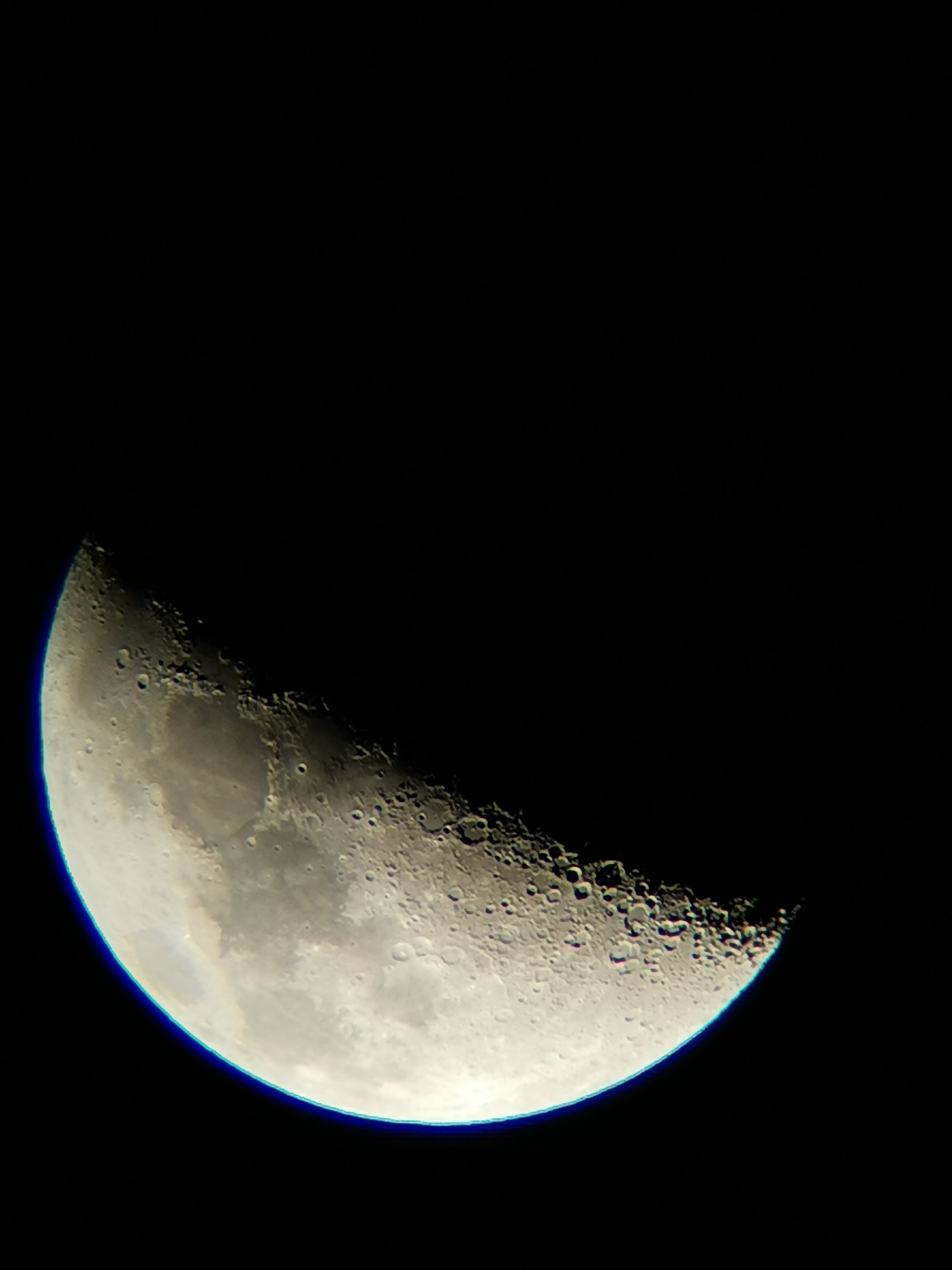 Selbst eine Smartphone-Kamera schafft es, den Mond so abzulichten, dass große Krater und Konturen sichtbar werden. Hierzu braucht man unserer Erfahrung nach nur eine Smartphone-Kamera, die drei Kriterien erfüllt: Erstens mindestens ein 10-facher Hybrid-Zoom – eine Kombination aus optischen und digitalen Zoom. Das sorgt für die nötige Schärfe. Zweitens ein Pro-Modus also ein Modus der Kamera, bei dem man Fokus, ISO-Wert, Belichtungszeit & Co. manuell einstellen kann. Der digitale Zoom sollte zudem mindestens bei 30-facher Vergrößerung liegen, damit man den Mond auch nah genug heranbekommt.