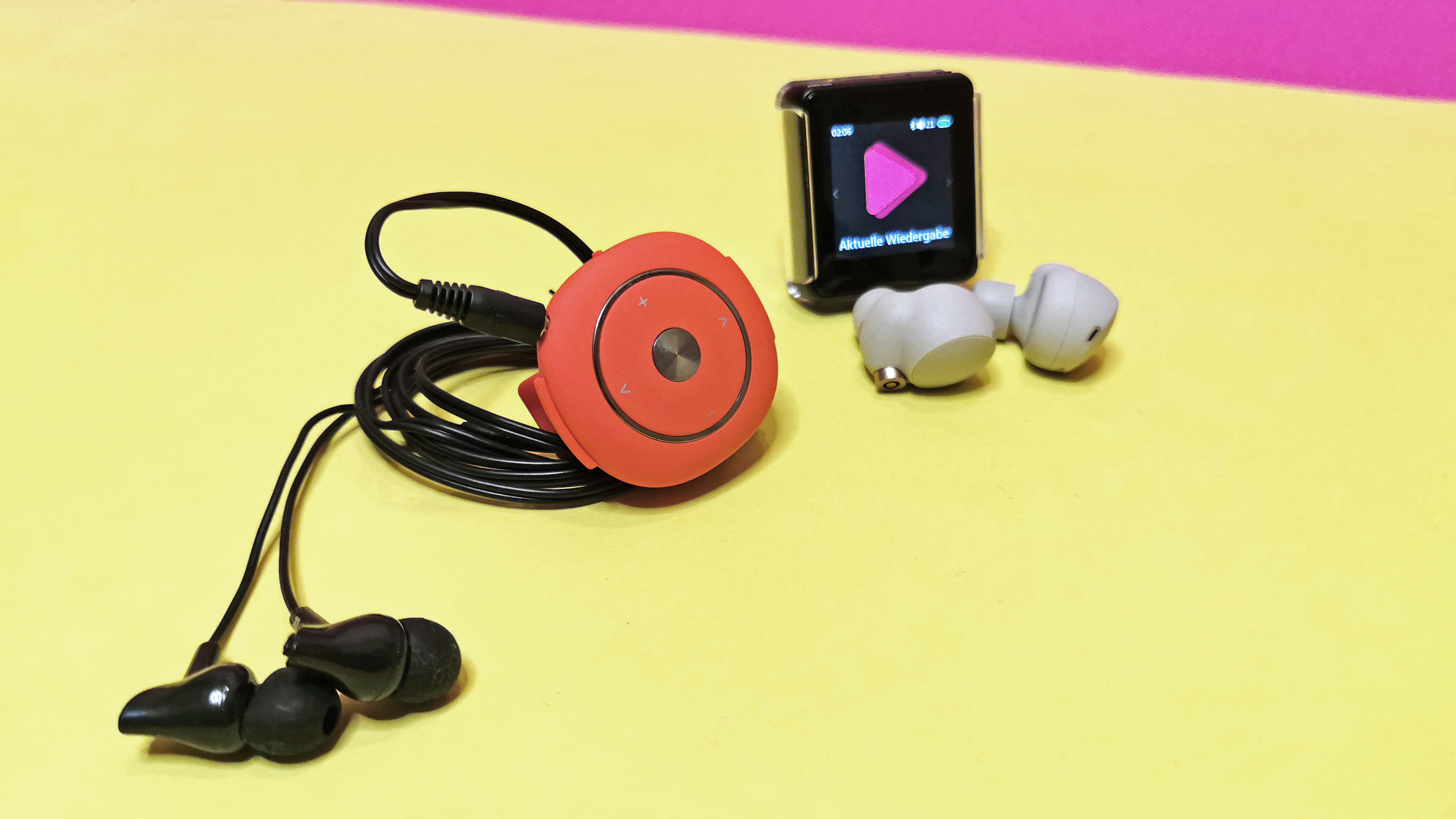 Ähnlich einfach gestrickt, aber immerhin mit eigenständigem Design, ist der von uns ausprobierte Wiwoo M6 von Amazon für rund 20 Euro. Der Player mit integriertem Radio und den Abmessungen 42 x 45 x 19 mm bei einem Gewicht von gerade einmal 16 Gramm verzichtet auf internen Speicher, Display und sonstige Extras, kann aber durch einfache Bedienung überzeugen – zumindest, wenn die gespeicherte Anzahl von Musikdateien übersichtlich ist. Die Soundqualität per kabelgebundenem Kopfhörer ist bei niedriger und mittlerer Lautstärke in Ordnung – zumindest bei MP3s und mit vernünftigen Kopfhörern. Denn die schlechte Qualität des Radioempfangs und der beigepackten In-Ears ist aus unserer Sicht nicht alltagstauglich. Die Akkulaufzeit-Angabe des Herstellers liegt bei 10 bis 15 Stunden und wäre somit ausreichend. Im Praxistest bei mittlerer Lautstärke macht der Akku allerdings deutlich schneller schlapp. Wir halten eine Angabe von 5 bis 6 Stunden für realistisch – da halten sogar viele True-Wireless-Kopfhörer länger durch. Die sind wegen des fehlenden Bluetooth-Modus aber nicht kompatibel.