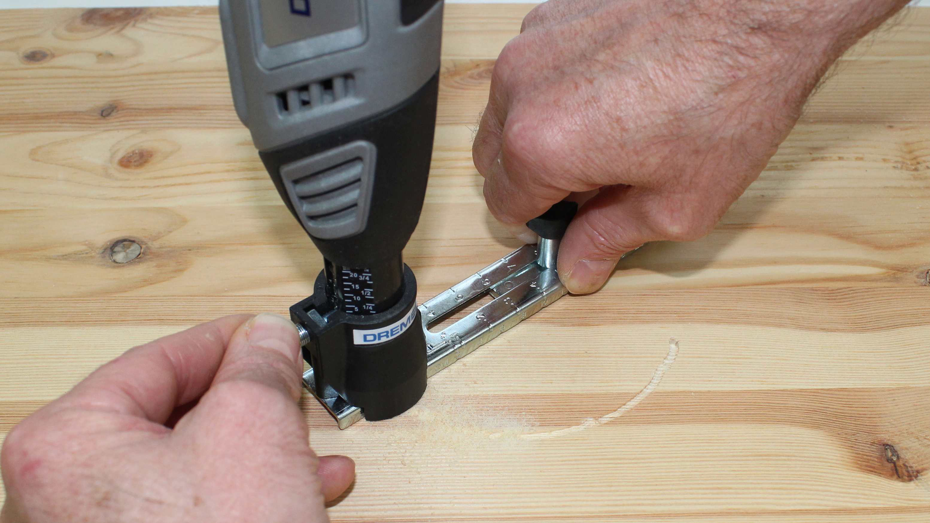 Für wenig Begeisterung hat aus eigener Erfahrung der Kreis- und Parallelschneider gesorgt. Die Idee dahinter ist gut, die Umsetzung hat jedoch ihre Tücken, was zum einen an einem zu großen Abstand zwischen dem eingespannten Dremel und der zu bearbeitenden Oberfläche liegt. Bedingt durch den vorgegebenen Schaftdurchmesser von 3,2 mm, werden lange Werkzeuge wie der beigefügte Mehrzweck-Spiralfräser sehr labil und exaktes Arbeiten ist nur in weichen Materialien möglich.