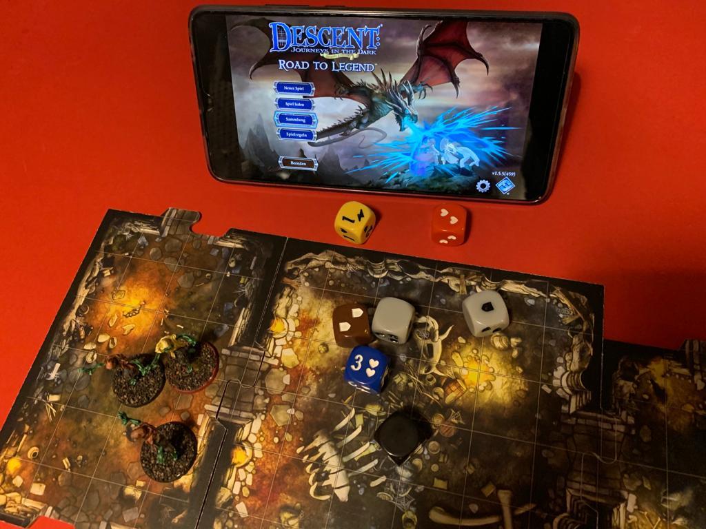 Normalerweise muss ein Spieler den Overlord spielen, also den Meister der Monster. Doch dank der Road to Legends App für iOS, Android und Steam kann der Computer diesen Teil übernehmen. Alle Spieler können dann kooperativ versuchen, den Rechner zu schlagen. Das funktioniert in der Praxis ziemlich gut. Die App macht die Vorbereitung deutlich einfacher, zeigt die Aktionen der Monster an und verwaltet zudem das Heldeninventar samt Goldvorrat. Dazu kommt ein gut gemachtes Tutorial, das neuen Spielern den Einstieg erklärt. Damit können selbst jüngere Spieler gut zusammen mit ihren Eltern einsteigen.