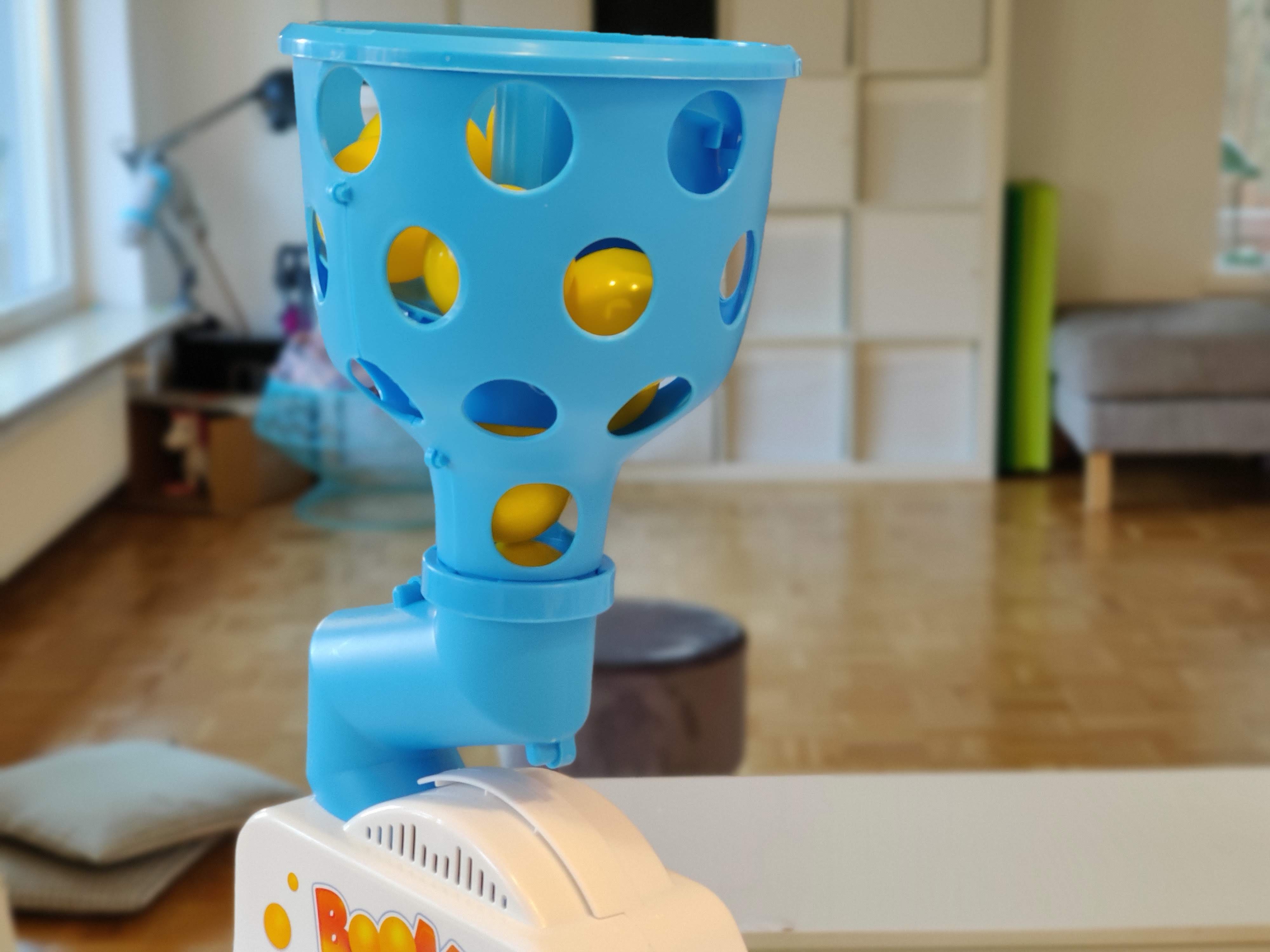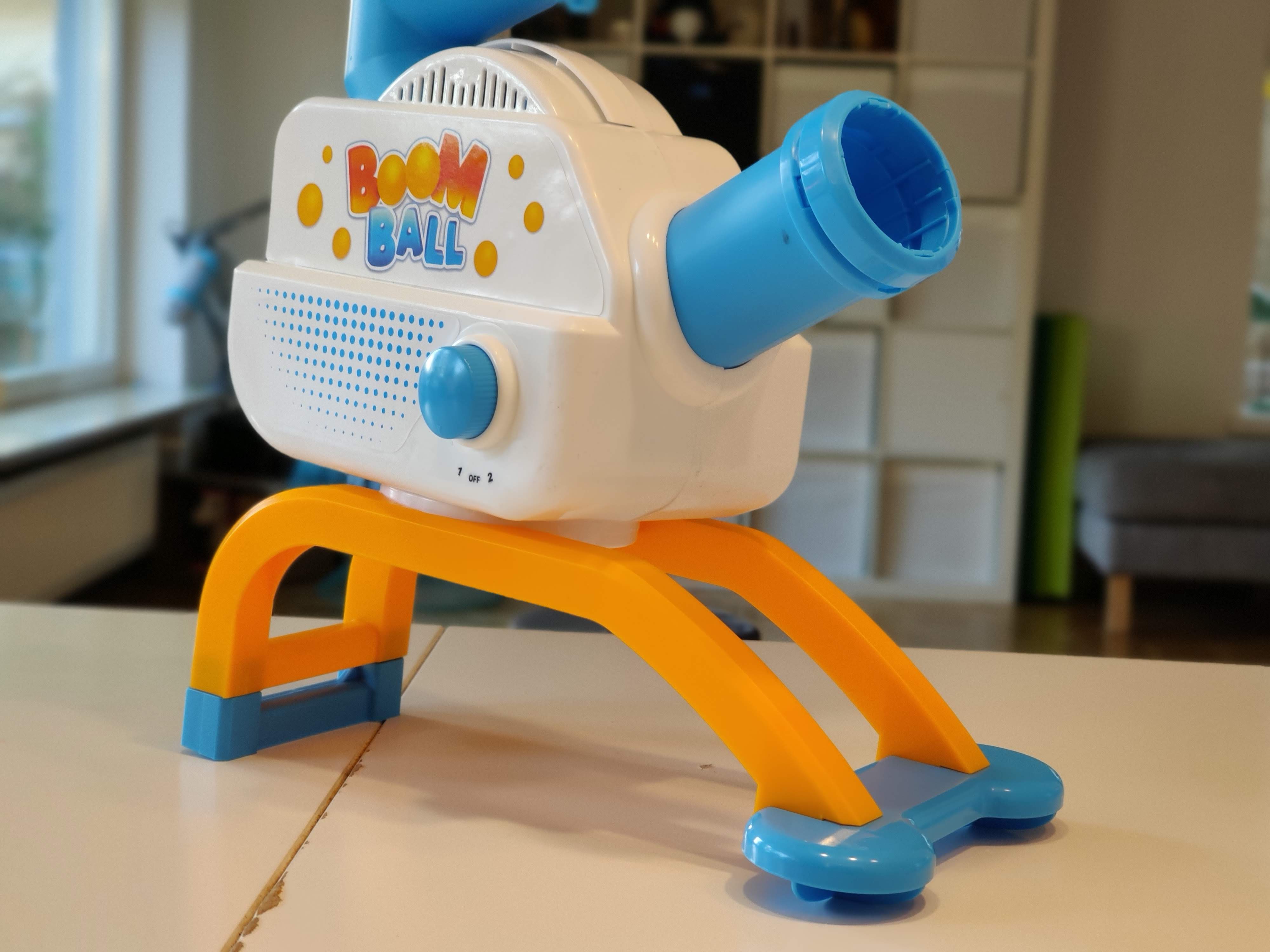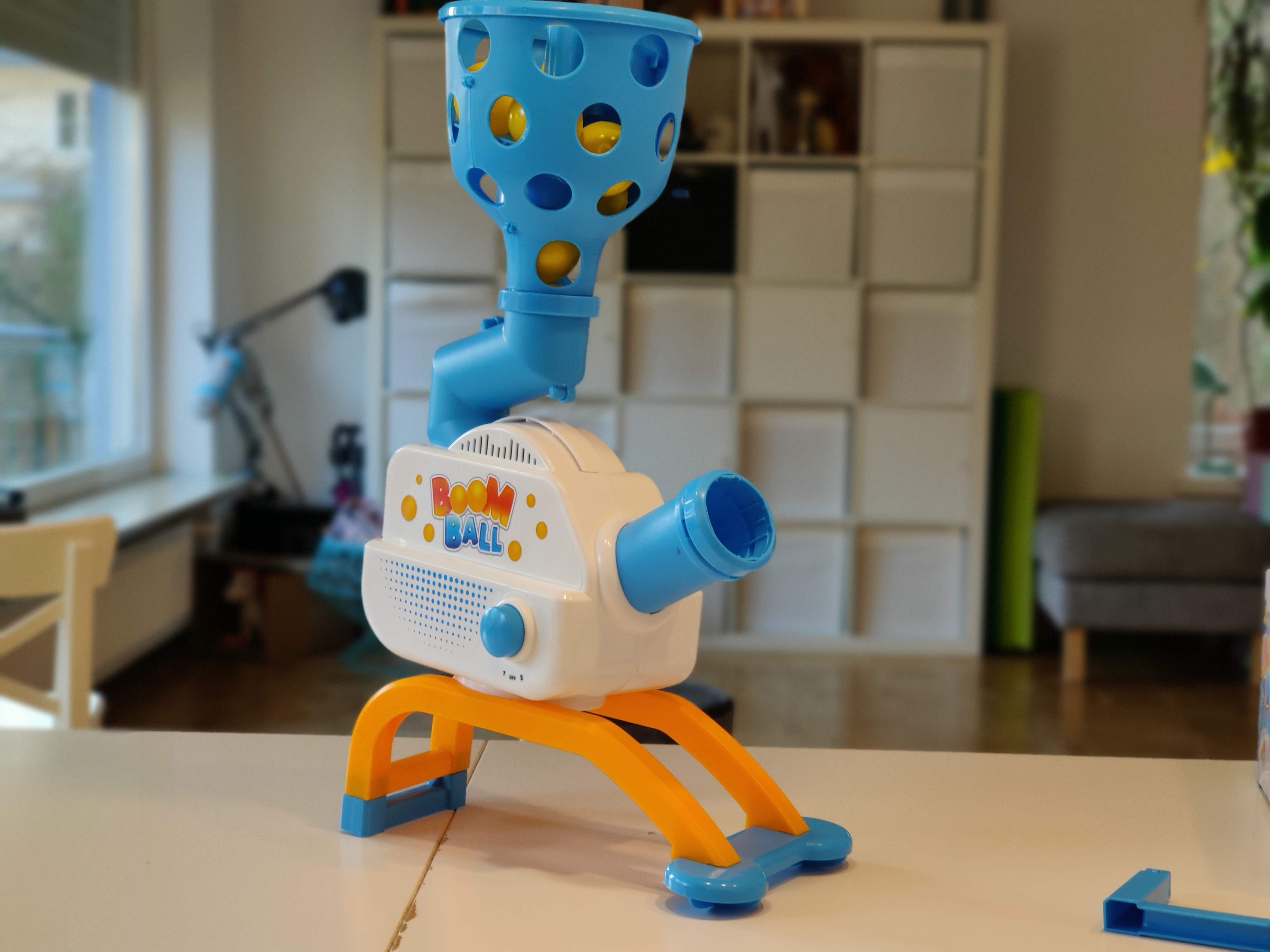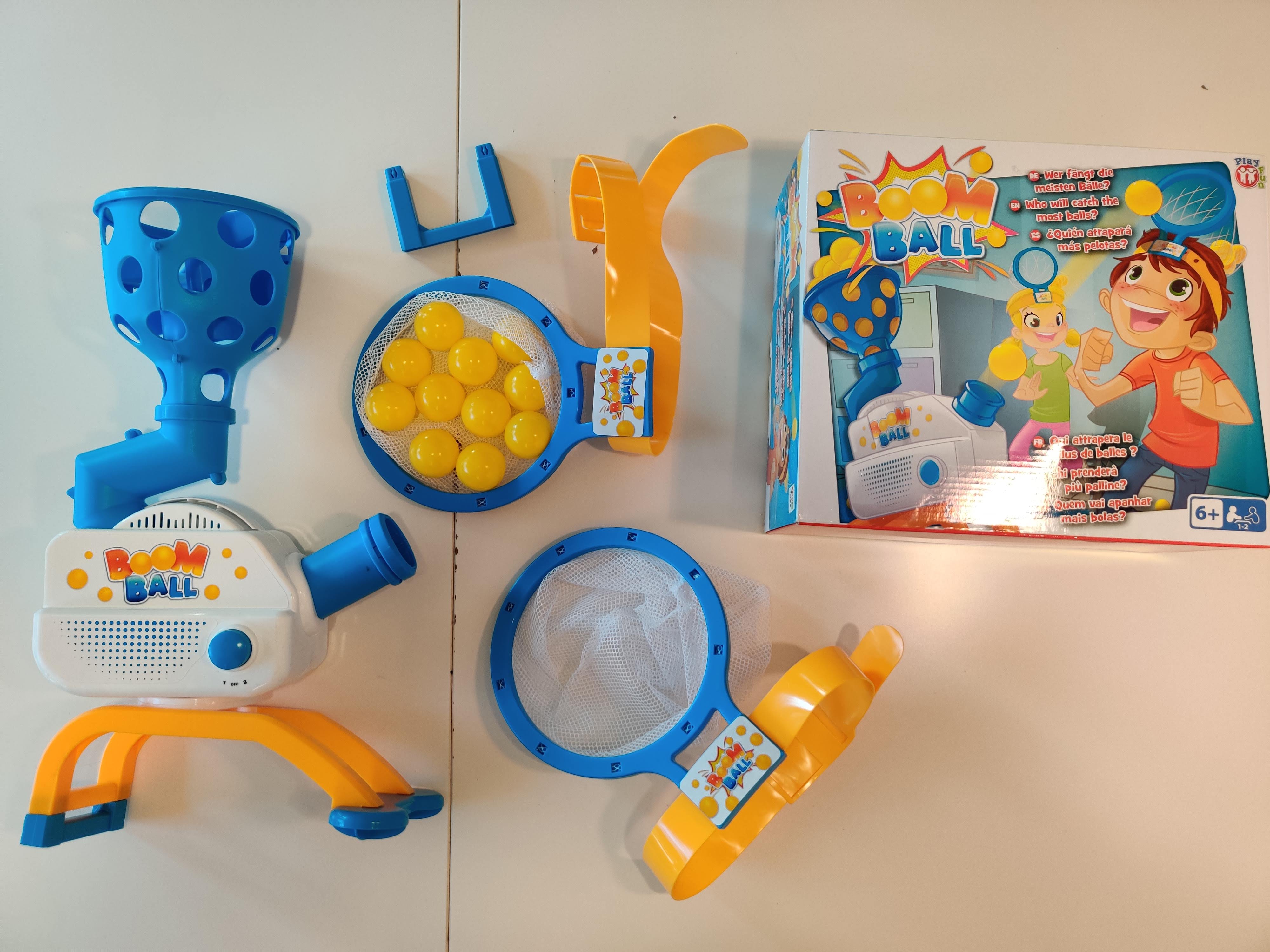 Bei Boomball schießt eine sich horizontal hin und her bewegende Maschine zwölf Tischtennisbälle in den Raum. Zwei Spieler haben je ein Netz am Kopf. Wer mehr Bälle fängt, gewinnt. In der Praxis funktioniert das sehr gut – ausreichend Platz vorausgesetzt. Allerdings ist hier auch Vorsicht geboten: Bei Übermotivation besteht die Gefahr einer Kopfverletzung.