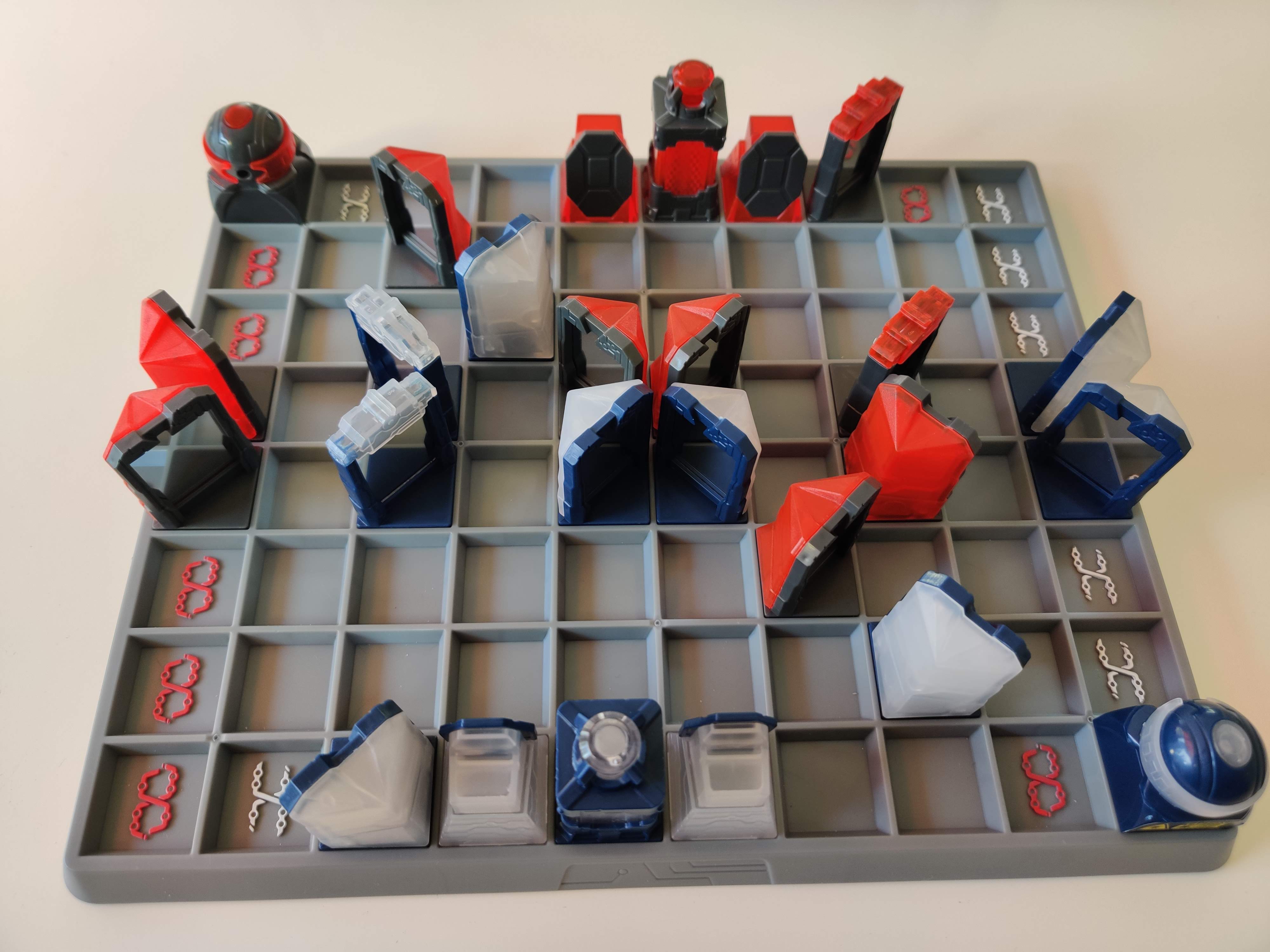 Lazer Chess mischt dieses Prinzip mit klassischem Schach. Lazer Chess ist für zwei Spieler gedacht und macht am meisten Spaß, wenn sich zwei Kontrahenten auf einem vergleichbaren kognitiven Niveau miteinander messen. Das können zwei Erwachsene, aber auch zwei etwas ältere Kinder sein.