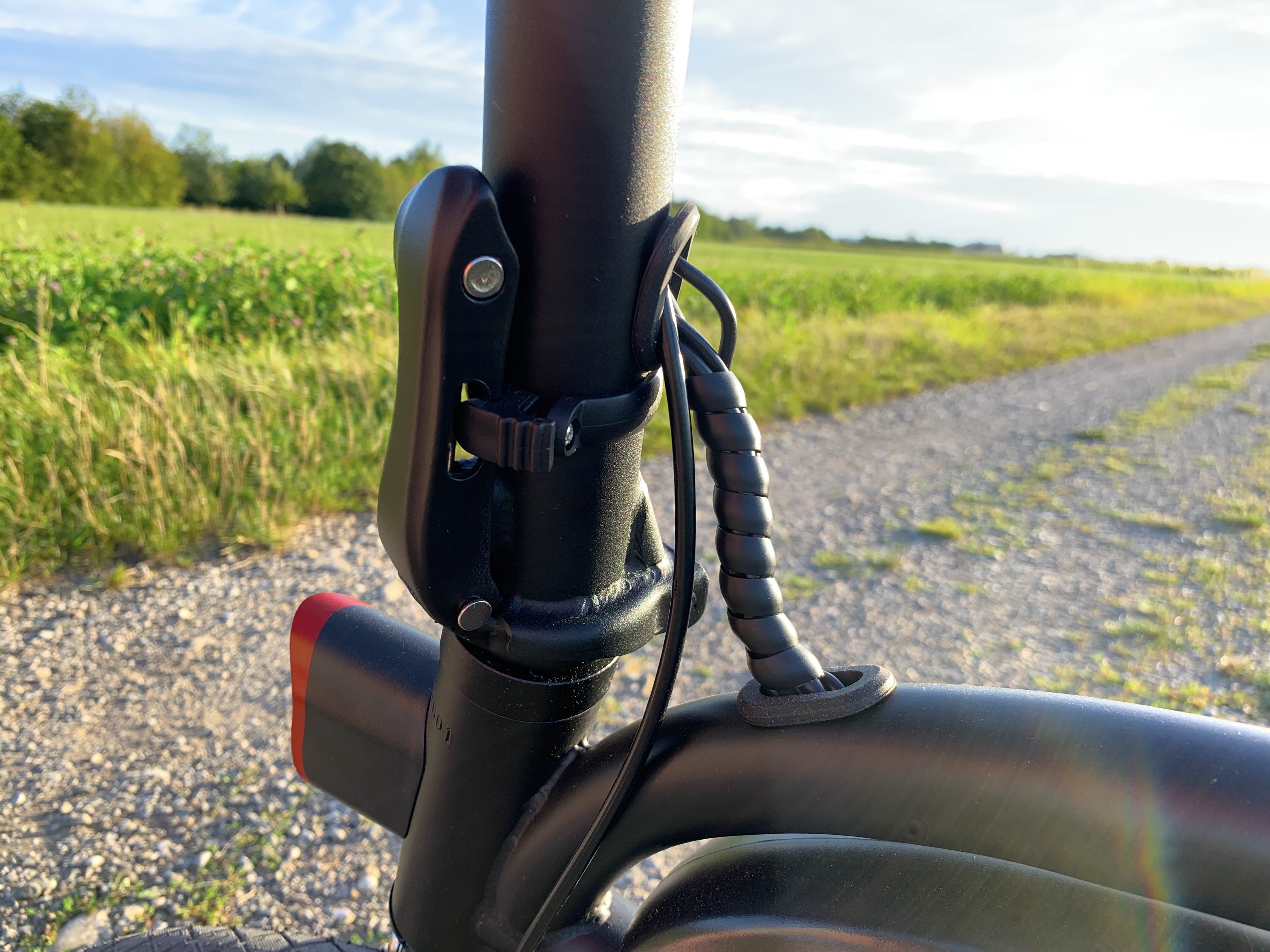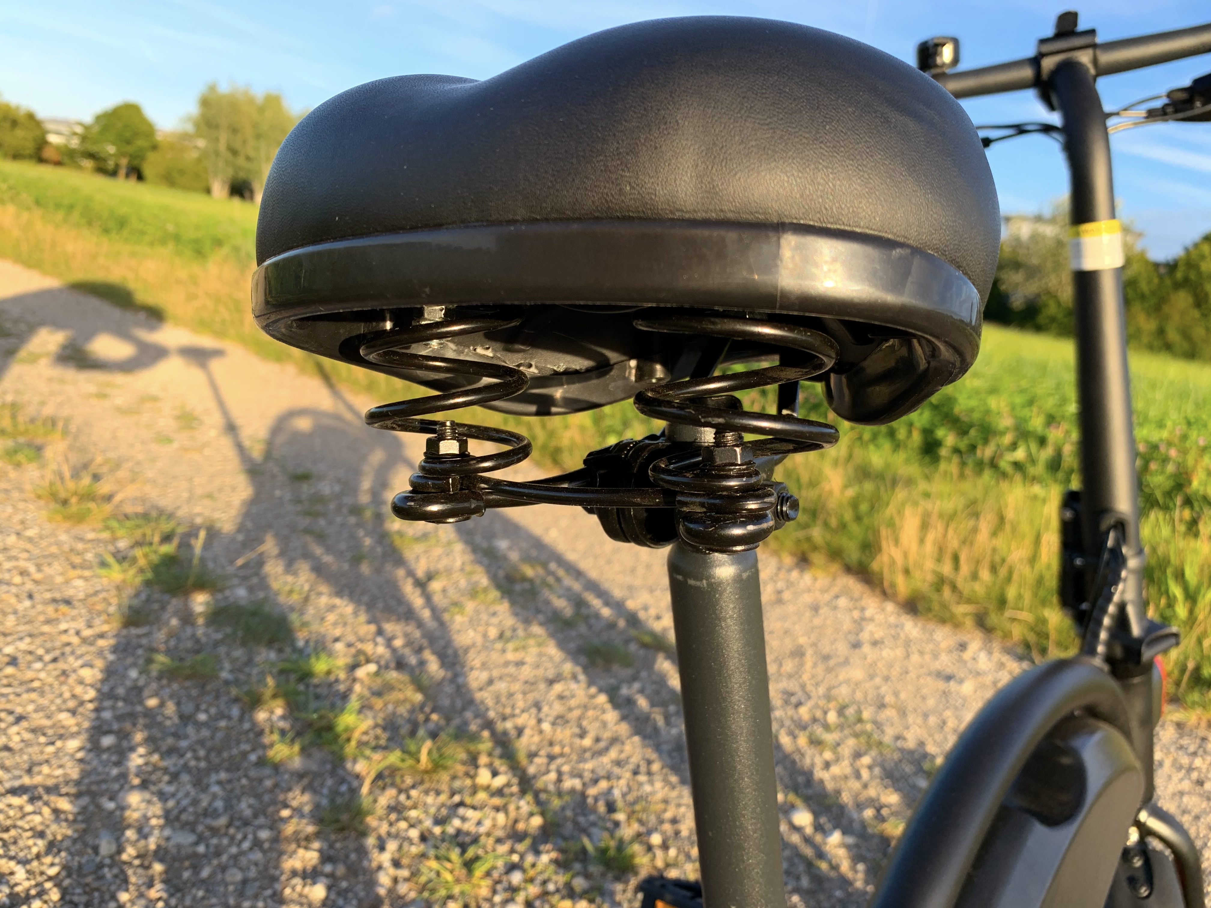 Von den Klapprädern mit 20 Zoll findet man lediglich beim Mate X und dessen China-Klon Fiido M1 eine Federung, dafür gleich vorne und hinten. Das liegt vor allem daran, dass die faltbaren E-Fatbikes auch für das Gelände konzipiert sind. Das wirkt sich sehr positiv auf das Fahrgefühl aus. Mit keinem anderen E-Klapprad in unserem Vergleichstest cruised man entspannter durch die Stadt oder über Feldwege. Am sanften Fahrgefühl haben hier auch die sehr breiten Reifen maßgeblich ihren Anteil.