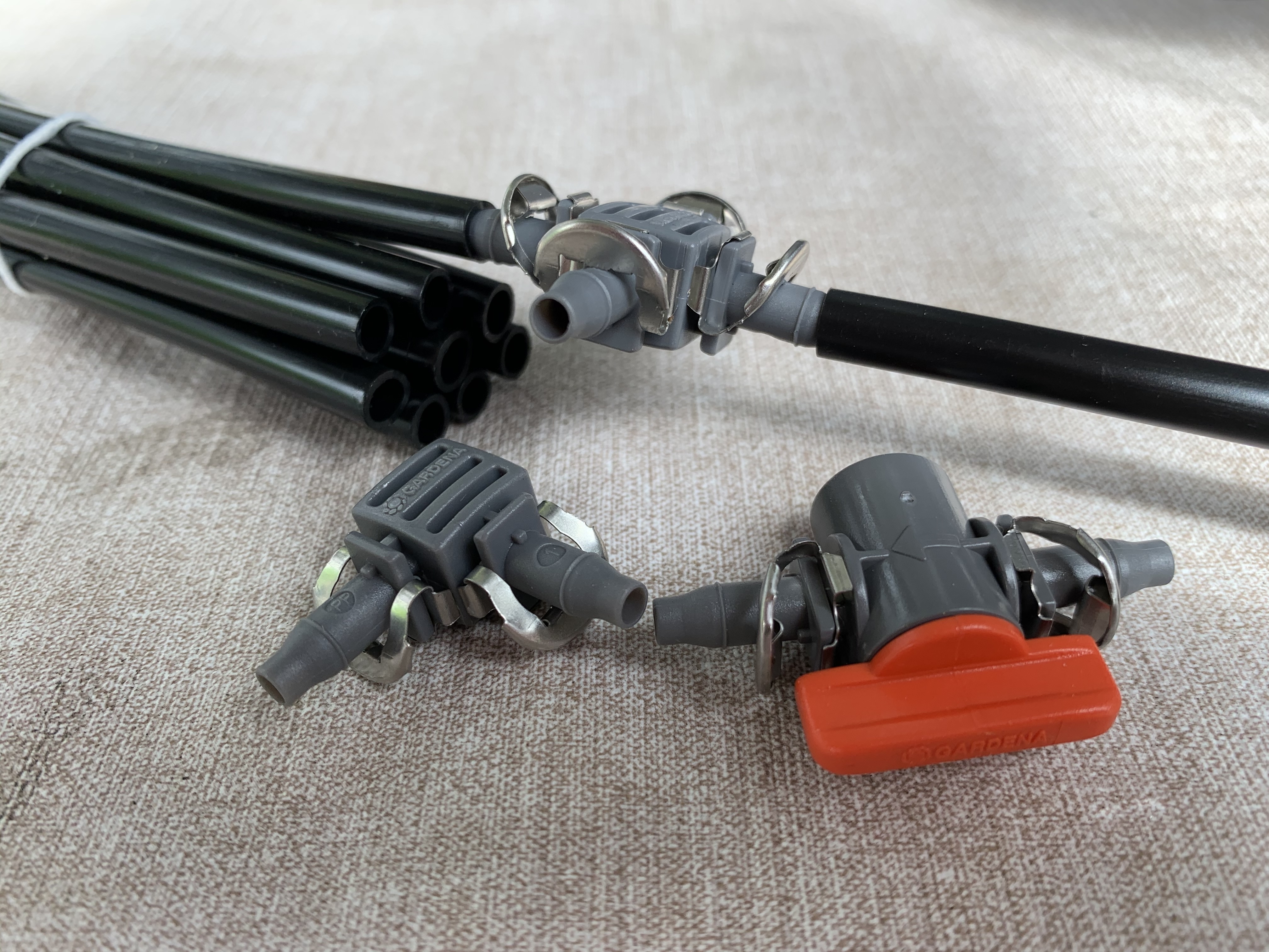 Im Starterset sind 20 Meter Schlauchlänge, 15 Rohrhalter und 20 Tropfer enthalten. Laut Gardena ist das die maximale Tropferanzahl, damit die angegebenen Werte zu Bewässerungsdauer und Wasserverbrauch stimmen. Wem das zu wenig ist, der kann sich diverse Micro-Drip-Komponenten dazukaufen; etwa einen längeren Schlauch, Ventile oder weitere Tropfer. Aber Gardena ist teurer. Wer das Schlauchsystem günstig will, findet bei Shops wie Banggood günstige Komplettsets ab 19 Euro. Sogar einen Nachbau des vertikalen Kräutergarten Gardena Natureup gibt es bei Banggood. Während das Original ab 33 Euro kostet, zahlt man im chinesischen Online-Shop ab 11 Euro.