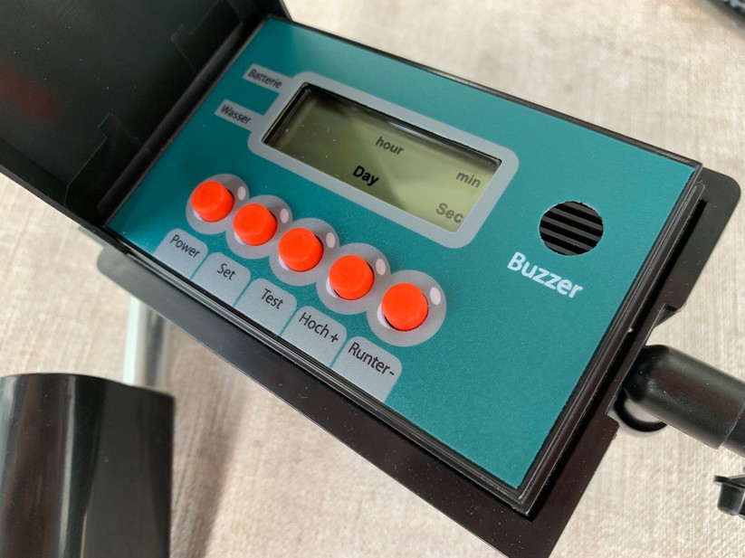Zudem wird bei den Budget-Modellen früher oder später die Pumpe ausfallen, denn die wird mit Strom aus AA-Batterien versorgt. Laut Hersteller soll das einen Betrieb für 30 Tage gewährleisten. Wir empfehlen allerdings, maximal 14 Tage mit den billigen Modellen einzuplanen; schließlich geben die Hersteller bei der Laufzeit keine Häufigkeit der Bewässerung an. Wer sparsame Pflanzen bewässert, kommt mit einem 10-Liter-Eimer sowie einer maximalen Bewässerungszeit von 30 Sekunden pro Tag für etwa einen Monat hin.