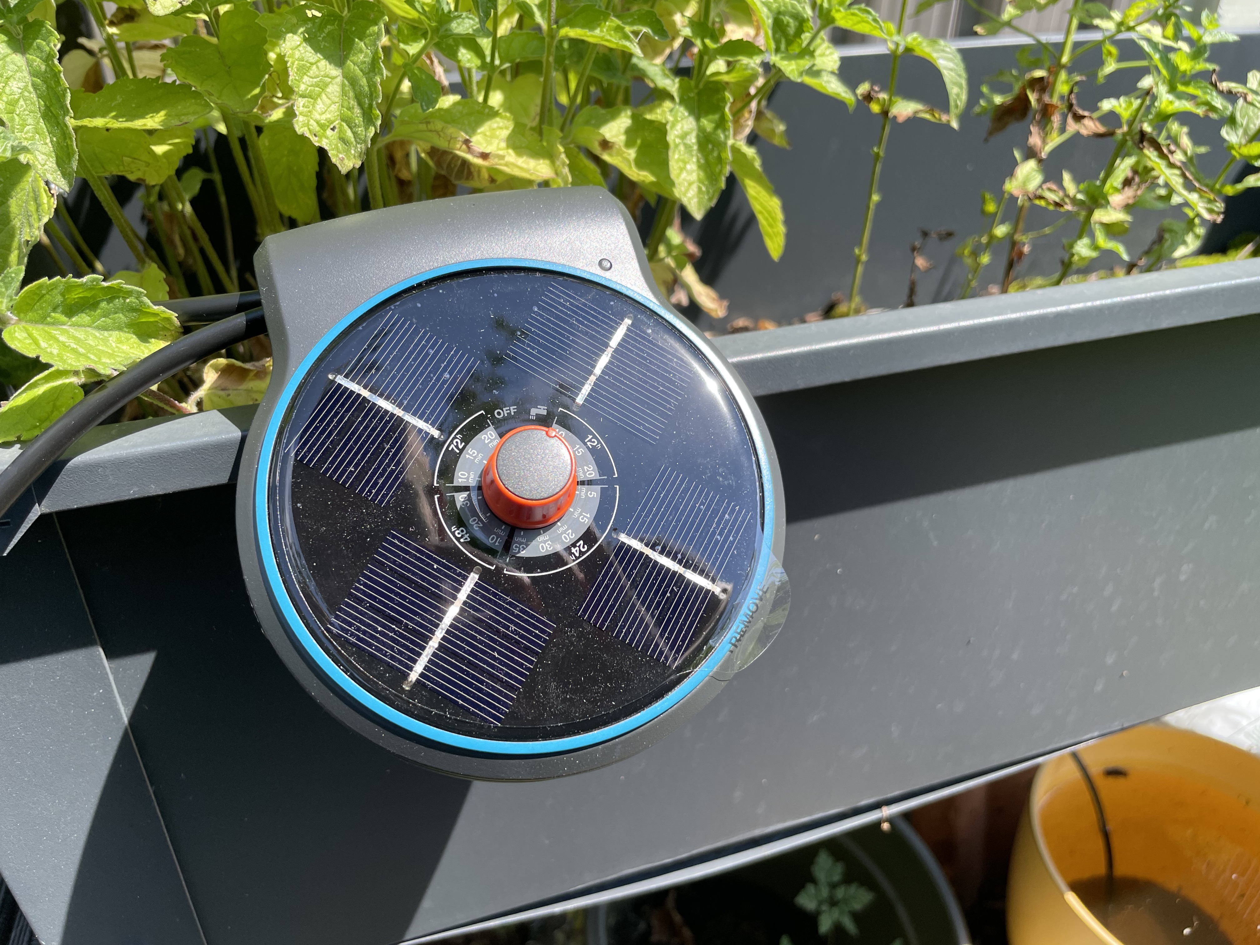 Die restliche Inbetriebnahme ist einfach. Die Pumpe kommt in einen Wasserbehälter. Im Anschluss stellt man Bewässerungsfrequenz und -dauer am Automaten ein. So kann man die Pumpe beispielsweise dreimal täglich für 60 Sekunden aktivieren – oder nur mittwochs für zwei Minuten. Aber Achtung: Mit den Einstellungen muss man experimentieren und genau planen. Andernfalls bekommen die Pflanzen zu viel Wasser oder der Wasservorrat geht aus, bevor man aus dem Urlaub zurück ist.