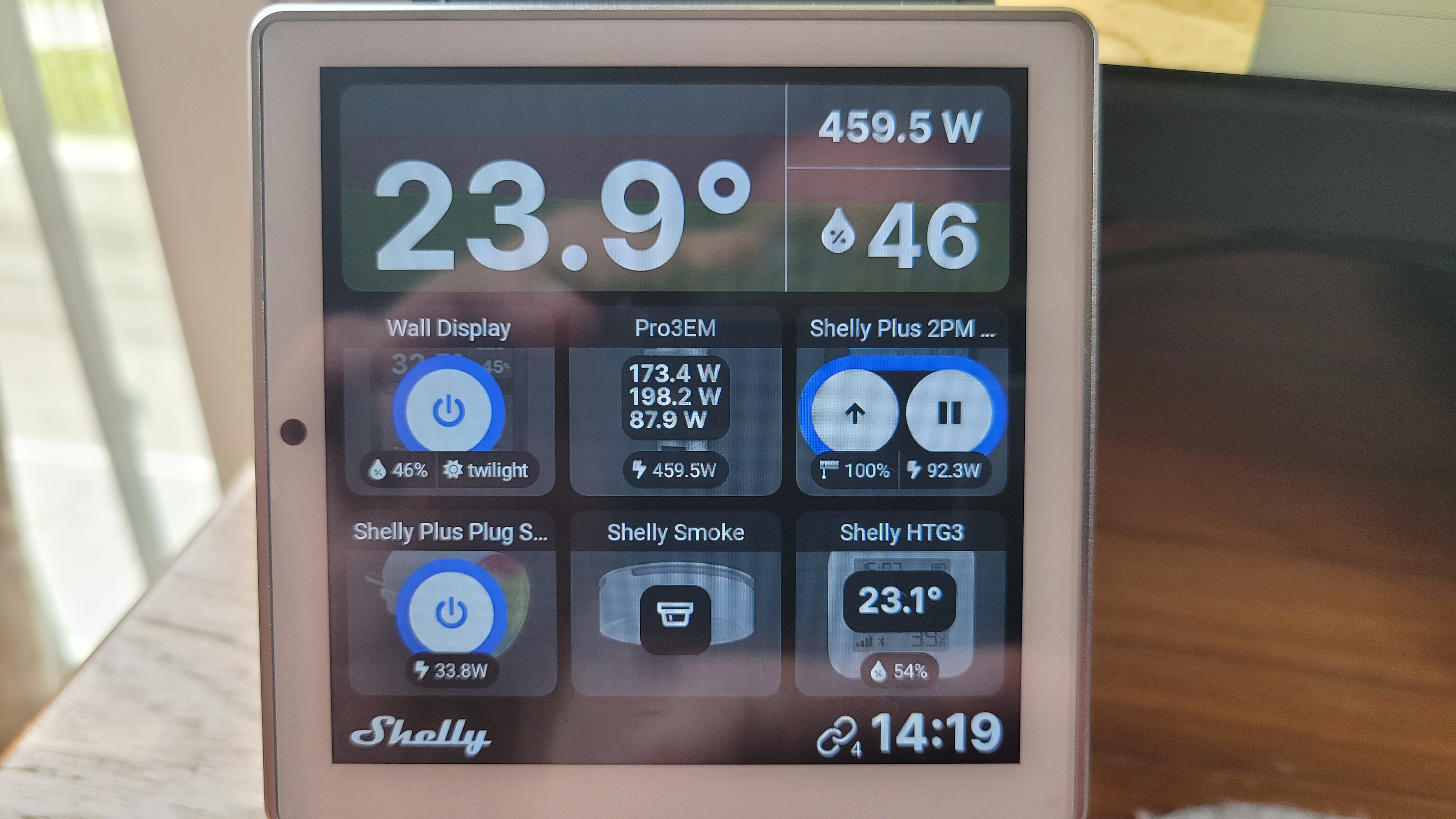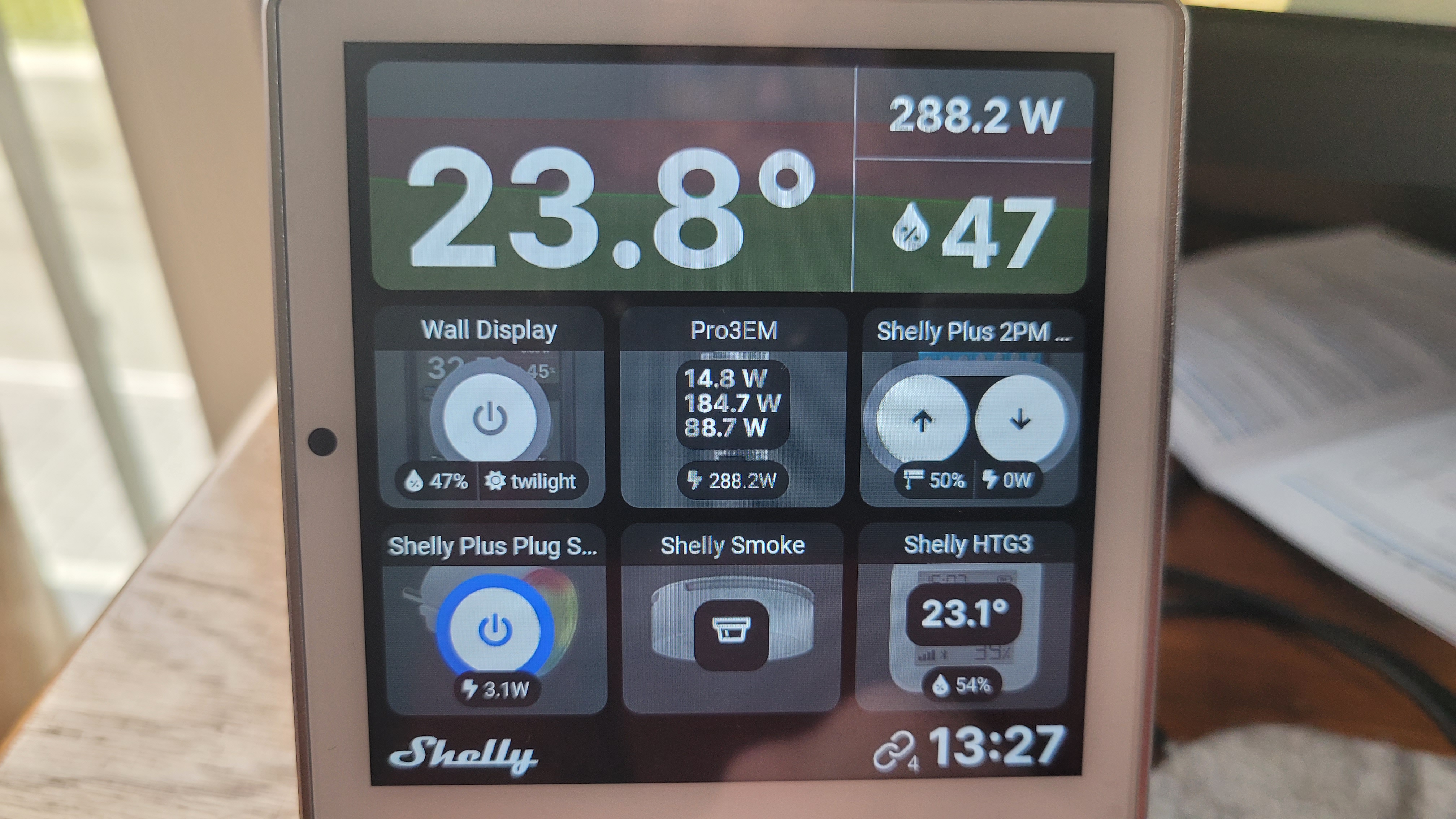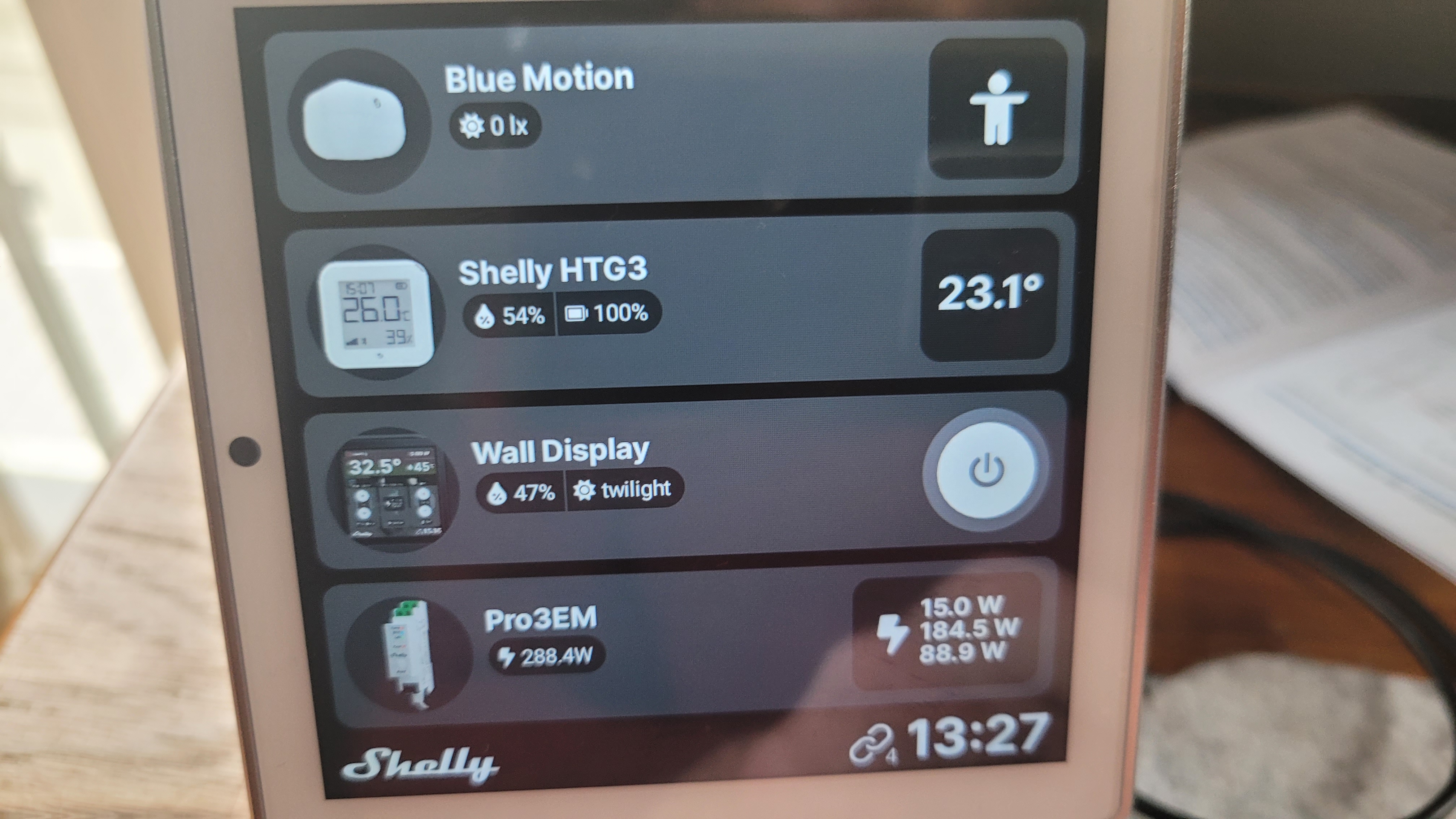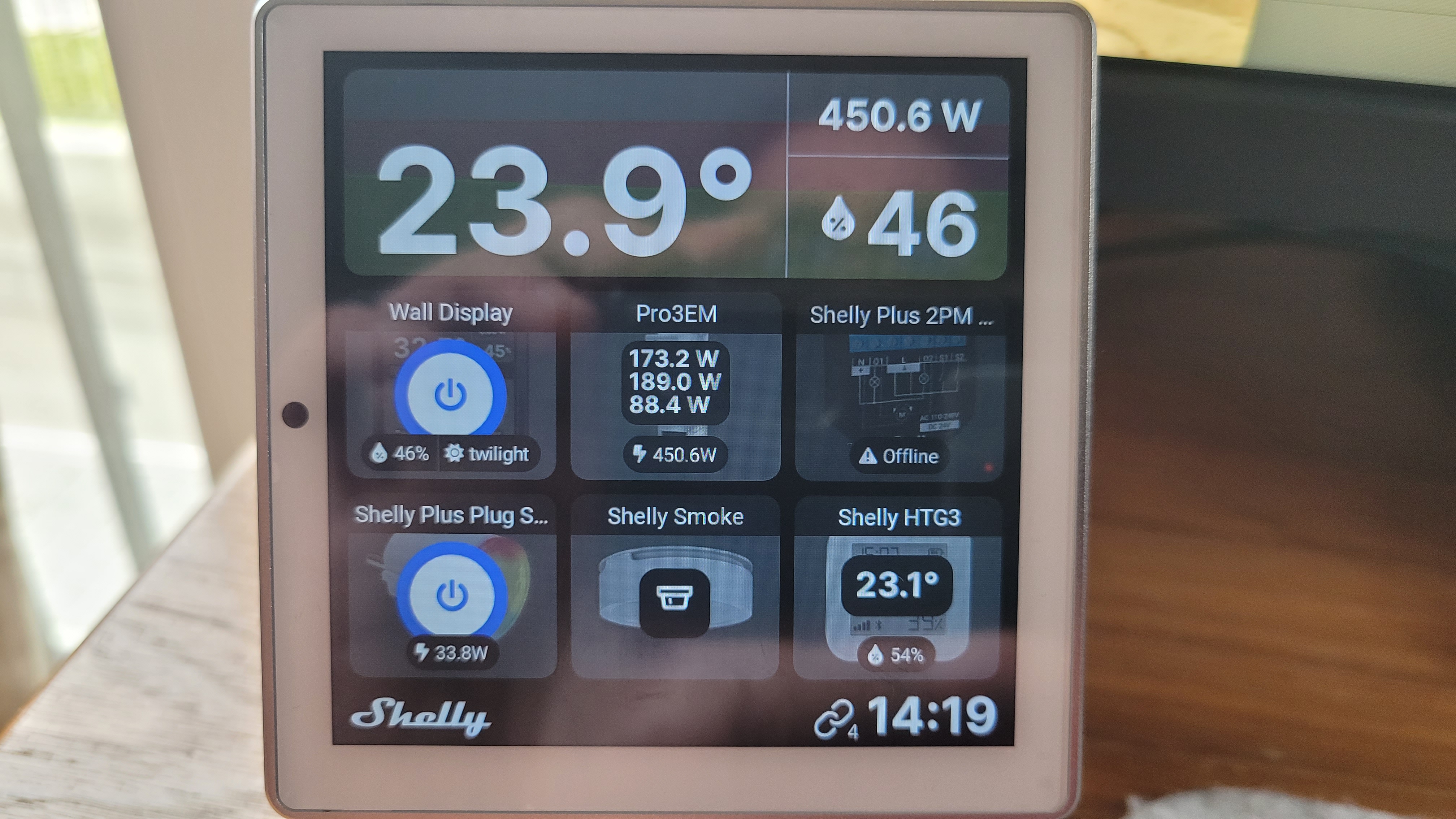 Doch auch als Nachrüstlösungen sind beide Geräte nützlich. Optional erhältliche Wand- und Tischgehäuse erlauben dabei eine flexible Positionierung. Wer etwa viele Shelly-Geräte verwendet, kann das Wall Display des bulgarischen Smart-Home-Herstellers zur Anzeige des aktuellen Stromverbrauchs, der etwa vom Drei-Phasen-Stromzähler Pro 3EM (Ratgeber) ermittelt wird, verwenden und sämtliche Shelly-Geräte damit steuern.
