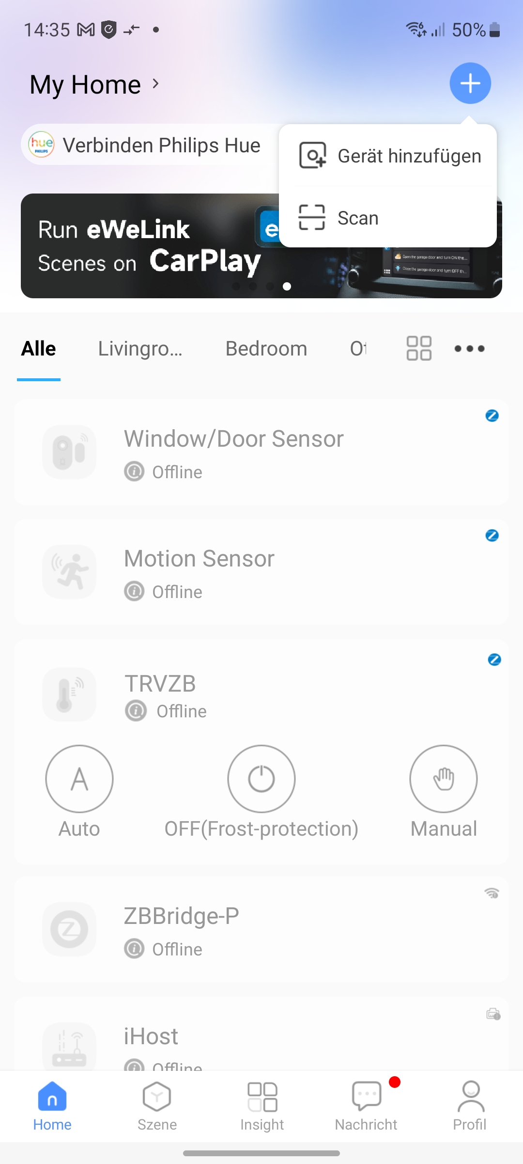Wie Shelly Wall Display kann auch das Sonoff-Display als Raumthermostat dienen. Weiterhin bietet das NSPanel Pro deutlich mehr Funktionen als das Shelly-Pendant. Es kann als Zigbee-Hub oder -Router fungieren, unterstützt Matter-Geräte und kann Lichter und Schalter aus Home Assistant (Testbericht) über die Ewelink-App integrieren. Das klappt im Test einwandfrei, sodass wir LED-Streifen verschiedener Hersteller wie Aqara, Govee, Nanoleaf und Yeelight, die alle unter Home Assistant angelernt wurden, damit ein- und ausschalten sowie die Farbtemperatur festlegen können. Eine Farbauswahl ist jedoch nicht möglich, was allerdings nicht weiter tragisch ist, da man aufwendige Farbschemata von etwa RGBIC-Leuchten ohnehin mit der App des jeweiligen Herstellers erledigt.