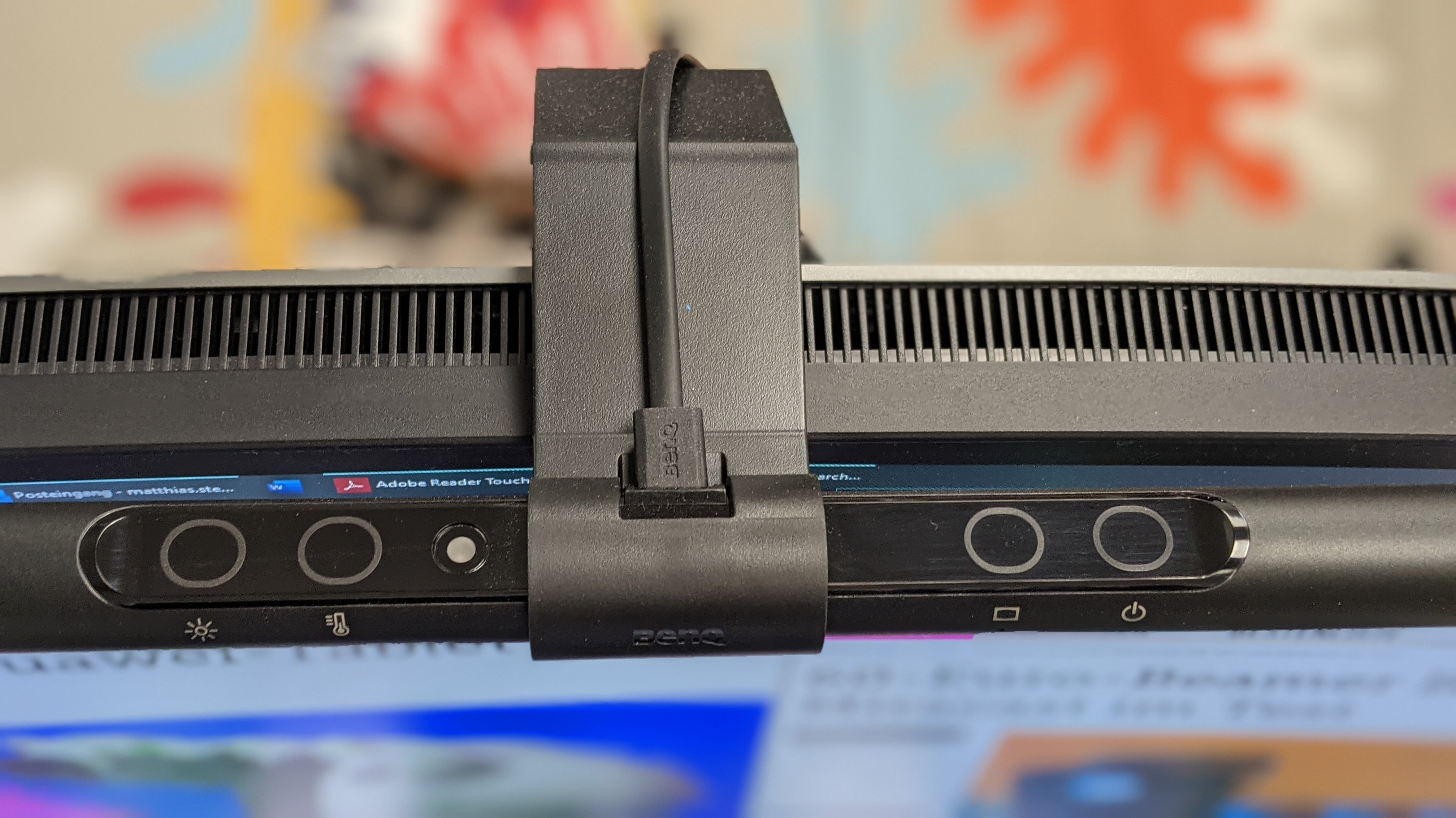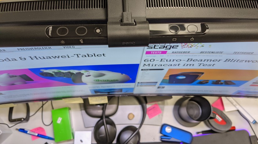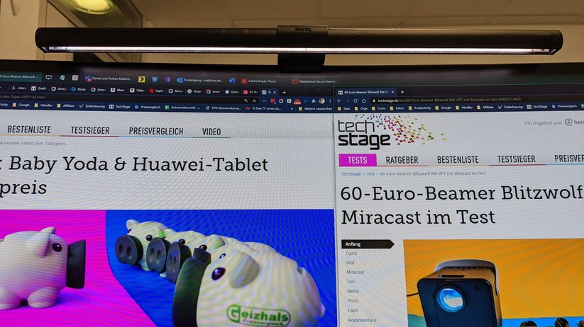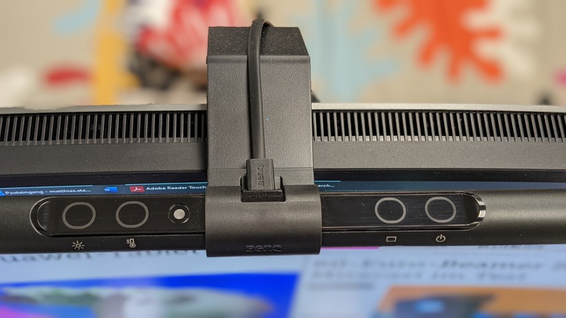 Das Beste: Ihr Licht ist für den Nutzer blendfrei, Reflexionen auf dem Monitor konnten wir im Test nicht feststellen. Sie holt sich ihren Strom über einen USB-A-Port. So kann man sie alternativ zum Netzteil etwa über ein USB-Dock oder direkt über den Rechner speisen. In unseren Fall schaltet sie sich sehr praktisch mit dem Computer ein und aus.