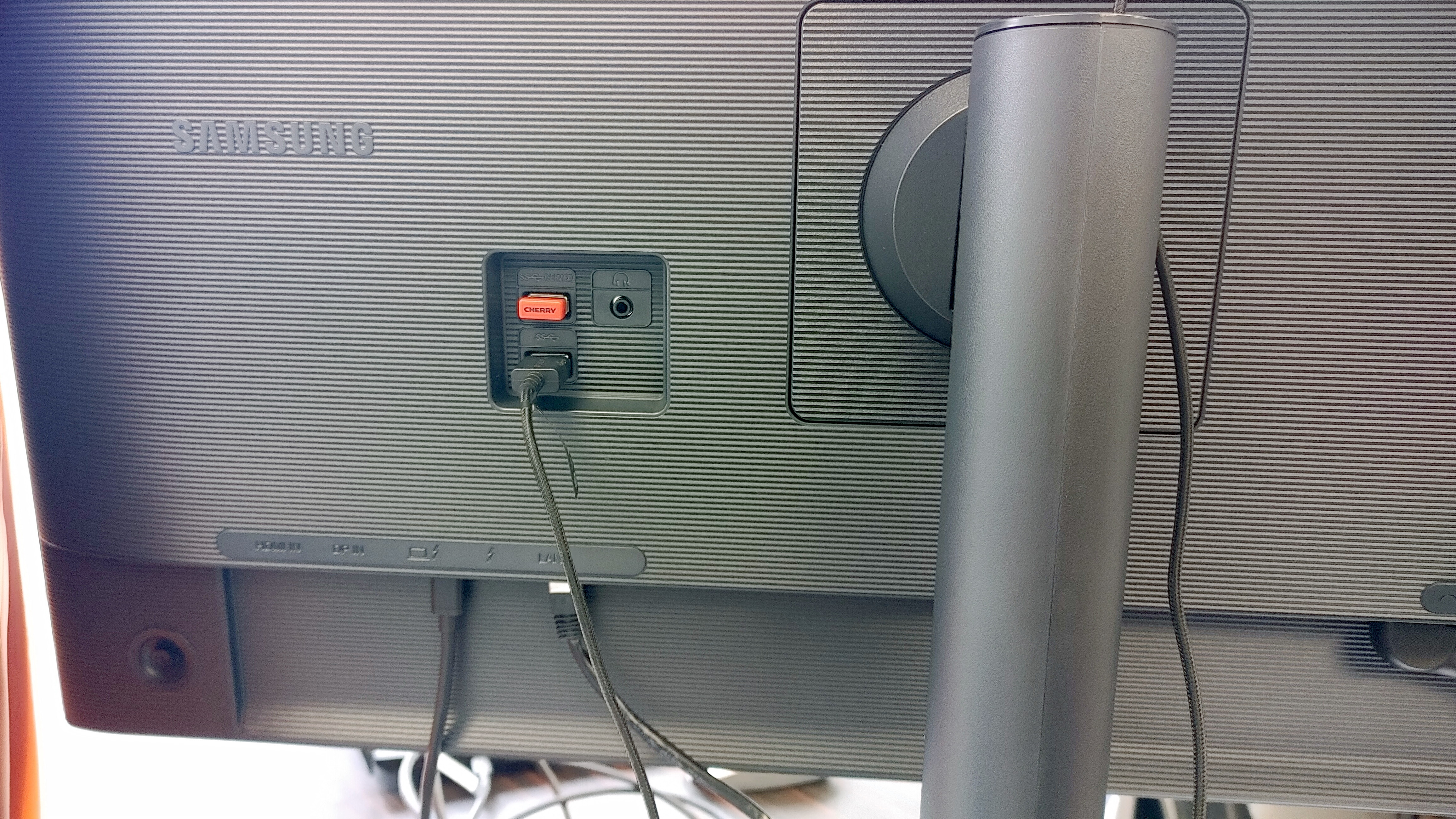 Immer mehr Monitore verwenden USB-C nicht nur als Datenkanal zum Darstellen von Inhalten. Geräte wie der Samsung F32TU870VU arbeiten als vollwertiges USB-C-Dock und können Notebooks direkt aufladen. Im Test hatten wir den Dongle für die kabellose Maus und Tastatur sowie eine Webcam direkt am Monitor angeschlossen.