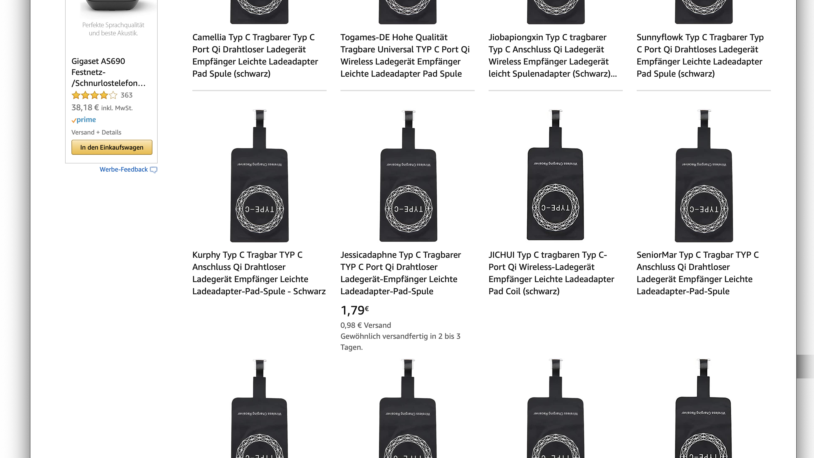 Bei der Suche nach geeigneten Empfängern für ein Huawei P20 Pro und ein Huawei P Smart Z – jeweils mit USB-C-Buchse – werden wir schnell fündig und bestellen drei unterschiedliche Qi-Empfänger. In der Redaktion stellt sich heraus, dass wir trotz verschiedener Produktbilder zwei identische Matten des Herstellers Nillkin bestellt haben. Diese kommen sehr ordentlichen verpackt bei uns an. Die dritte Matte ist ein Noname-Produkt und kommt in einer einfachen Plastiktüte zum Kunden.