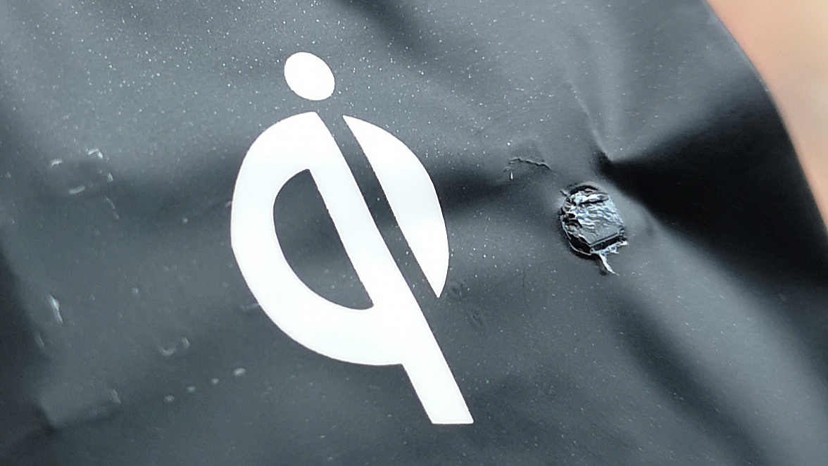 Nach den ersten kurzen Versuchen lassen wir die Smartphones dann gut 15 Minuten auf der Ladestation. Als wir sie anschließend herunternehmen, verbrennen wir uns beim Huawei P Smart Z mit dem Noname-Qi-Empfänger fast die Finger. Smartphone und Silikonmatte sind extrem heiß. Nach dem Entfernen der Schutzhülle lassen wir das Gerät zunächst abkühlen. Als wir den Qi-Empfänger genauer ansehen, stellen wir fest, dass die dünne Kunststoffummantelung geschmolzen ist.
