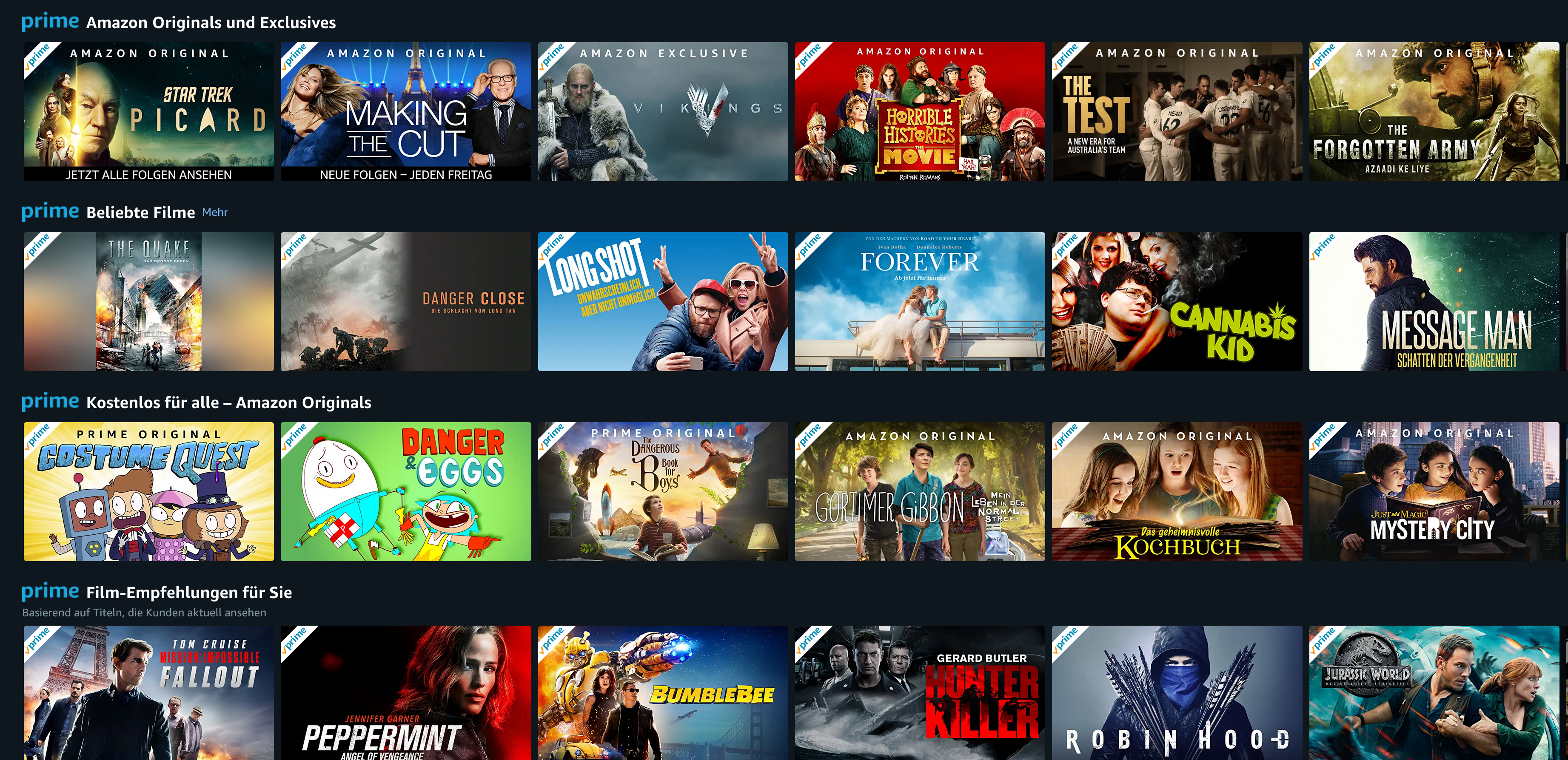 Der Dienst bietet kostenlosen Versand, über eine Million Lieder auf Amazon Music und eine große Auswahl bei Prime Video. Amazon Prime ist und bleibt ein Multitalent für überschaubares Geld. Bei den Filmen und Serien lässt sich das gesamte Angebot mittlerweile gar nicht mehr beziffern. Neben Serien-Klassikern wie Lost, Pokémon und Supernatural, gibt es Filme wie Transformers, Hellboy oder Harry Potter. Aber auch hier gilt: Man kann froh sein, wenn einmal das gesamte Angebot einer Serie verfügbar ist. Nur in den seltensten Fällen, abgesehen von den Amazon-Eigenproduktionen, stehen alle Staffeln einer Serie oder alle Filme einer Reihe zur Verfügung. Dafür stockt Amazon sein Sortiment so oft auf, dass man selten vor der Langeweile steht. Und natürlich gibt es dann noch die Exklusivinhalte wie Star Trek Picard, The Grand Tour oder die deutsche Produktion Pastewka. Ferner überträgt der Anbieter die Dienstagsspiele der UEFA Champions League.