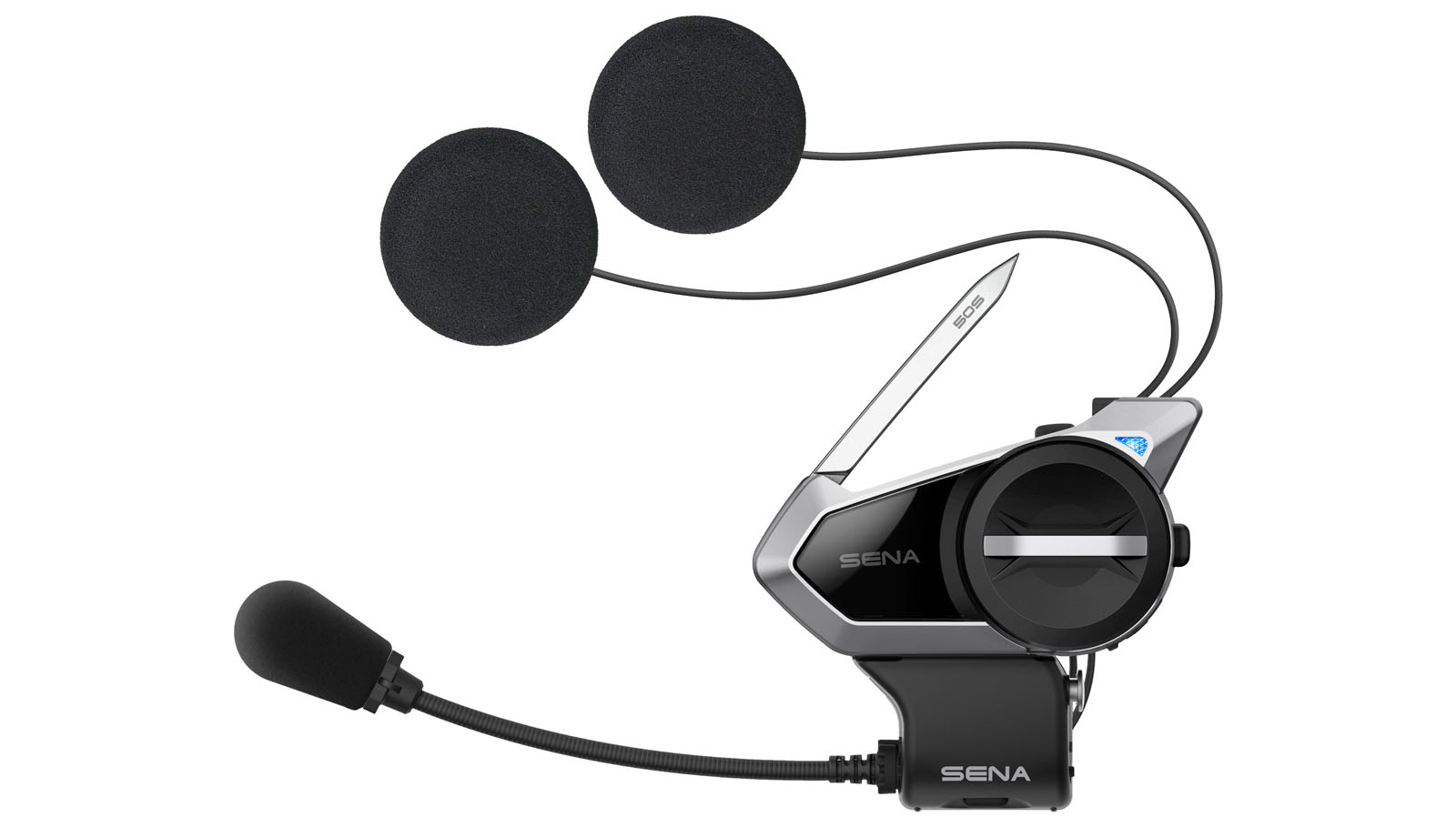 Das Sena 50S verfügt über einen großen Drehknopf, Jog-Dial genannt, der die Bedienung mit dicken Handschuhen erlaubt. Der Hersteller legt Wert darauf, dass die 40-Millimeter-Lautsprecher bei seinem Top-Gerät einen klaren und kraftvollen Sound liefern. Per Sprachsteuerung kann auf die Funktionen des Smartphones zugegriffen werden und über die 50-Utility-App können alle Einstellungen am 50S vorgenommen werden.