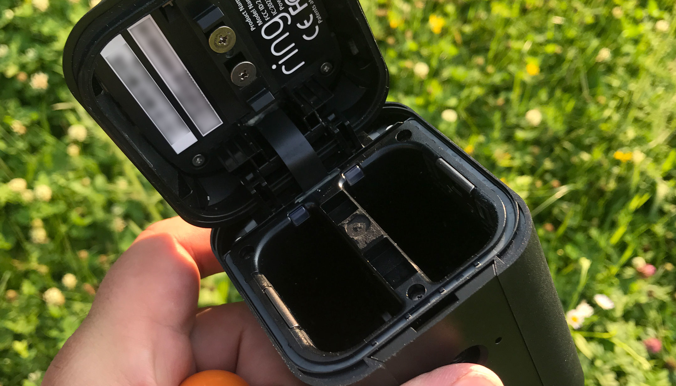 Die Ring-Kameras sind darauf ausgelegt, sowohl mit als auch ohne Stromversorgung zu arbeiten – im zweiten Fall beziehen sie ihre Energie aus Akkus. Die Lithium-Zellen erinnern von der Form her an die von Fotokameras, haben aber einen Micro-USB-Port, um außerhalb der Kamera wieder geladen zu werden. Die Geräte der Spotlight-Serie haben sogar zwei Akku-Fächer – sodass man immer einen leeren Akku entnehmen, im Haus wieder laden und dann wieder in die Kamera einsetzen kann. Über den Akkustand informiert die zugehörige App.