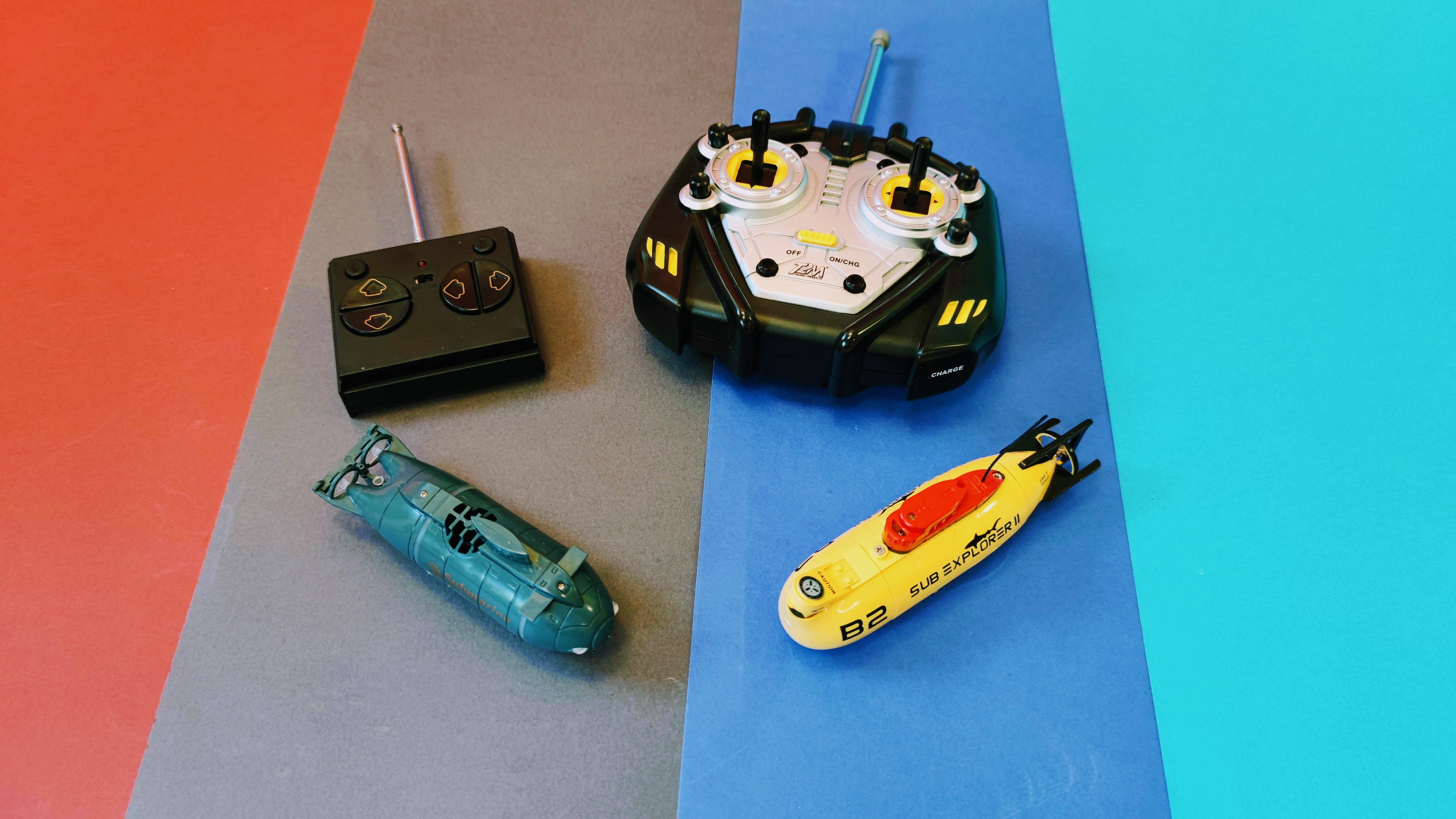 Als Antrieb dient bei allen U-Booten ein winziger elektrischer Motor. Der Akku ist jeweils fest im Boot verbaut. Im Fall des T2M Sub Explorer II liegt ein Kabel bei, das man für den Ladevorgang mit der U-Boot-Fernbedienung verbindet. Diese benötigt für den Betrieb sechs AA-Batterien. Das bietet den Vorteil, dass man das U-Boot-Spielzeug auch unterwegs mit der Funksteuerung aufladen kann. Andere U-Boote verfügen über ein Ladekabel mit USB-A-Anschluss, das entweder am PC oder über ein Netzteil mit aufgeladen wird.