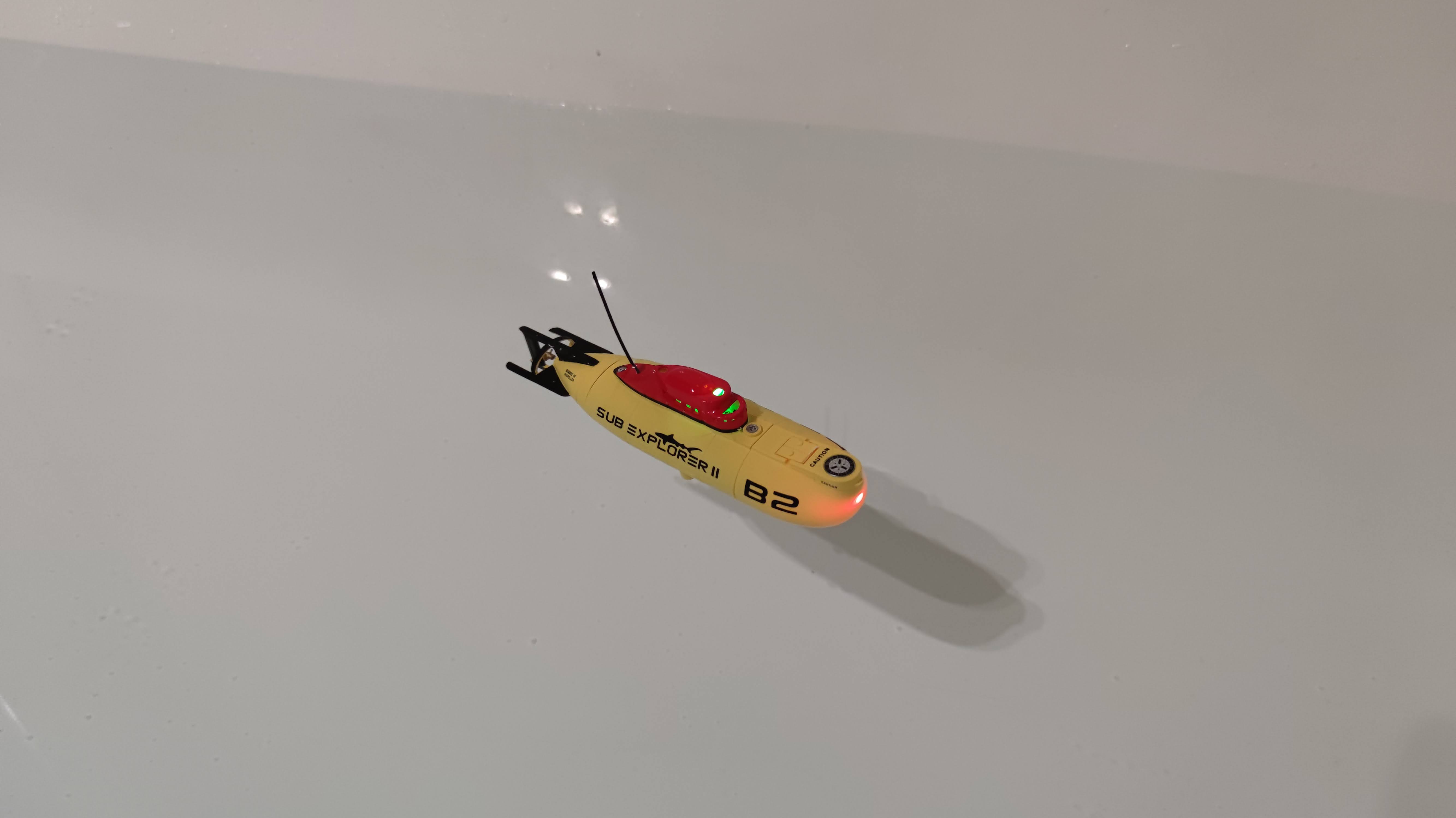 Ein dynamisches Fahrverhalten sollten Nutzer nicht erwarten. Das T2M Sub Explorer II bewegt sich sehr gemächlich nach vorne. Die Höchstgeschwindigkeit liegt gerade einmal bei etwa 0,4 Km/h. Es reagiert prompt auf Kommandos und steuert präzise. Nur das Abtauchen gestaltet sich weniger reibungslos. So muss man den Knopf für längere Zeit gedrückt halten – nicht immer startet das Boot den Tauchvorgang auf Anhieb. Ähnlich verhält es sich mit dem Wiederauftauchen. Leider taucht das Boot dann normalerweise ab, bis es auf Grund läuft. Es erfordert einige Übungen, um das U-Boot auf einer konstanten Tiefe zu halten – was in unserem Fall nur wenige Male wirklich funktioniert hat. Das Modell von Happy Cow ist deutlich flotter, steuert aber ungenau.