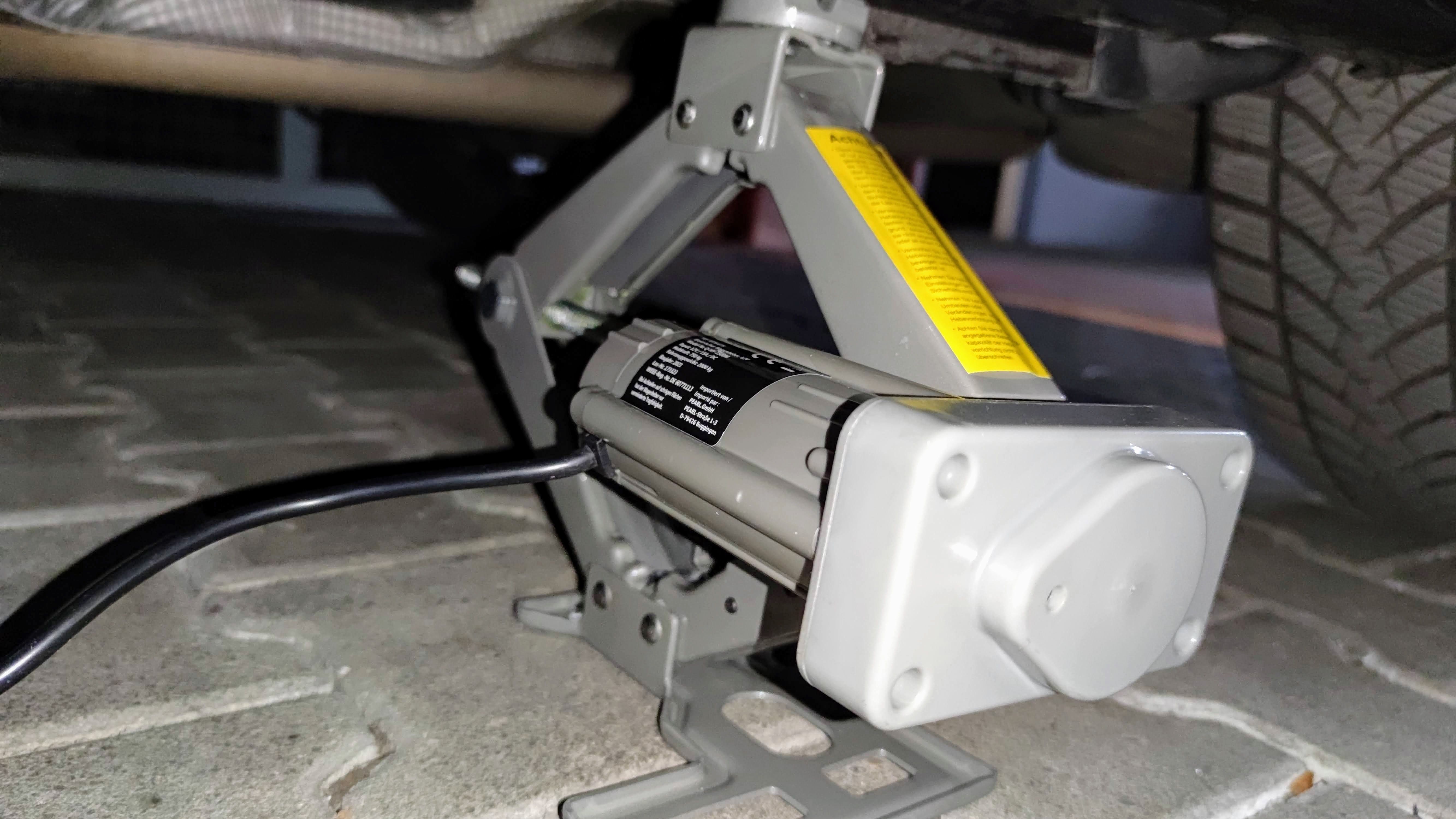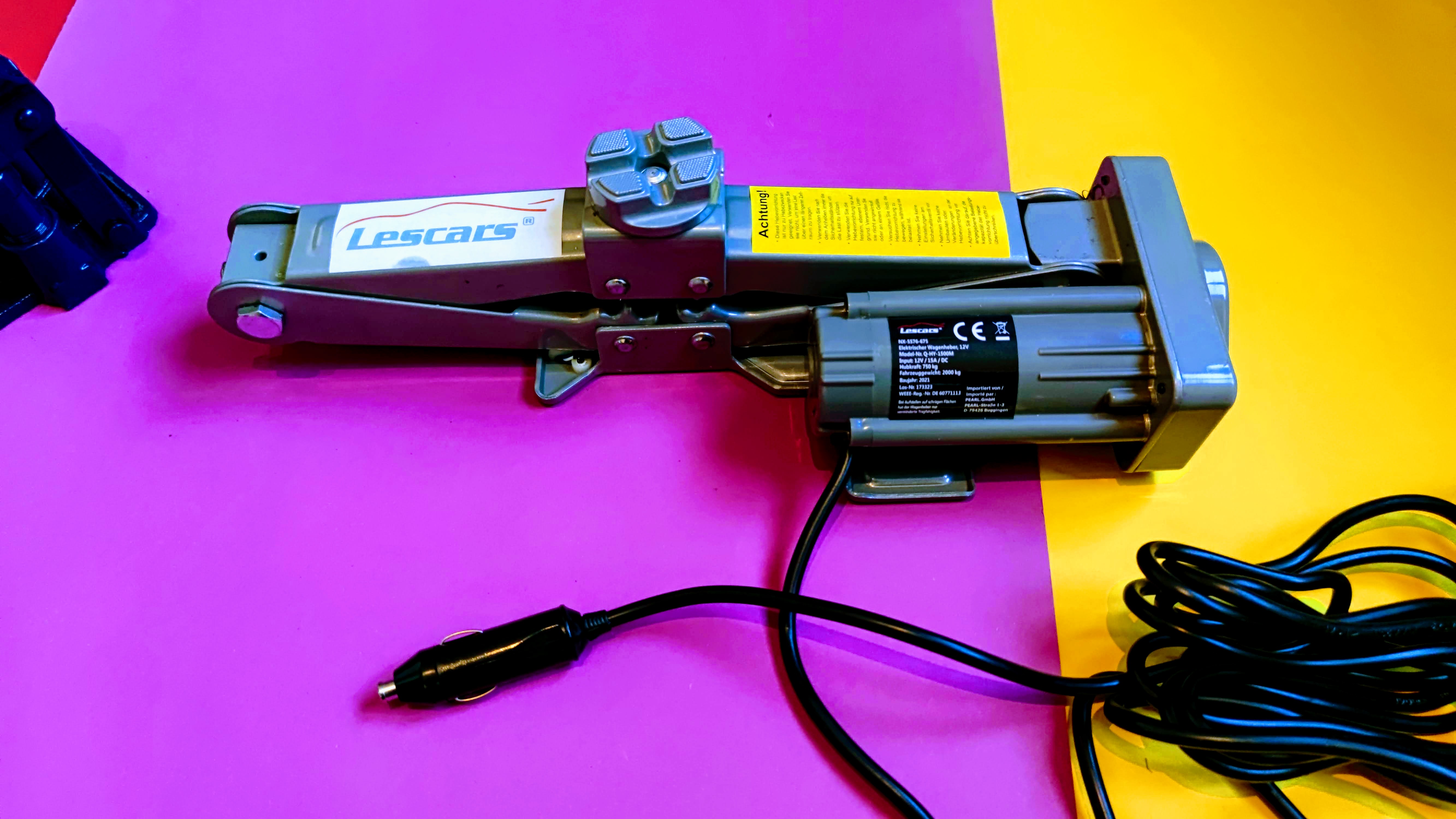 Eine bequeme Alternative ist ein elektrischer Scherenwagenheber. Hier übernimmt ein Elektromotor das Kurbeln. Wir haben den Lescars-Elektrowagenheber von Pearl ausprobiert, der bei Amazon für 93 Euro zu haben ist. Als Stromquelle dient die Autobatterie. Dazu befindet sich ein Kabel mit integrierter Fernsteuerung für den 12-V-Stecker im Innenraum am Wagenheber. Die Hubkraft beträgt bis 750 kg pro Fahrzeugseite bei einem maximalen Gesamtgewicht von 2 t. Die Hubhöhe liegt zwischen 11 und 34 cm. Ein Transportkoffer liegt bei. Das Ganze funktioniert im Test gut, es dauert etwas eine Minute, bis die gewünschte Höhe erreicht ist.