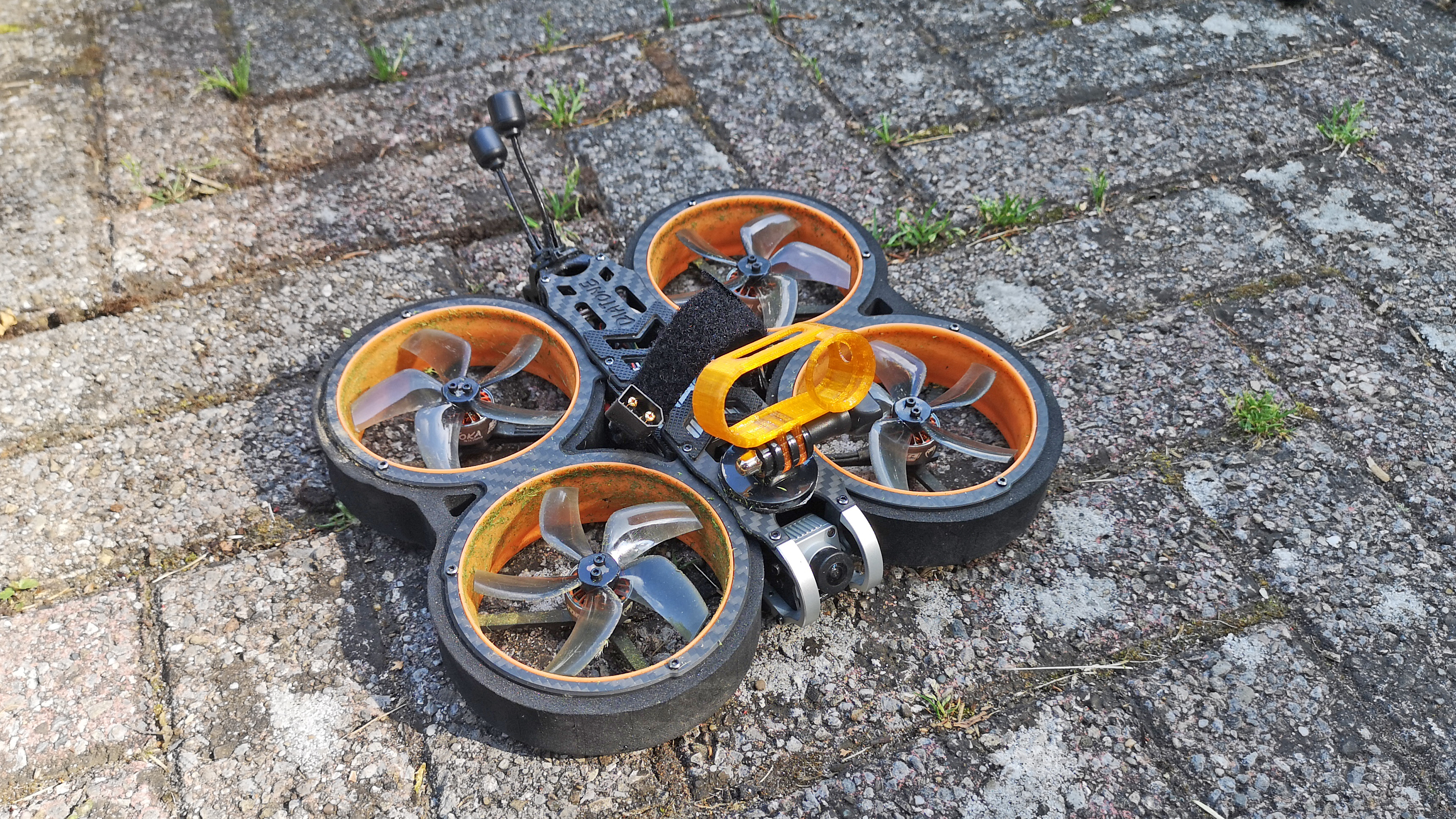 Als zweite Variante nehmen wir einen deutlich kräftigeren Copter. Den 3-Zoll Cinewhoop Eachine Cvatar 142 für 290 Euro und einen passenden Akku (6S 1050 mAH) für 45 Euro. Diese Kombination schlägt mit 335 Euro zu Buche.