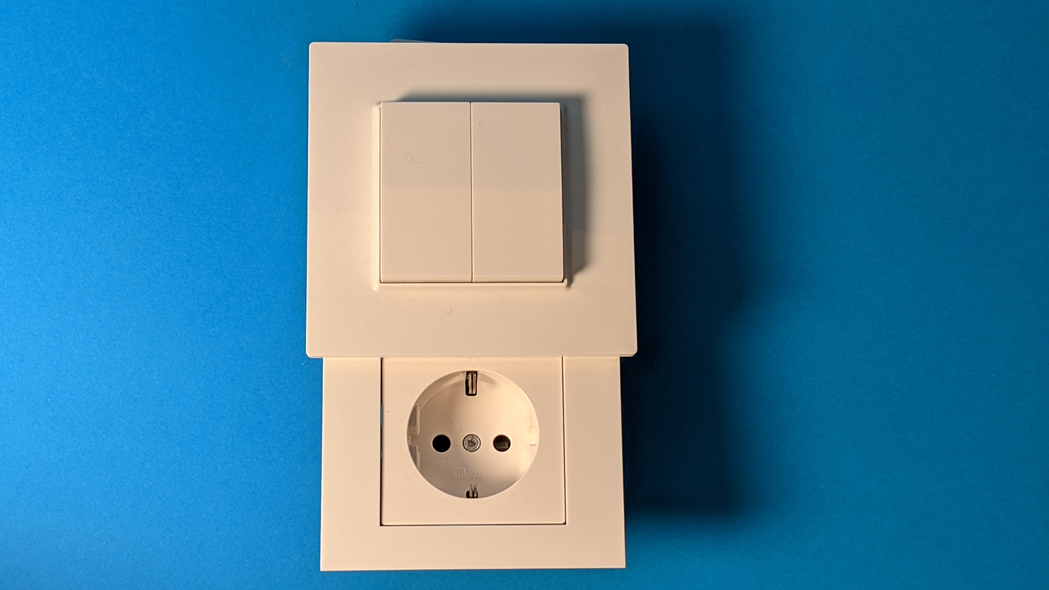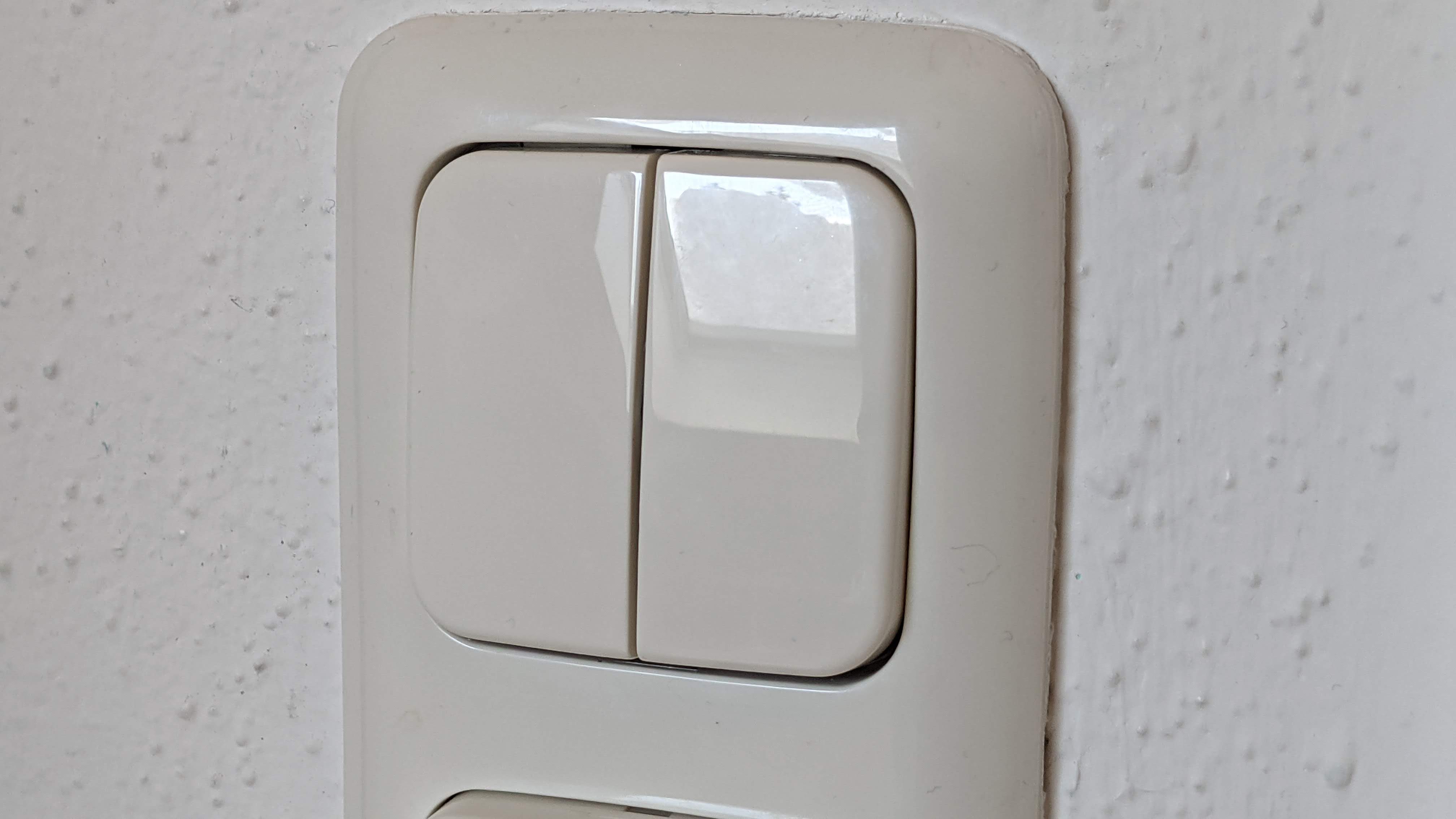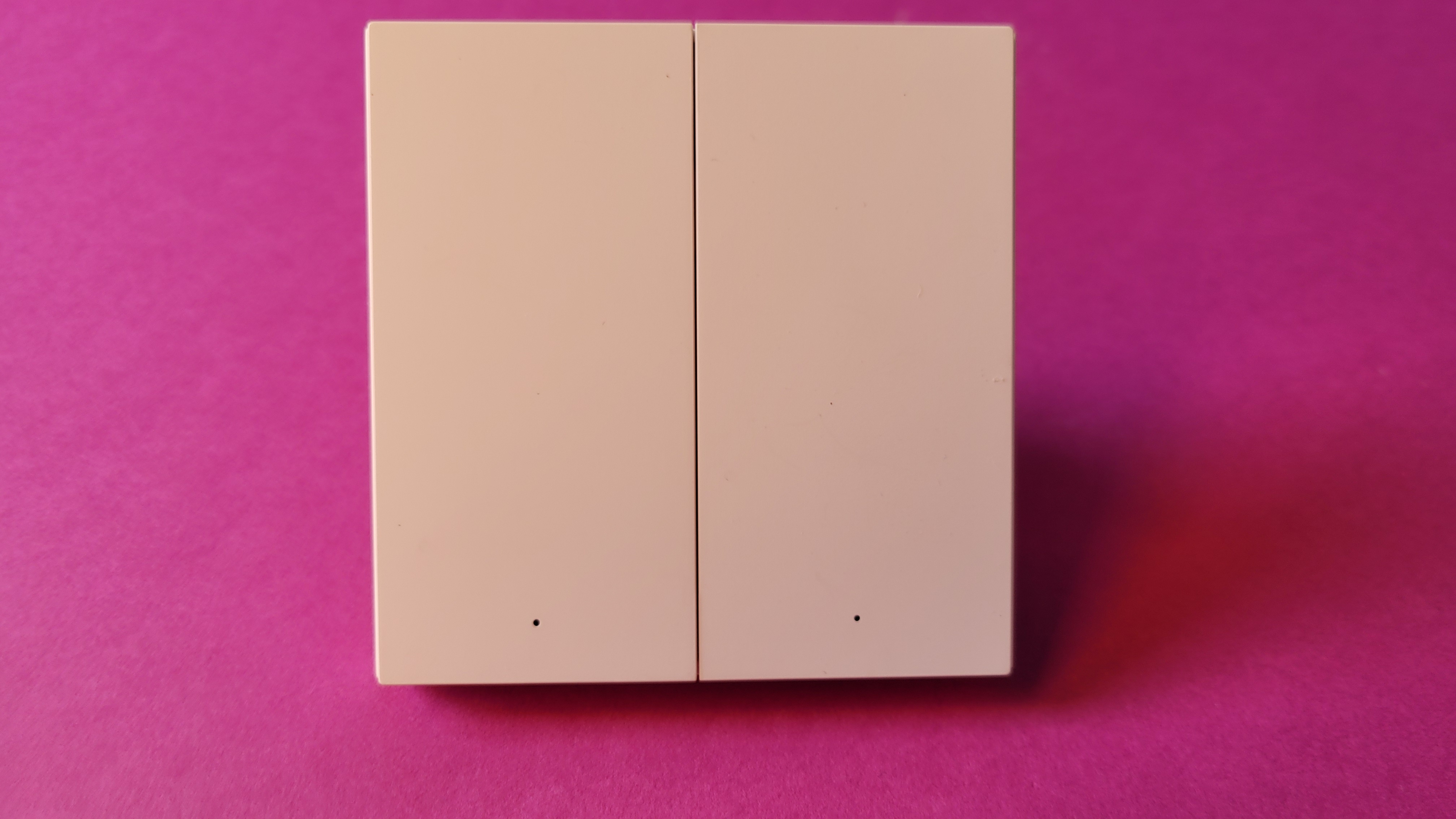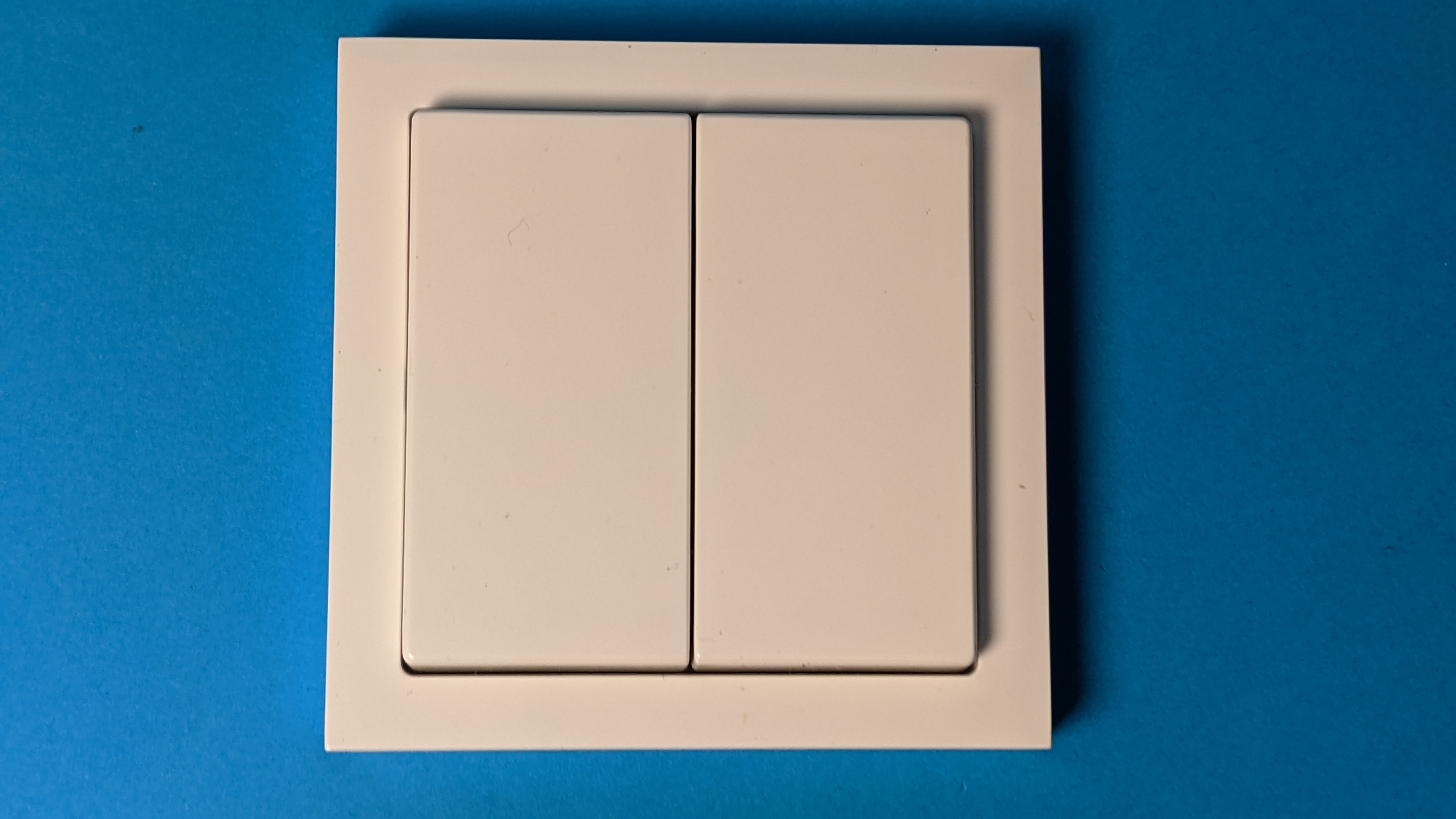 Der Busch-Jaeger Smart Switch wird entweder aufgeklebt oder am Montageort angeschraubt. Ihrer Erscheinung ist kaum von einem klassischen Lichtschalter zu unterscheiden. Sie besteht aus zwei Teilen, die jeweils an einen Kippschalter erinnern, im Grunde aber je zwei Taster sind. Das Besondere: Sie kommen komplett ohne Batterie aus. Die für die Datenübertragung per Zigbee benötigte Spannung gewinnt der Busch-Jaeger Smart Switch durch das Betätigen des Schalters selbst. Dafür muss man tatsächlich etwas kräftiger drücken, das stört jedoch nicht. Ganz im Gegenteil, es vermittelt ein sehr wertiges haptisches Feedback.