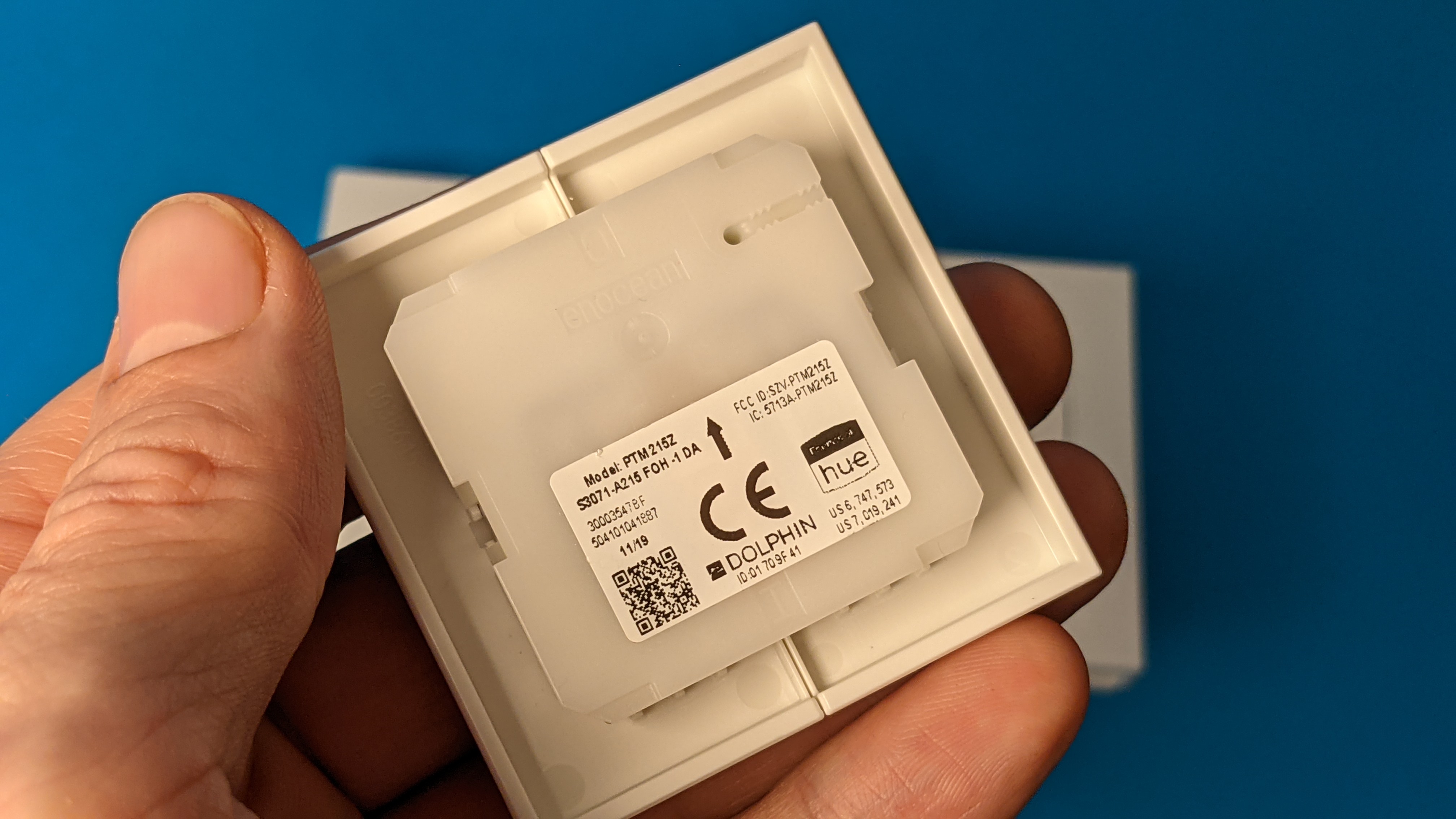 Der neue Hue Tap kostet knapp 50 Euro und ist in Schwarz und Weiß erhältlich. Er verfügt über ein Drehrad, um Lampen einzuschalten oder zu dimmen und über vier Schalter, die man frei belegen kann. Entweder für verschiedene Räume oder für Szenen in einem Raum. Ein kurzer Tastendruck und schon ist die gewünschte Szene aktiv, ein langer Tastendruck auf eine beliebige Taste schaltet das Licht aus. Die Stromversorgung realisiert Hue über eine Knopfzelle vom Typ CR2032, die zwei Jahre halten soll. Er misst 2 × 6 × 6 Zentimeter, wiegt etwa 70 Gramm und ist magnetisch. In Verbindung mit der mitgelieferten Wandplatte mit den Abmessungen 6 × 80 × 80 Millimeter findet er am gewünschten Ort Halt. Der Hue Tap lässt sich aus dieser aber auch herausnehmen, sodass er als Fernbedienung auch an metallischen Oberflächen platziert werden kann.
