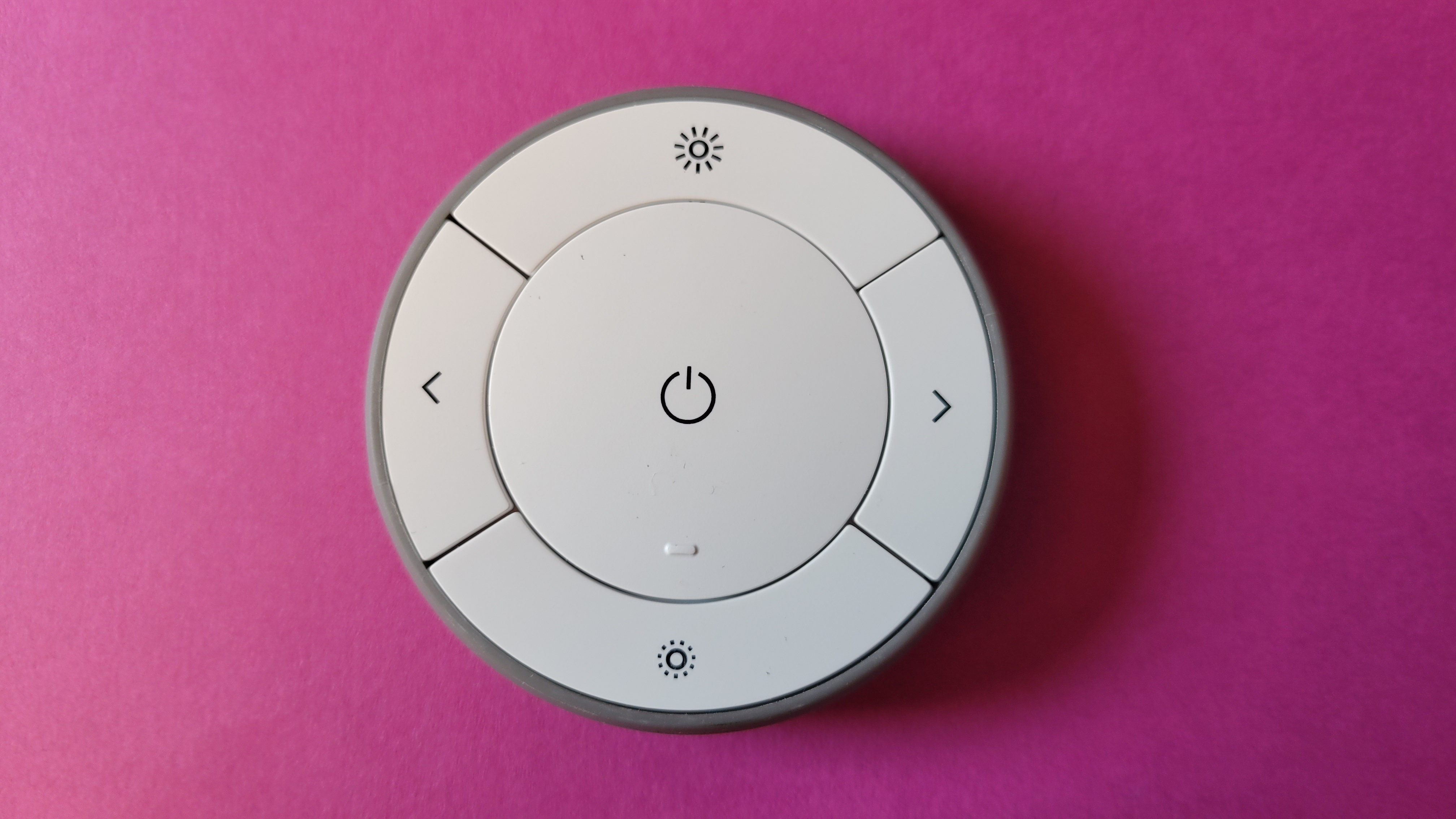 Bezüglich ihrer Hardware unterschieden sich die Schalter deutlich. So setzt der Hue Smart Button auf Minimalismus. Er misst etwa 3 Zentimeter im Durchmesser, an dessen Oberseite ein einziger, mit einem deutlichen Klick hörbarer Taster sitzt. Er ist weiß und komplett gummiert, und erweckt den Eindruck, dass ihm weder Feuchtigkeit noch Spritzwasser etwas ausmacht.