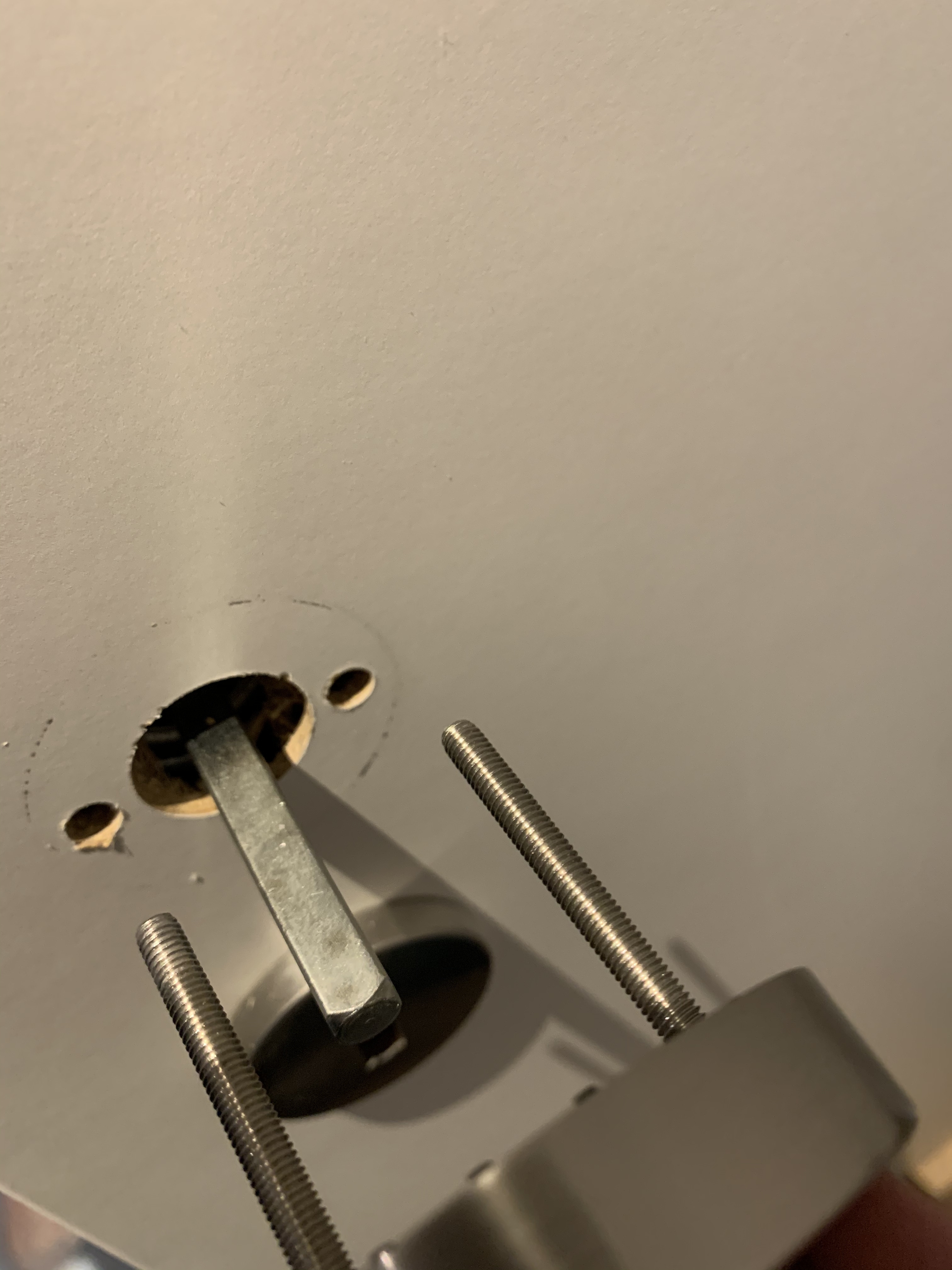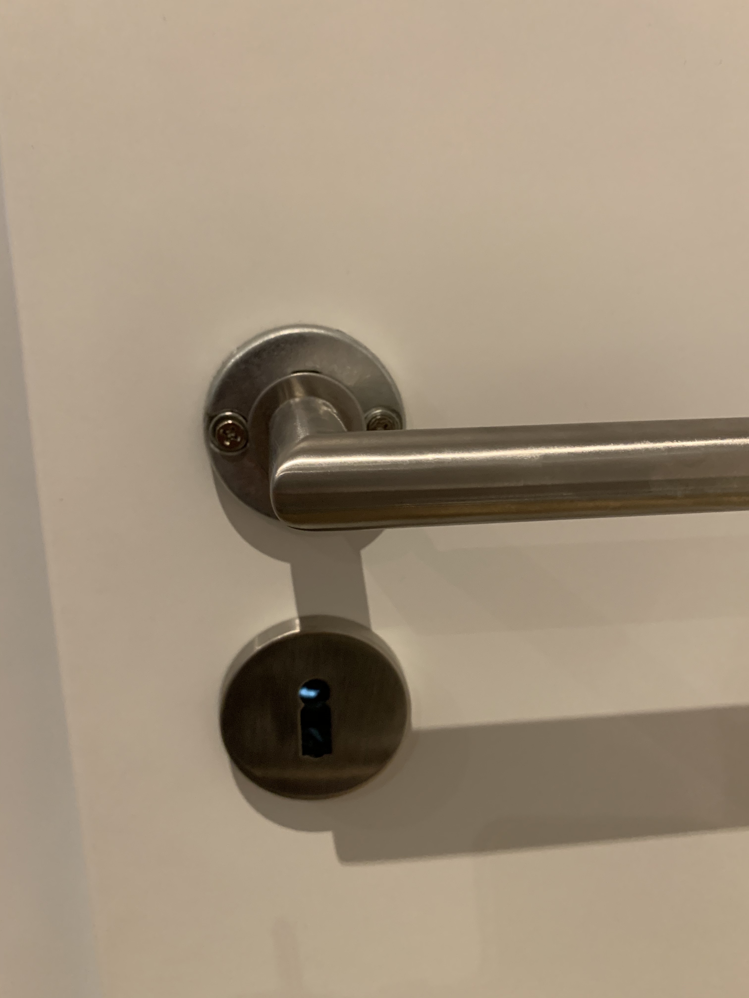 Bei uns gab es noch eine zusätzliche Hürde: Die Kupplung braucht Platz in der Außenseite des Türblatts – den gibt es bei unserer Tür aber nur innen. Deswegen steht der Beschlag außen jetzt ein paar Millimeter über. Das wird ein Teil aus dem 3D-Drucker richten. Optimal wäre etwas aus Metall, aber im Notfall hilft auch ein Stück Sperrholz und eine Laubsäge. Einen Hochsicherheitsbereich gilt es hier ohnehin nicht zu schützen.