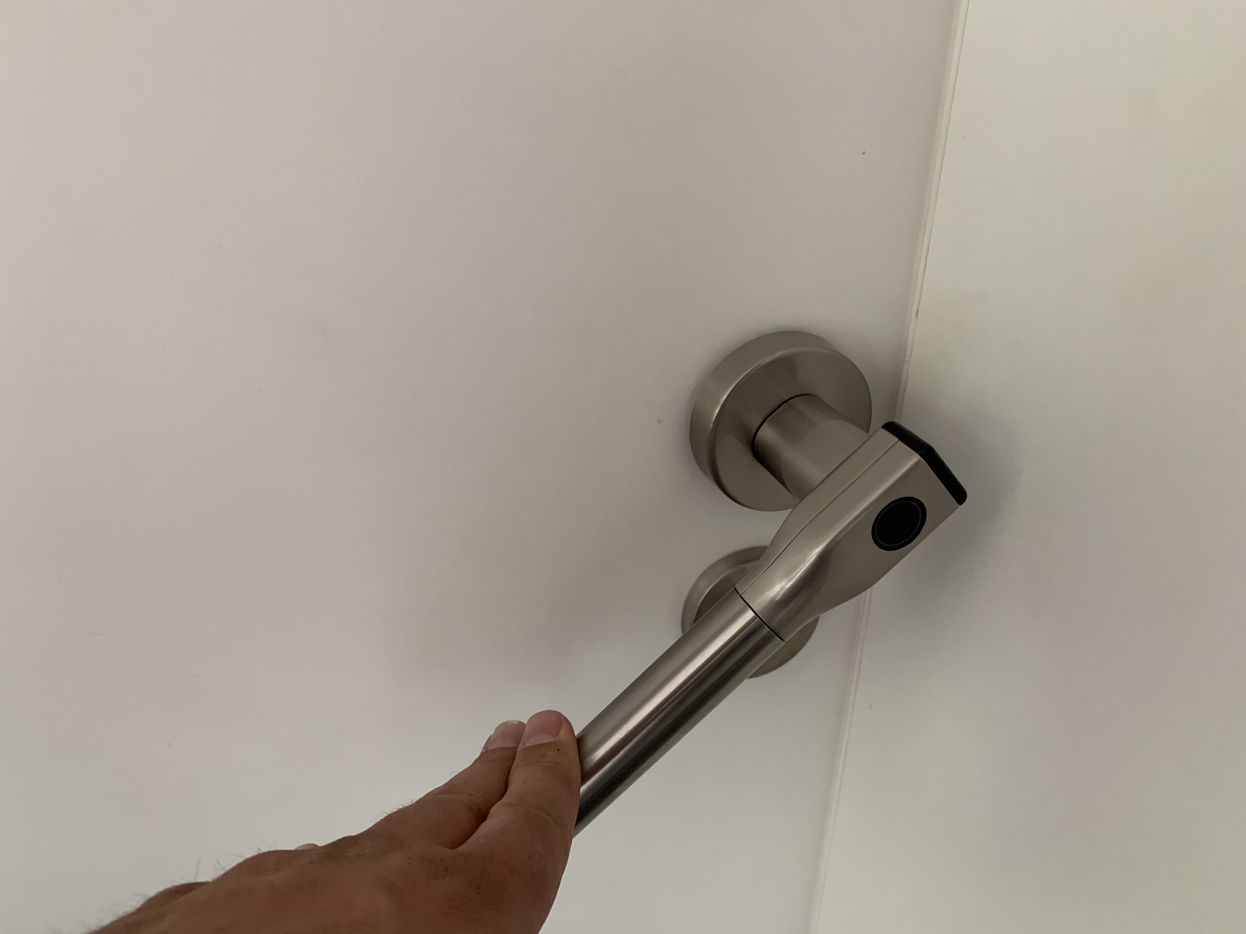 Es ist zunächst etwas ungewohnt, dass sich eine Tür nicht mehr so einfach öffnen lässt wie eh und je. Außerdem nervt vor allem in der Anfangsphase die „Gedenksekunde“ zwischen Auflegen des Fingers und Einrasten der Klinke – wer zu schnell drückt, greift ins Leere. Hat man sich daran gewöhnt, ist der Umgang mit der smarten Tür aber keine Herausforderung.